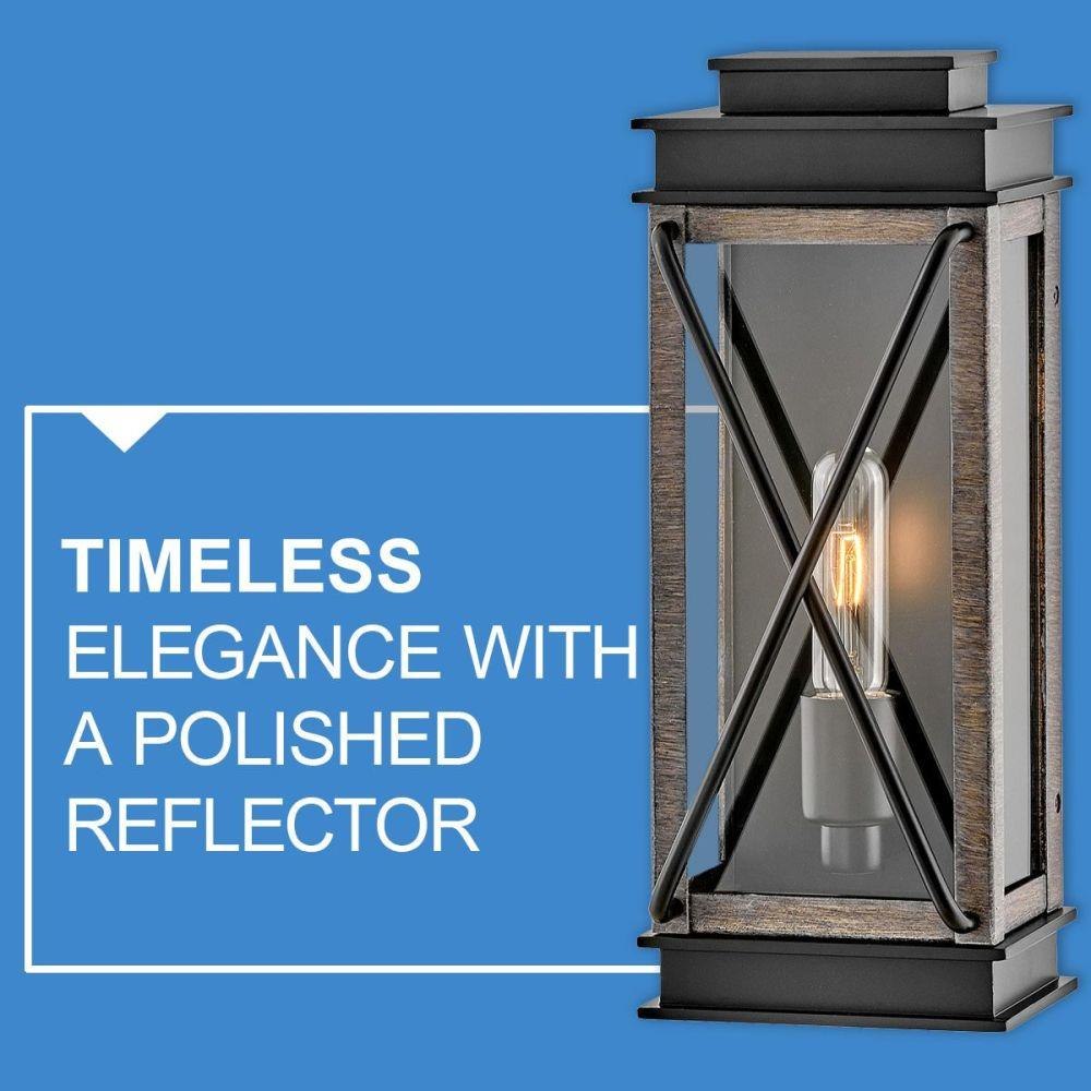 Modern meets timeless elegance in the Montecito family. For added charm and illumination, a polished aluminum reflector modernizes the robust, cast aluminum frame in the Museum Black finish. Opt for the Driftwood Gray and Black finish combination for a more rustic inspired look.Suitable for use in wet (outdoor direct rain or sprinkler) locations as defined by NEC and CEC. Meets United States UL Underwriters Laboratories & CSA Canadian Standards Association Product Safety Standards / Striking black finish enhances design / 2 year finish warranty / Ideal for vintage filament bulbs (not included) / Mounting hardware is hidden on the backplate to ensure a clean silhouette / Sophisticated and streamlined design, durable construction and timeless finish complement any architectural style