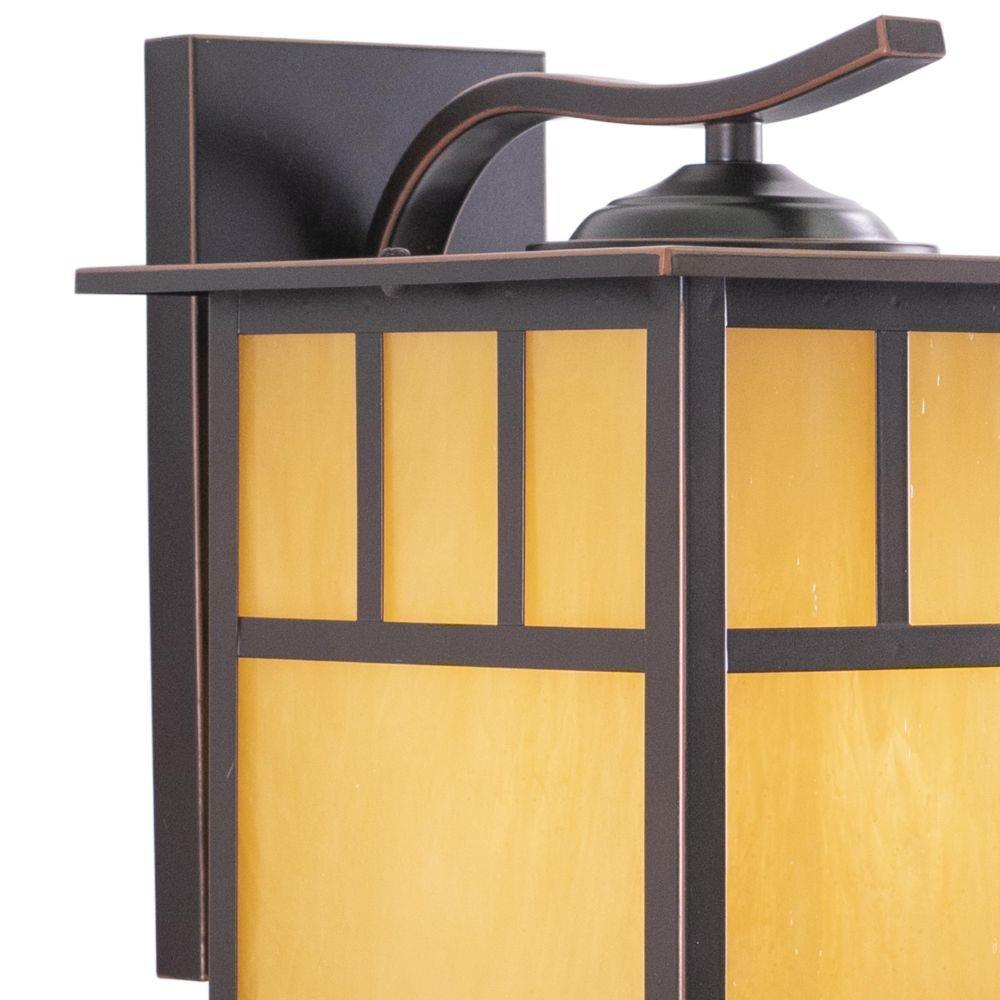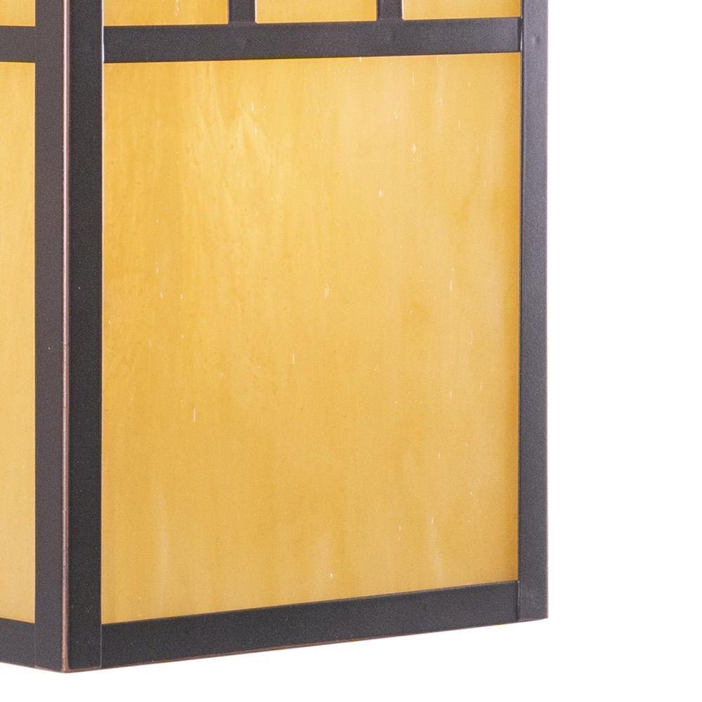 Flat strips of stainless steel outline white tiffany style glass panes in the Mission collection. The simple design of this fixture has a mission style look perfect for Frank Lloyd Wright prairie inspired decors. This outdoor wall light is ideal for your porch, entryway, garage, or any other area of your home.