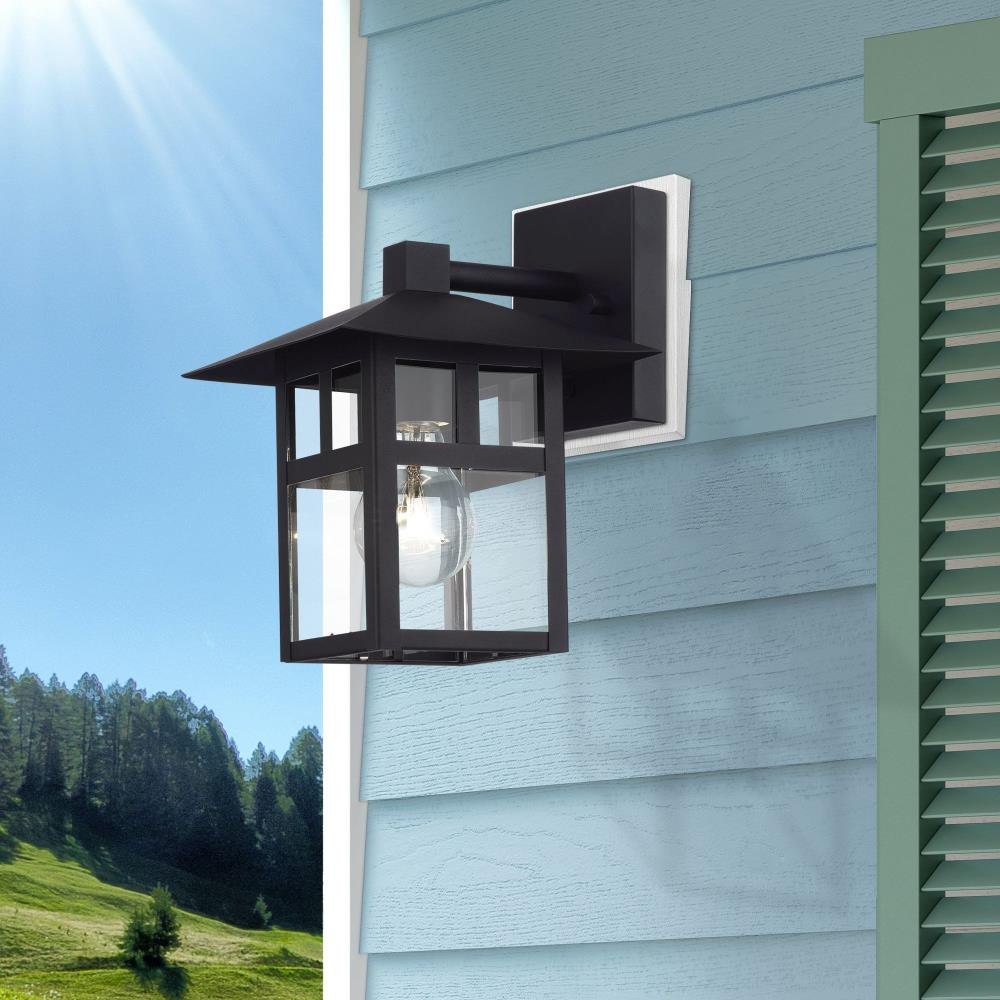 The Crestlake wall lantern is designed for straightforward installation on exterior walls, providing focused illumination that enhances outdoor aesthetics and safety. Its weather-resistant steel frame and glass panels ensure reliable performance in various outdoor conditions. The fixture’s size and design make it suitable for entryways, patios, or garden spaces where architectural lighting is desired.