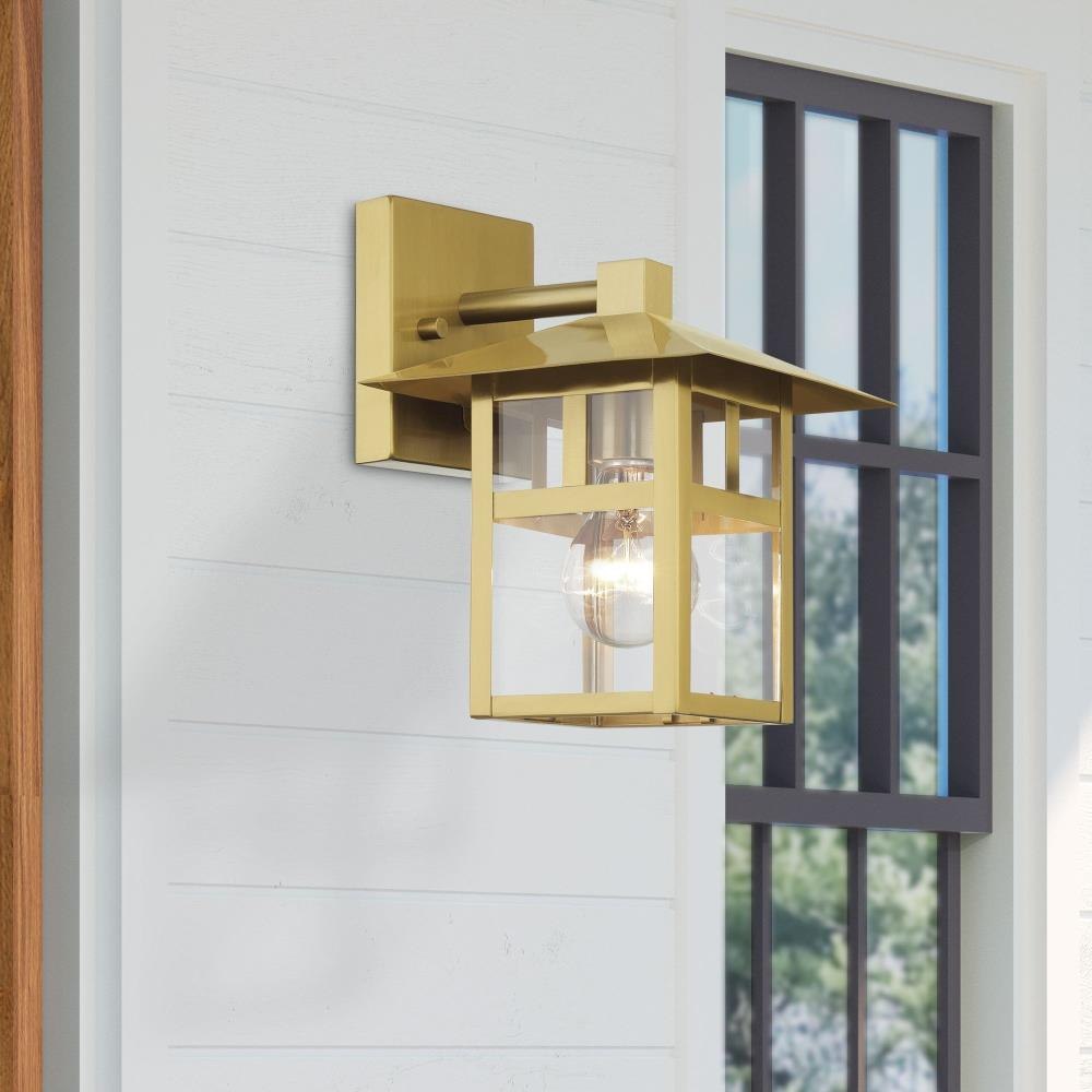 Enhance your outdoor lighting with the Crestlake 1 Light Medium Outdoor Wall Lantern, measuring 9.5 inches in height and 7 inches in width. This lantern combines traditional design with contemporary craftsmanship, featuring clear glass panels that provide a fresh reinterpretation of a classic aesthetic. Its architectural window-inspired frame is constructed from durable stainless steel, finished in a textured black coating that ensures longevity and resistance to outdoor elements.