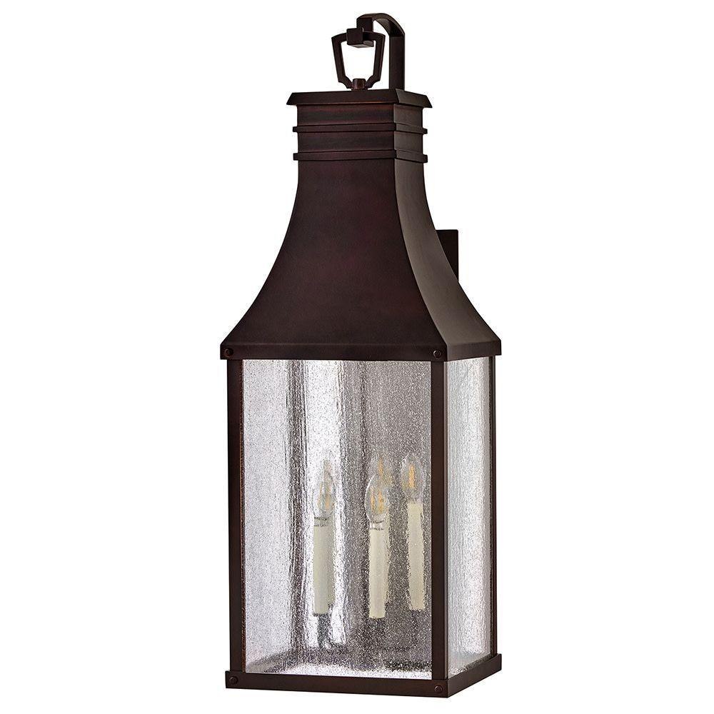 Taking inspiration from an English lantern, Beacon Hill achieves a timeless aesthetic. Part of the Heritage collection, this traditional style features a striking Blackened Copper or Museum Black aluminum frame. The heavily seeded glass pays homage to its Old World charm.
