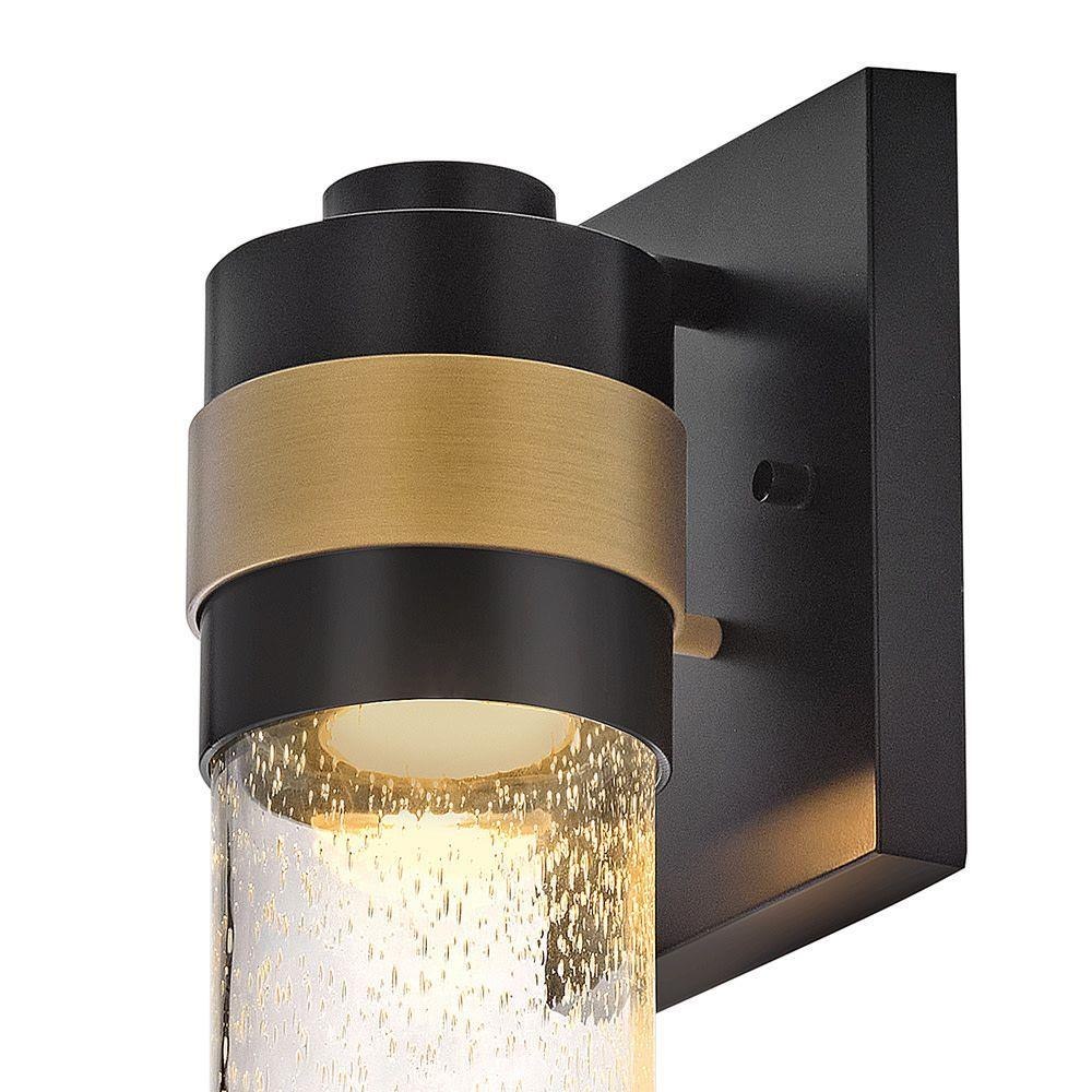 Albie brightens up any outdoor space with its minimalist modern profile. Clear seedy glass is complemented by a two-tone Black and Antique Brass finish and a dark-sky friendly design.