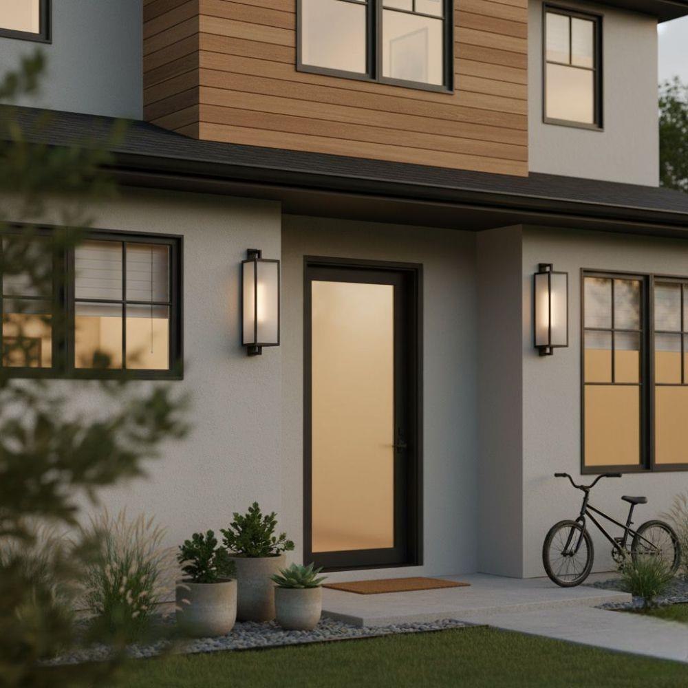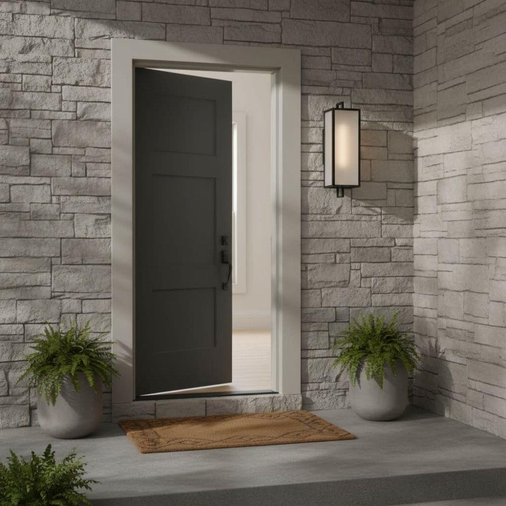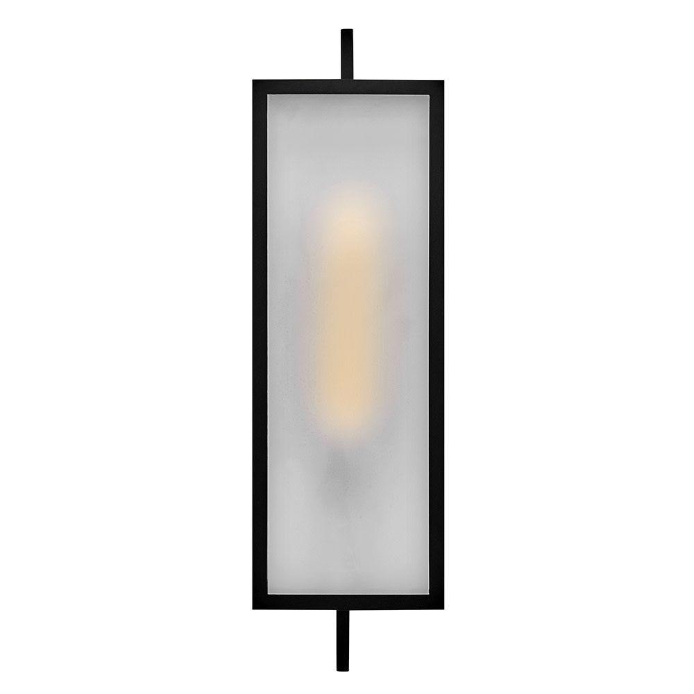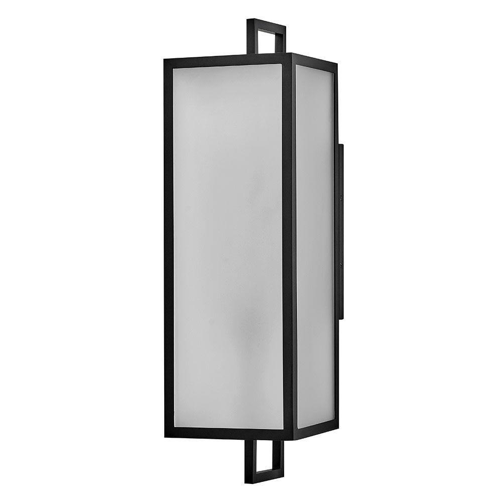 Halden’s cool frosted glass fits perfectly into its transitional lantern design, featuring a trendy rectangular frame in a chic Black finish. Large etched panels softly diffuse light, creating a warm glow, and a convenient open bottom makes changing bulbs easy.