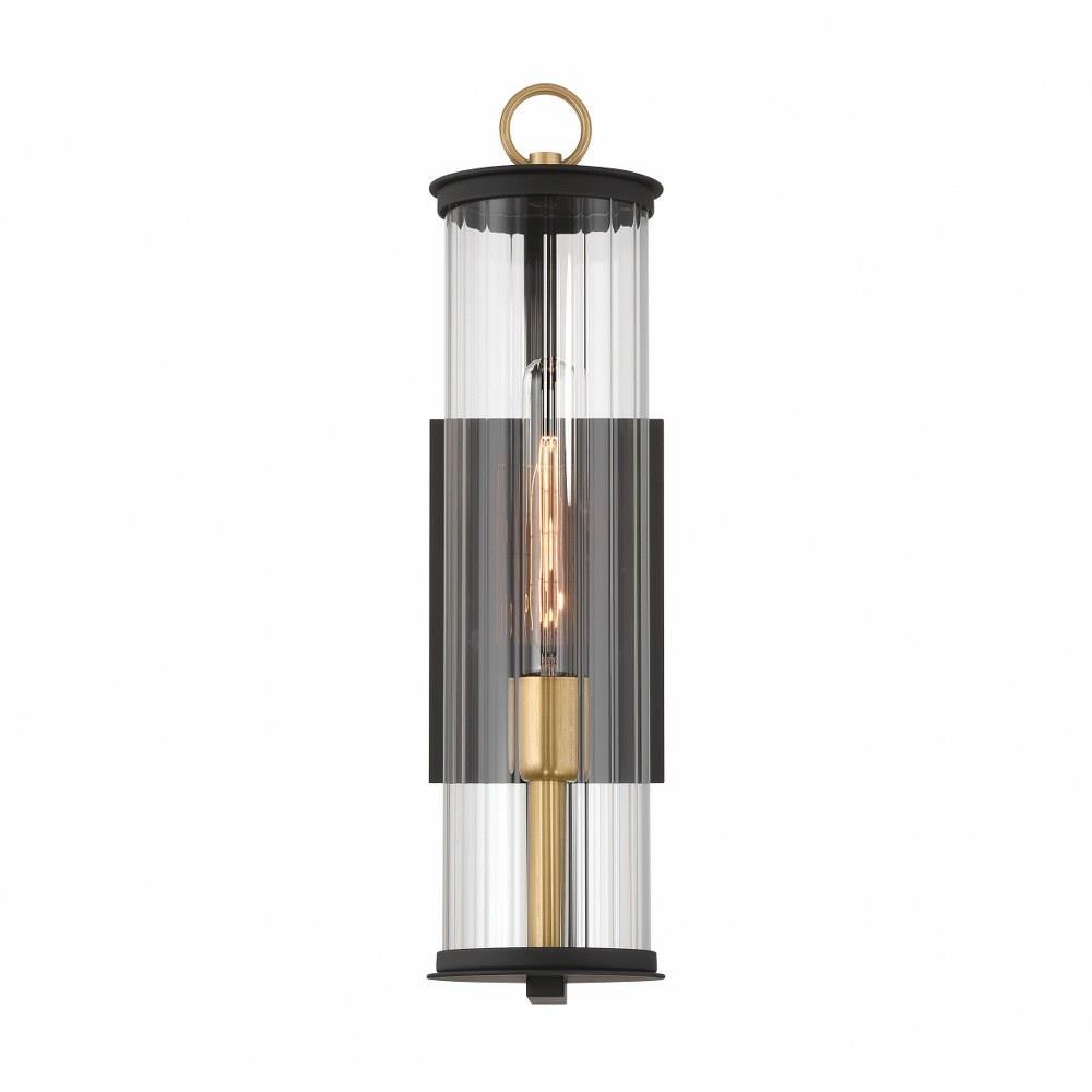 1-Light Outdoor Wall Sconce - Dark Matte Black and Painted Legacy Brass with Clear Ribbed Glass