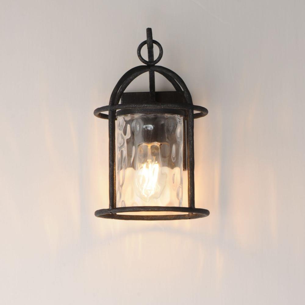 Inspired by classic European lanterns and handcrafted ironwork, the Del Mar collection brings timeless sophistication to exterior spaces. Its airy open-frame silhouette is crafted of hammered iron, elegantly arched with a graceful hook detail that nods to historic gas lamps. Inside the frame, a delicate Water glass cylinder shimmers with texture, diffusing light in a soft, atmospheric glow. Designed for lasting beauty in the elements, each piece is finished in a richly layered Blacksmith finish--a deep near-black tone highlighted by silvery brushstrokes, adding artisanal character to the silhouette. Whether flanking a grand entry or lining a garden path, Del Mar offers a refined approach to outdoor lighting with enduring presence.