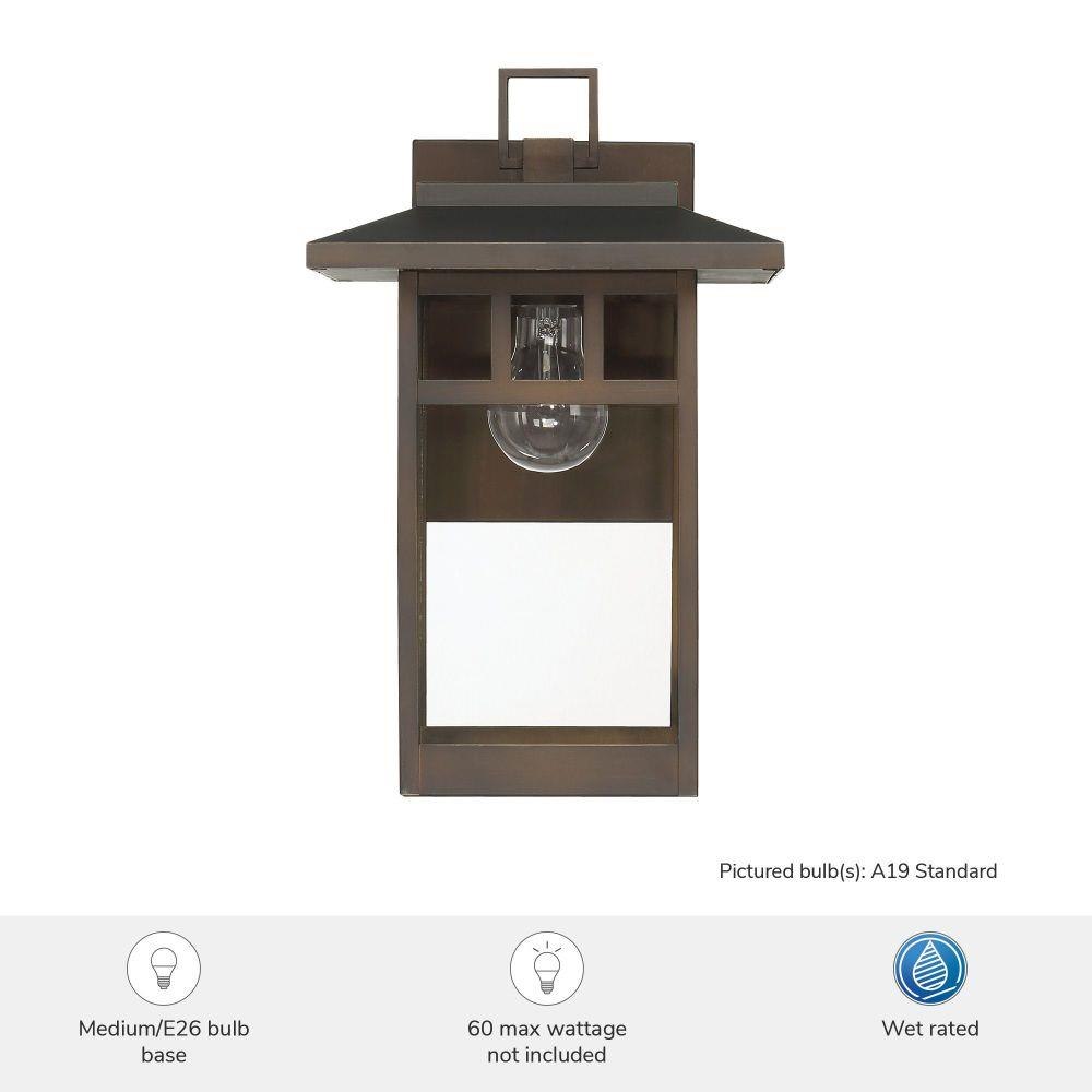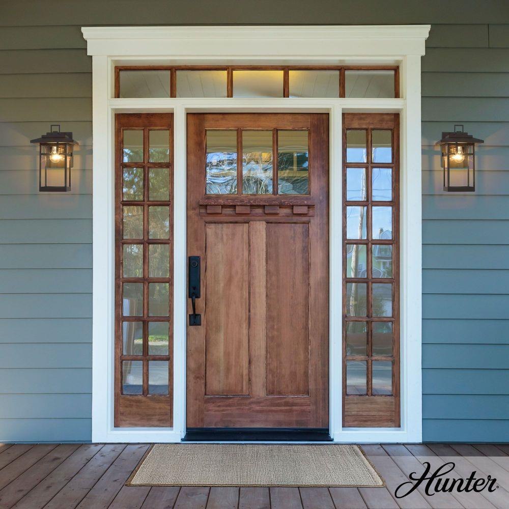 Bring timeless structure to your exterior with the Yancy House Outdoor 1 Light Wall Light. Inspired by classic mission style, its clean architectural lines offer a refined yet welcoming presence. Designed for durability, it's crafted with corrosion-resistant aluminum and stainless steel to weather the elements with ease. The transitional design softens its bold silhouette, blending traditional charm with modern adaptability. Ideal for porches, patios, and entryways, it supports up to 60W bulbs or equivalent LEDs (not included), casting a warm, inviting glow. Yancy House is built to last—and built to impress.BUILT TO LAST: Constructed with corrosion-resistant aluminum and stainless steel hardware for enhanced strength, durability, and performance in harsh outdoor environments.BULB RECOMMENDATION: Maximum 60W per light bulb or equivalent LED bulb. Bulbs not included.MISSION STYLE: Classic mission-style lines bring a timeless, architectural touch to your exterior spaces—balancing structure with understated style.TRANSITIONAL: The transitional style celebrates natural light and a relaxed feel with smooth, blending details that create warm yet modern spaces with the best of both worlds; elegant, minimal and adaptable.DIMENSIONS: Measures 14" tall by 7" wide, extending 10.375" from the wall—perfectly scaled for porches, patios, or entryways.WARRANTY: One-year limited warranty backed by the trusted experts at Hunter.