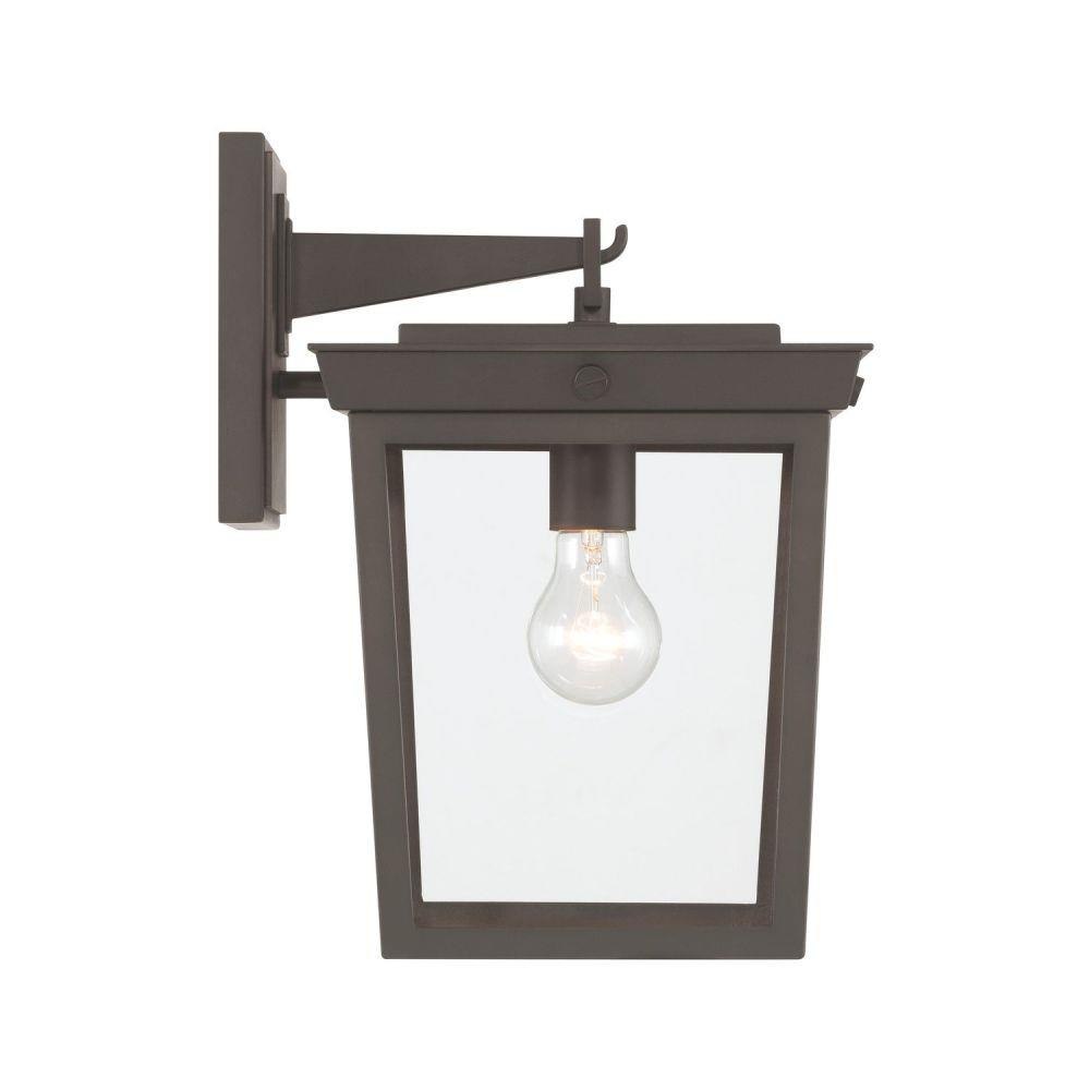 The Belmont's stately lantern silhouette adds architectural appeal and visual interest for a wide range of exterior spaces. Inspired by the iconic shape of street lanterns, the Belmont's modern tapered rectangular box, clear glass panels, and exposed bulbs will add a contemporary illumination and curb appeal to your home.