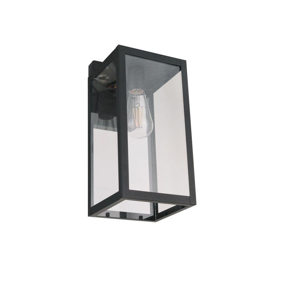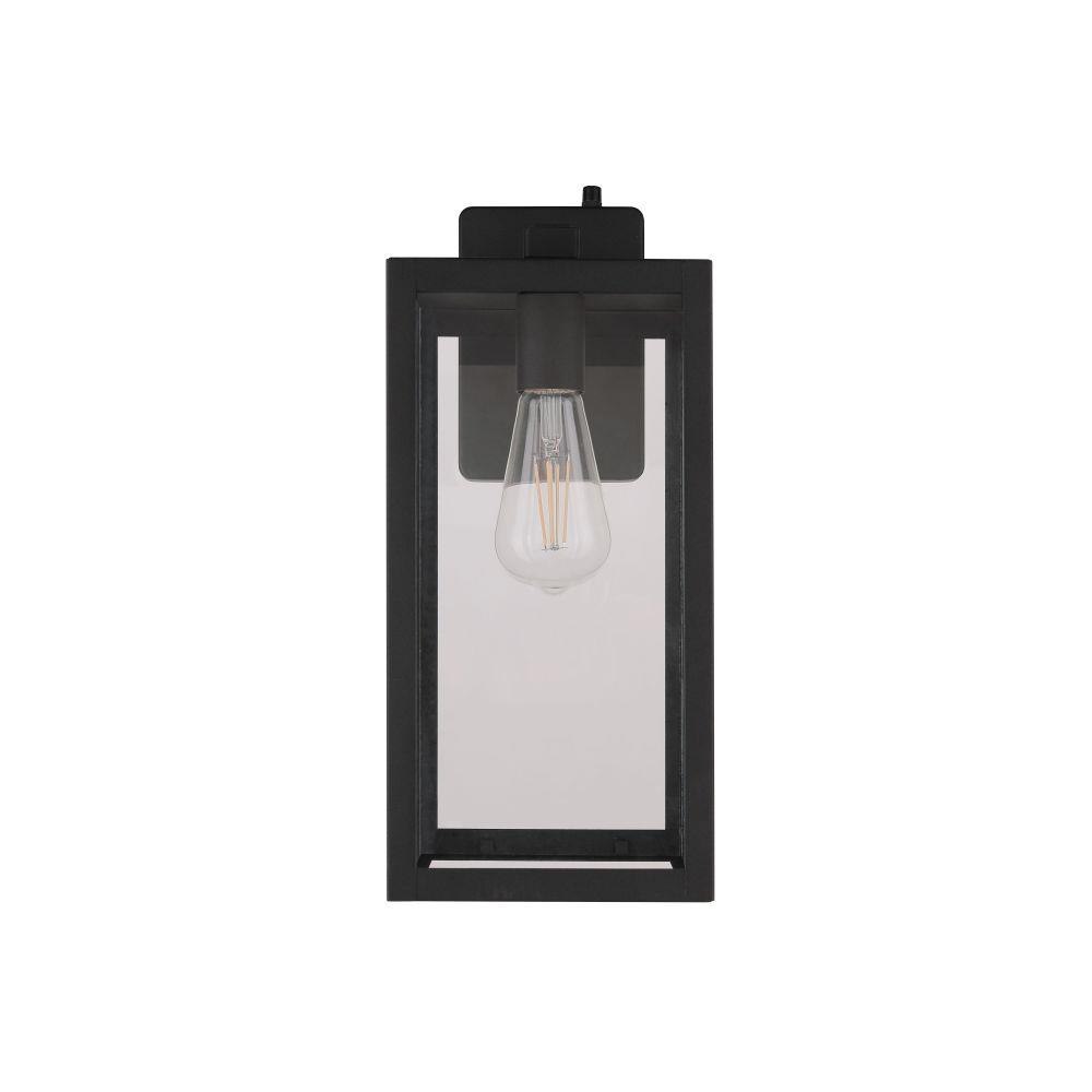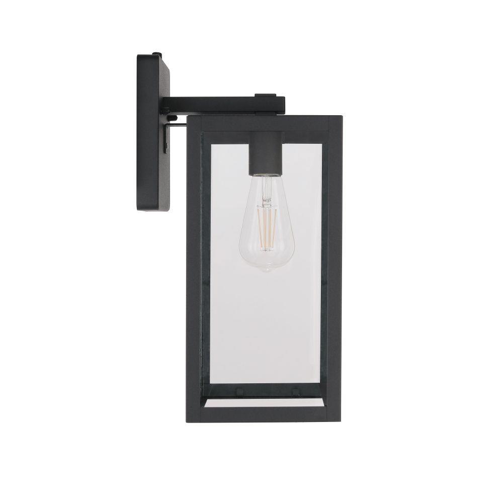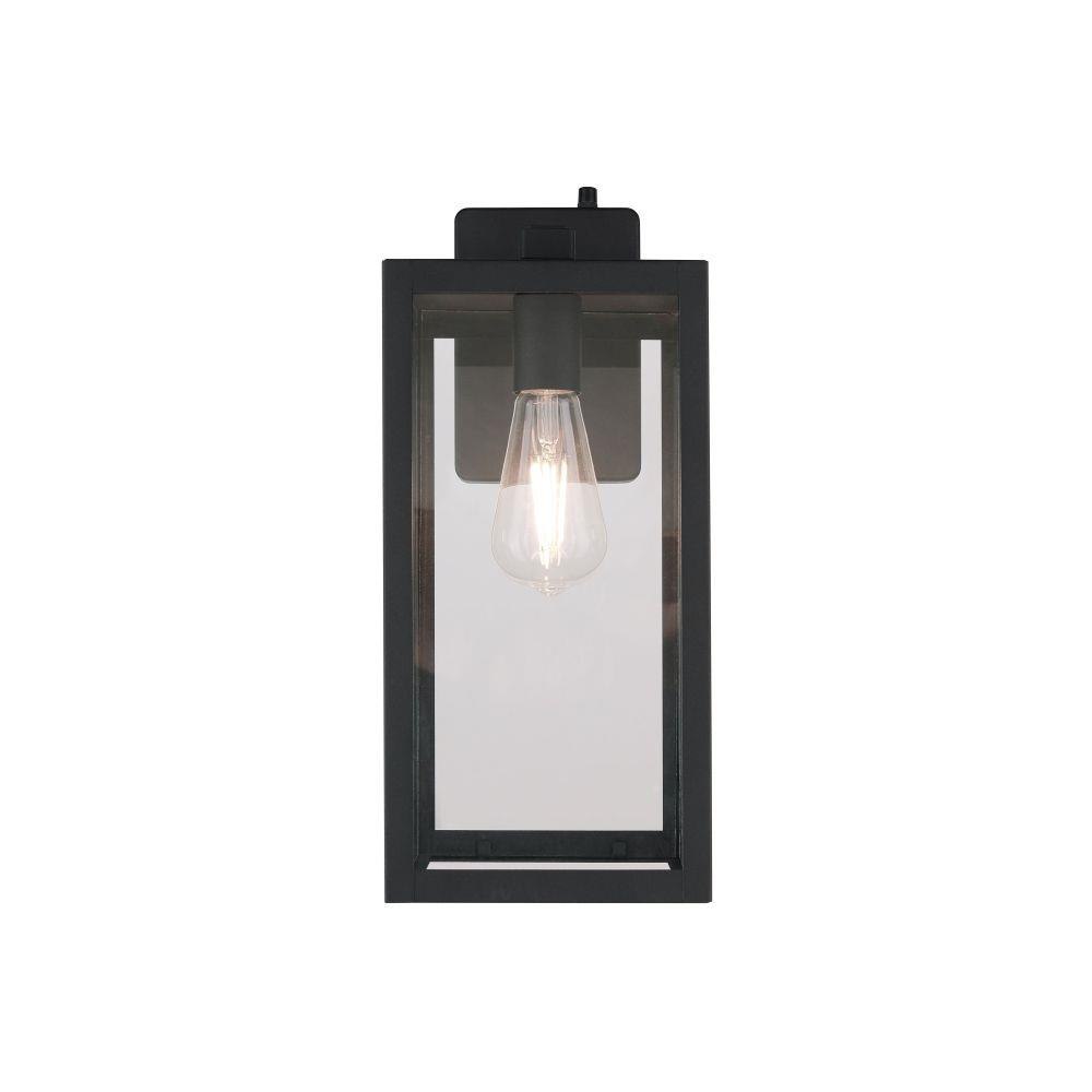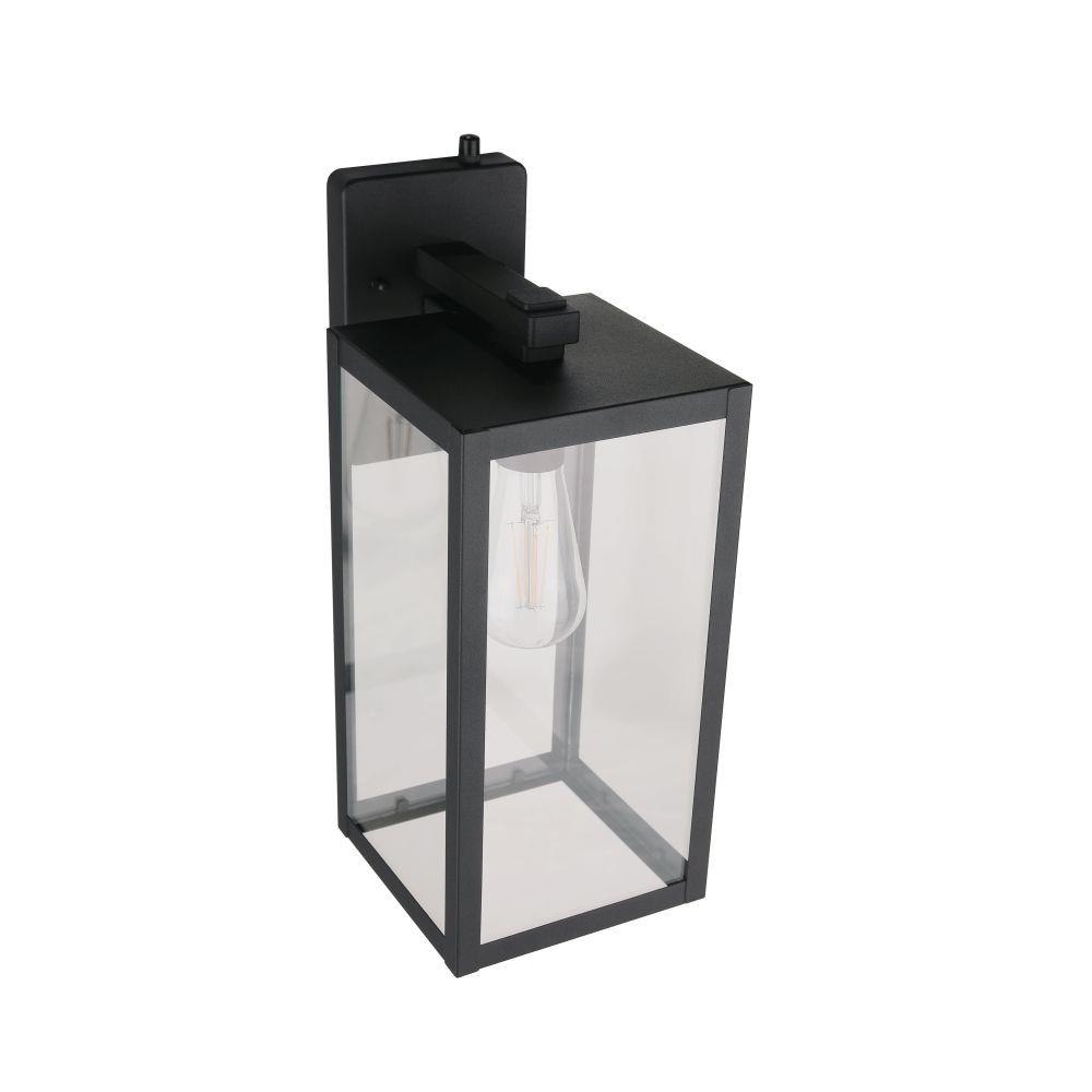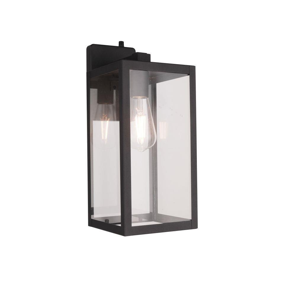 Introducing the Harris medium lantern with photocell combining bold rectangular design with a transitional style. Featuring clear glass panels and a rich, textured black finish with the benefits of automatic dusk to dawn operation for convenience offering enhanced security by deterring intruders and safety of illuminated pathways and entryways.