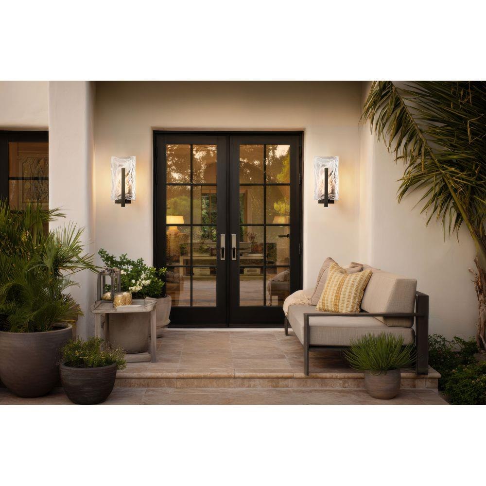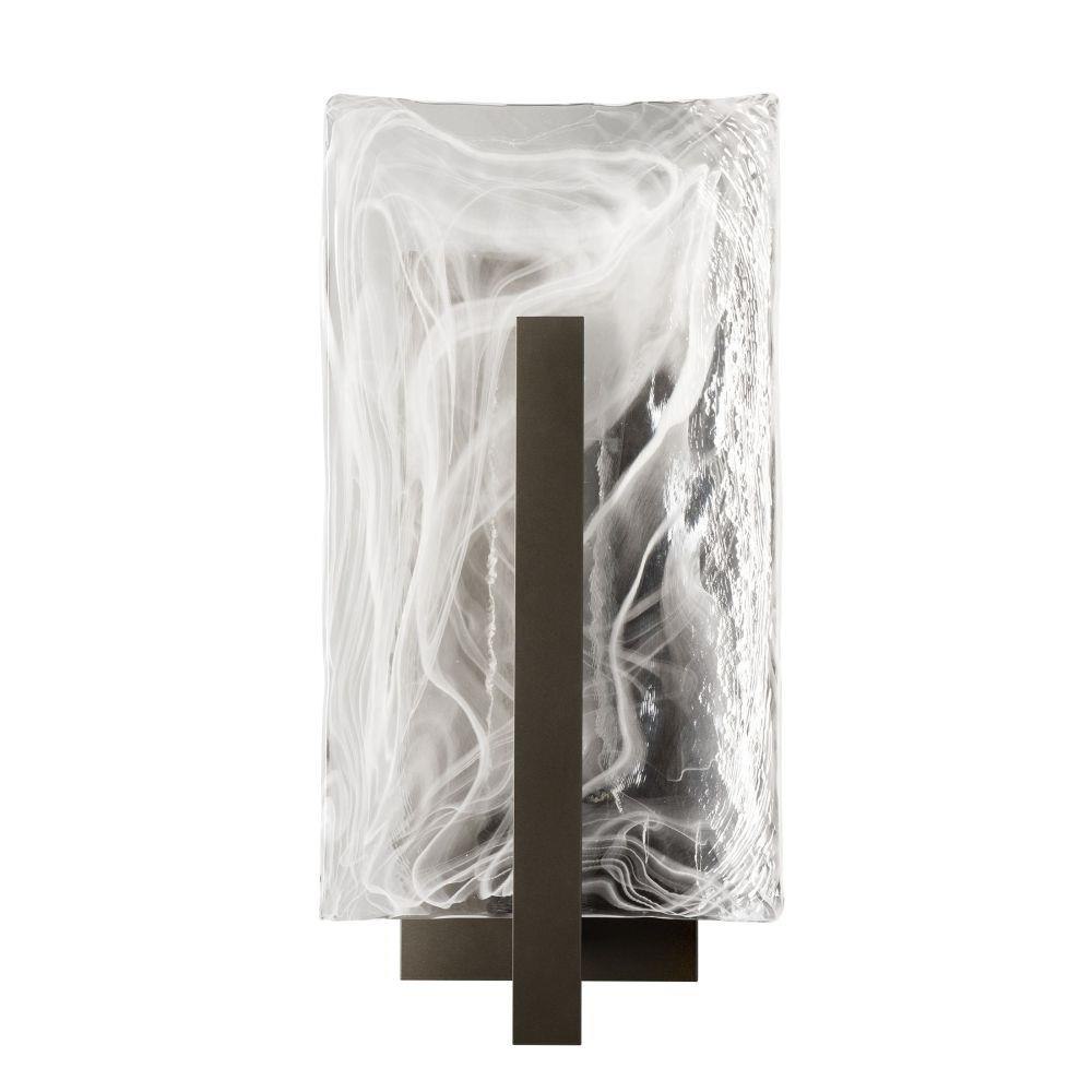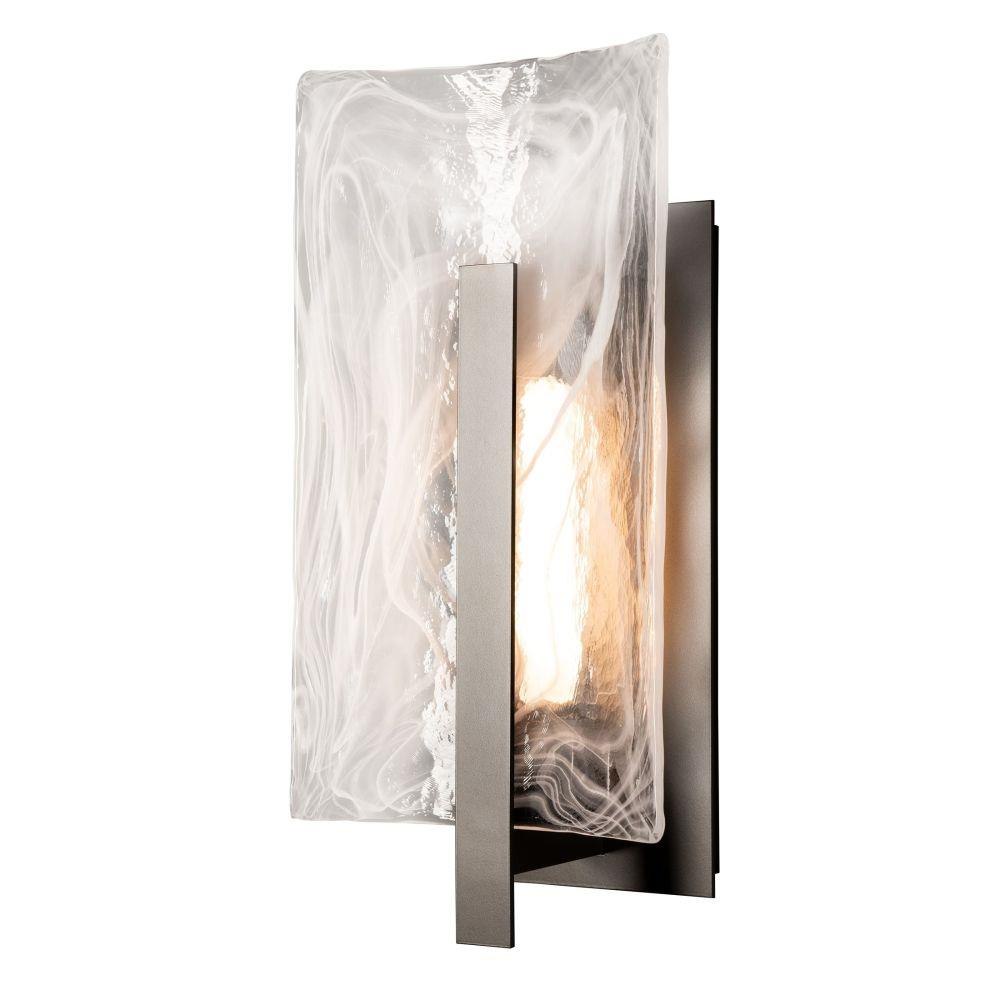Make a striking first impression with this sculptural exterior wall sconce from the Arc Collection. Its signature freeform white swirl is embedded within a thick, hand-poured panel of clear, textured glass, subtly convex for added depth and visual intrigue. The glass takes center stage, secured by a substantial yet refined flat aluminum bar that complements the clean, squared form. Artistic and architectural, this statement piece is offered in a range of Outdoor Coastal Finishes and is also available in two Marine Grade options (small upcharge applies), delivering both durability and distinctive style for exterior spaces.