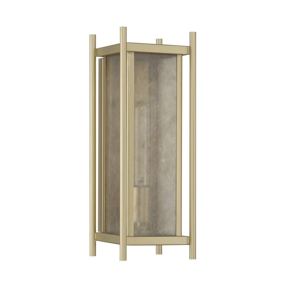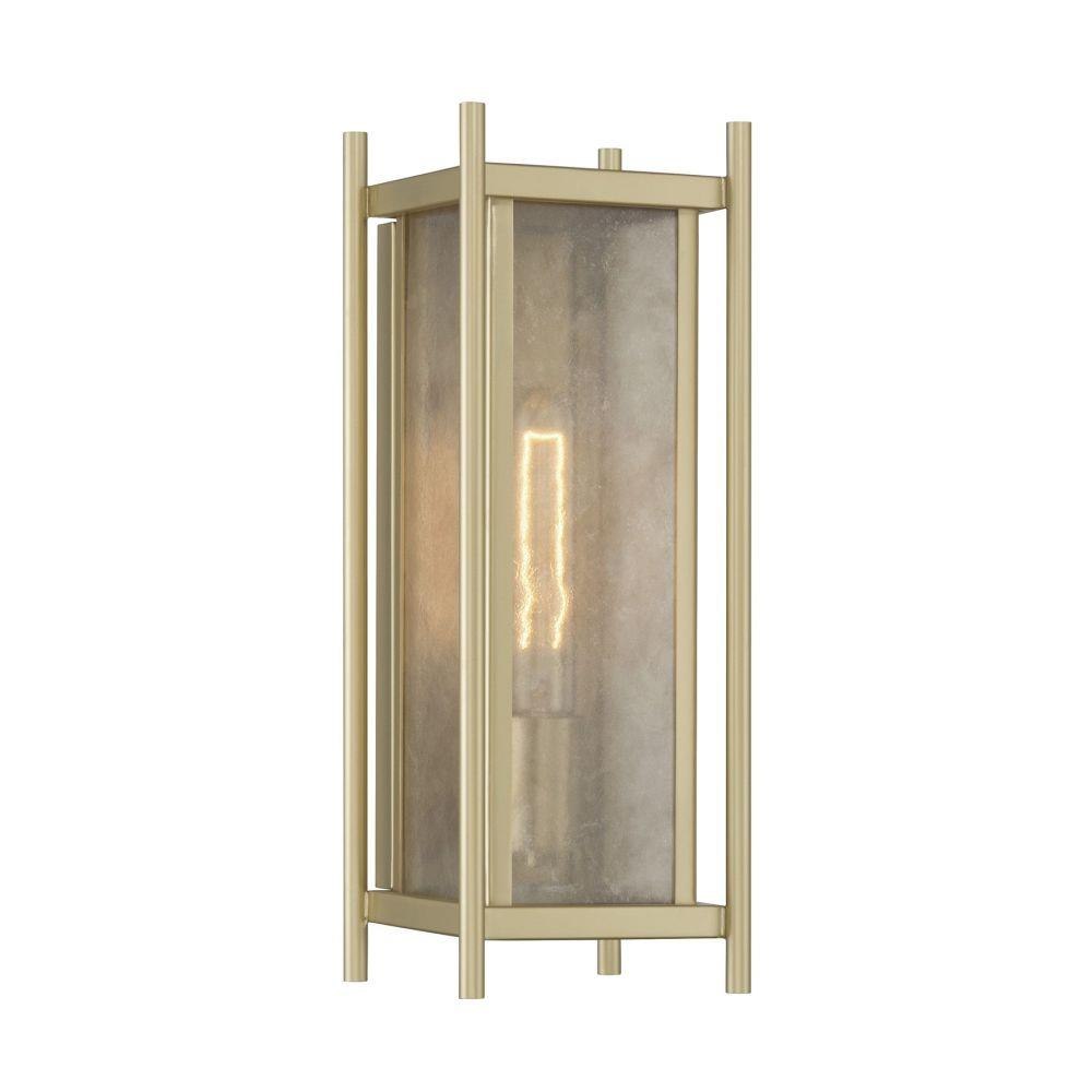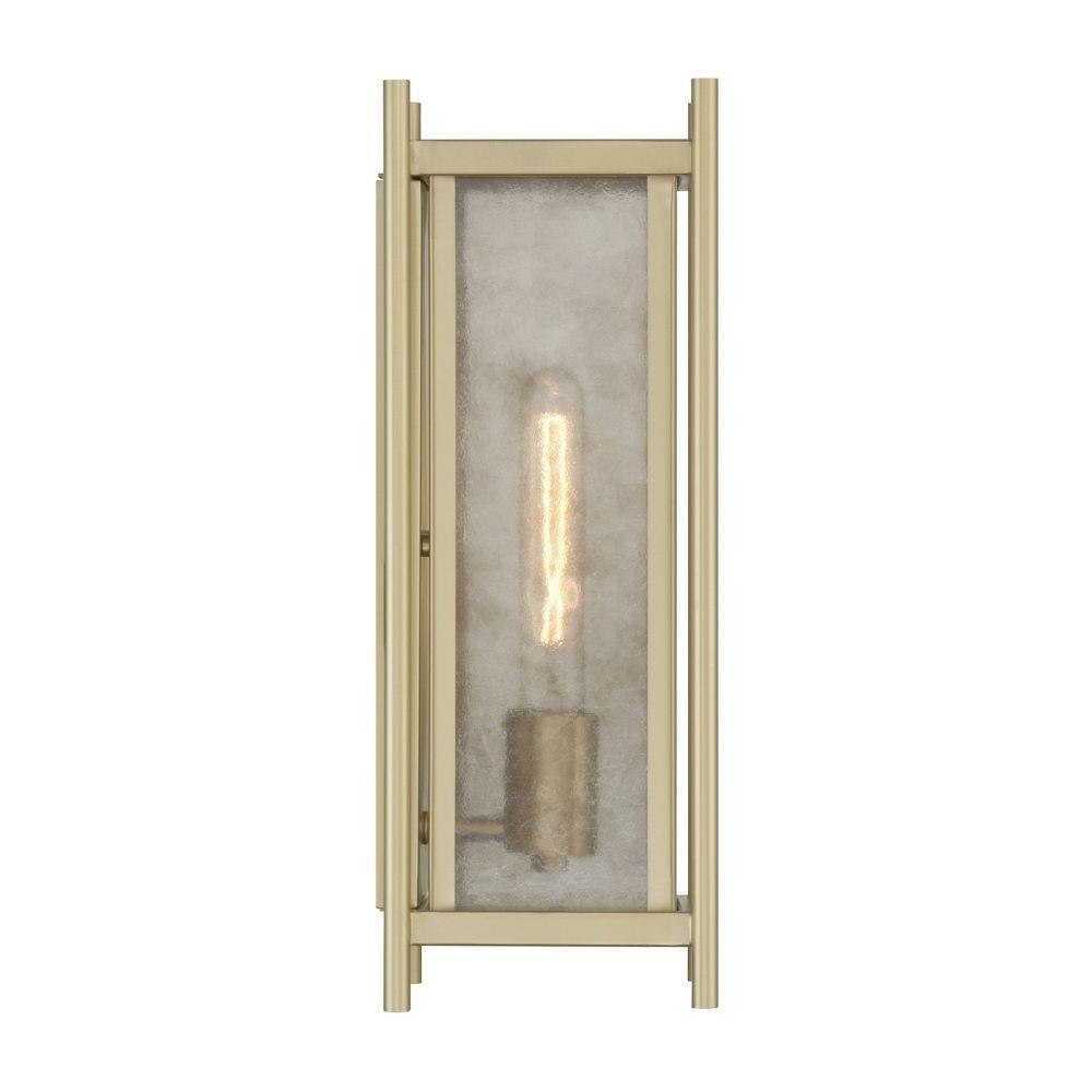 Warm your outdoor spaces with the luminous glow of the Savoy House Jacobs 1-light outdoor wall lantern. Clear mica glass introduces organic texture while the Serene Brass finish enriches the look with inviting warmth. Jacobs is 16" tall, 5.75" wide and extends 6" from the wall. Uses one standard size bulb of up to 60 watts. Bulb not included. Wet area rated.