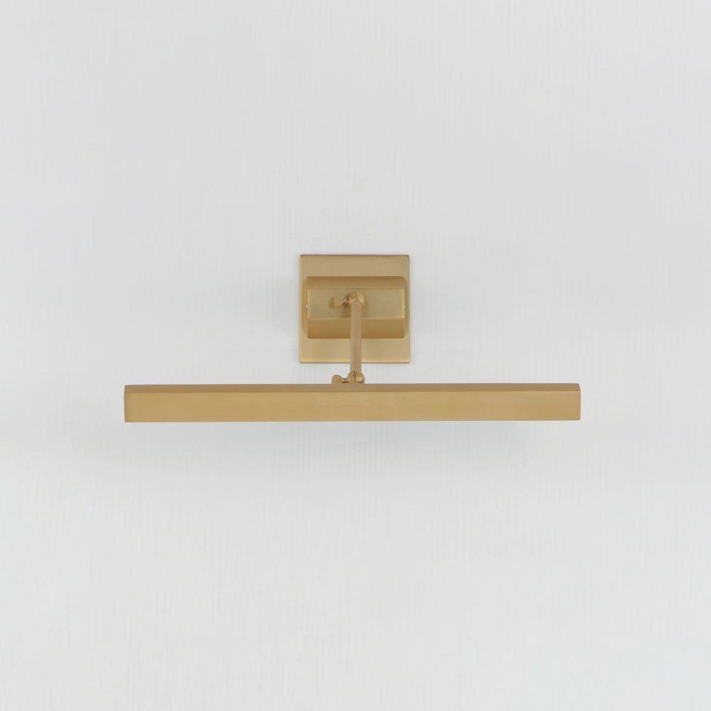 Pasha combines architectural lines with regal inspiration. Thin Trapezoid shades function as elevated task lighting or picture lighting. The arm from the back plate to the light source is extendable allowing you to position the strip of light housed in the metal shade closer or further in position while a pivoting gimbal at its joint allows you to rotate the light and direct its beam. Available in Gold and Black, these picture lights coordinate with many interior color schemes.