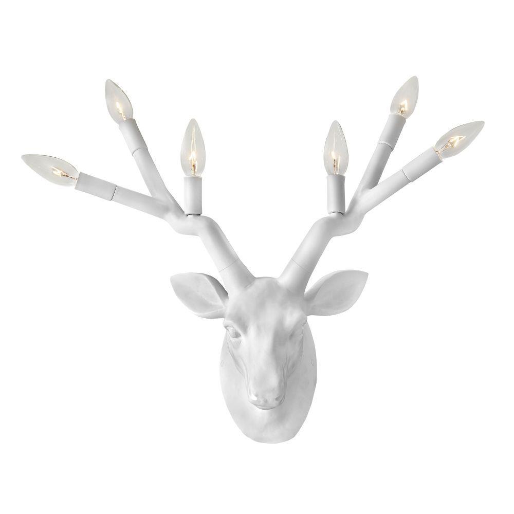 Yes, deer! A playful, contemporary take on traditional lodge décor, Stag is an over scaled sconce big on style. Featured in Chalk White or Black, Stag bounds into any space with illumination and charm all-in-one. Sconces feature a removeable black cord with on/off switch to suit anywhere you choose to roam.Suitable for use in dry (indoor) locations as defined by NEC and CEC. Meets United States UL Underwriters Laboratories & CSA Canadian Standards Association Product Safety Standards / Merging the best of traditional and modern elements, with a sophisticated and streamlined silhouette perfect for any space / Features On/Off switch / Optional cord cover available, 6938BK / Striking black finish enhances design / Ideal for vintage filament bulbs (not included) / Can be hard wired or mounted with fabric covered plug-in cord.