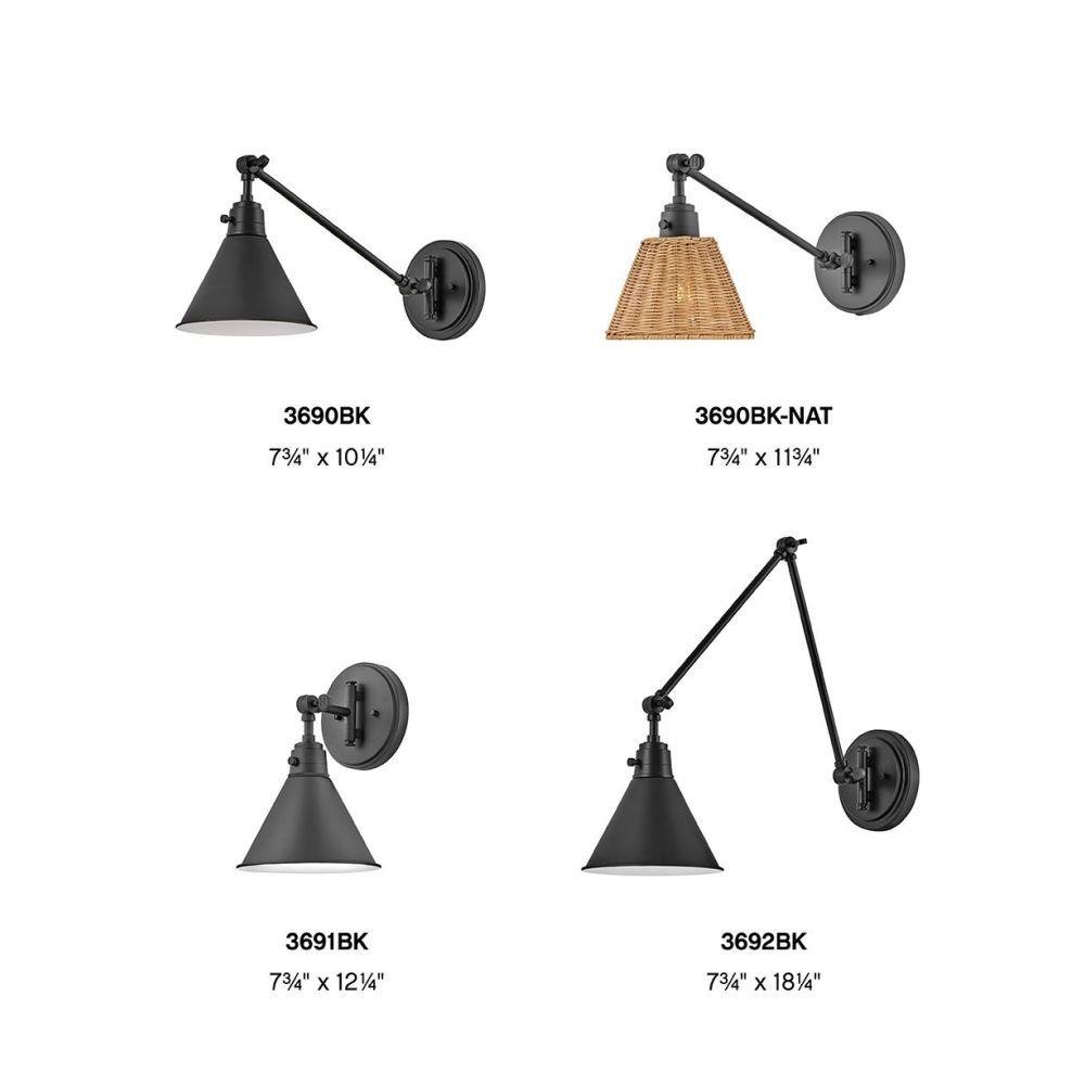 The perfect fixture for any space, Arti embodies simple elegance with its functional, streamlined design. Offering a robust lineup of fixture silhouettes, every aspect of the Arti family is adorned with practical features for a seamless integration into any room.Suitable for use in dry (indoor) locations as defined by NEC and CEC. Meets United States UL Underwriters Laboratories & CSA Canadian Standards Association Product Safety Standards / Merging the best of traditional and modern elements, with a sophisticated and streamlined silhouette perfect for any space / 21" Extension when fixture is fully extended. / Fully adjustable both left or right and up or down. / All dimensions listed are as shown. / Features On/Off switch / Optional cord cover available, 6938BK / Striking black finish enhances design / Includes on/off switch and can be hardwired or mounted with plug-in cord / Can be hard wired or mounted with fabric covered plug-in cord.