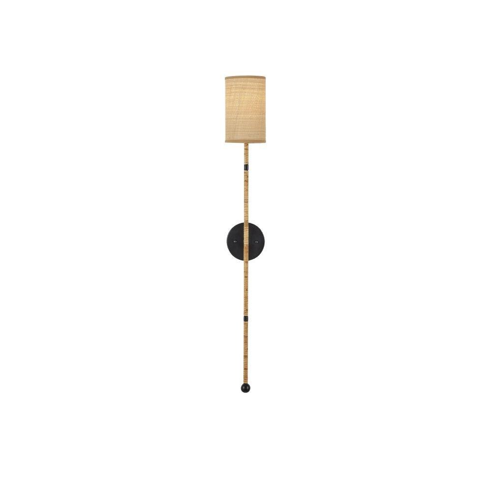 A seriously clever design, the Capriole Rattan Wall Sconce looks as if it is made of a floating stem of natural material when viewed from the front, but when seen from the side, the bow-shaped hardware that attaches it to the backplate creates a dynamic design detail. The way the minimal metal bands clasp the stem creates further interest. To contrast the natural rattan, Clarence Mallari, the designer of the fixture, chose a satin black finish for the metal.