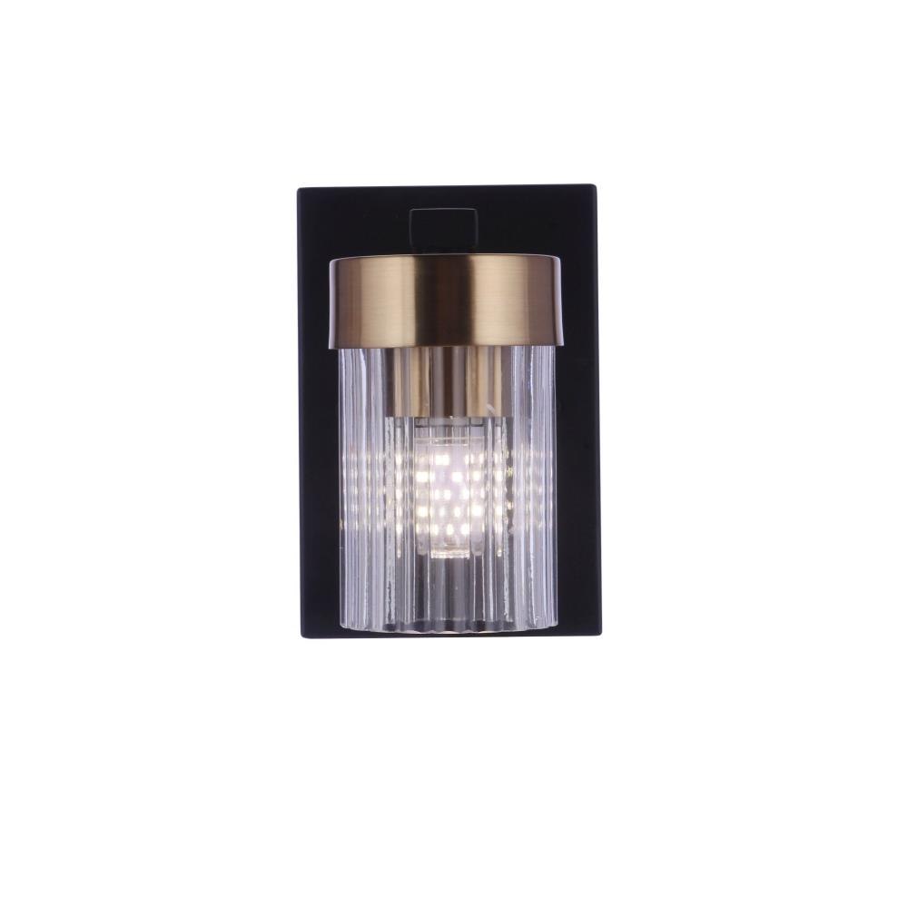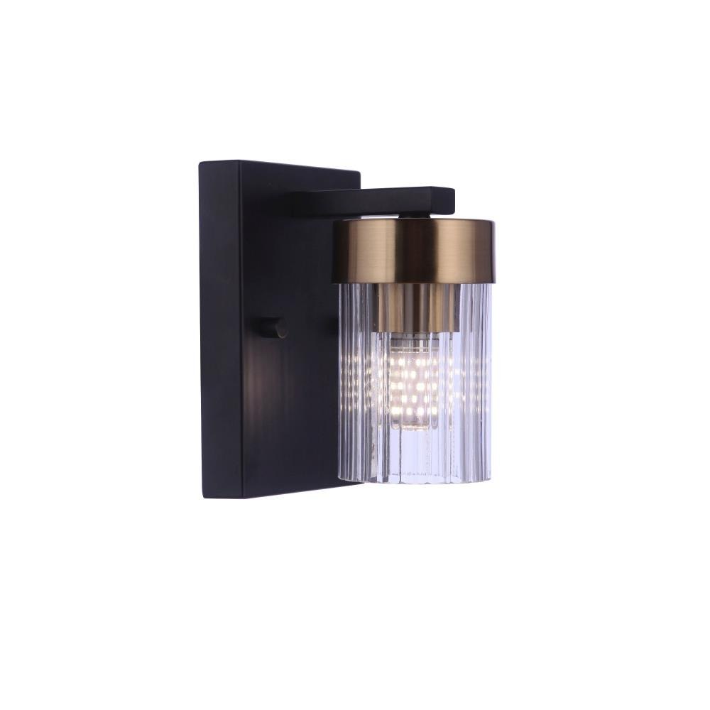 Experience the quiet luxury of the Bond Street Collection by Craftmade featuring slender clear fluted glass captured in satin brass supported by a rich flat black frame. The Bond Street vanity collection is available in five sizes from a single sconce to five light vanity.