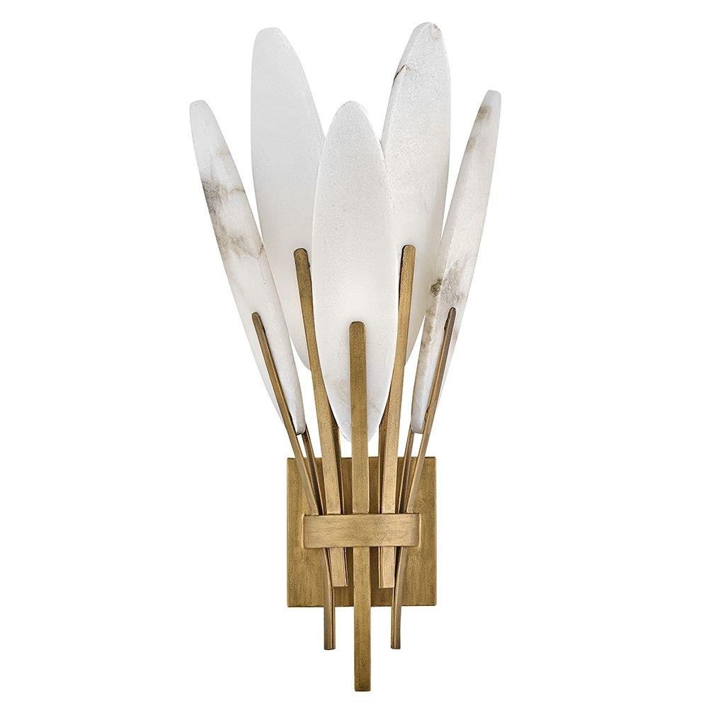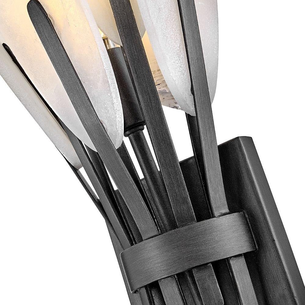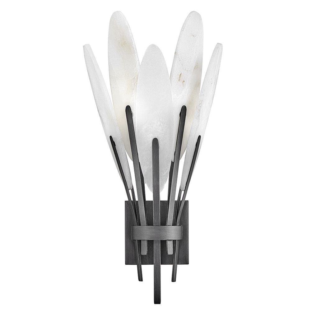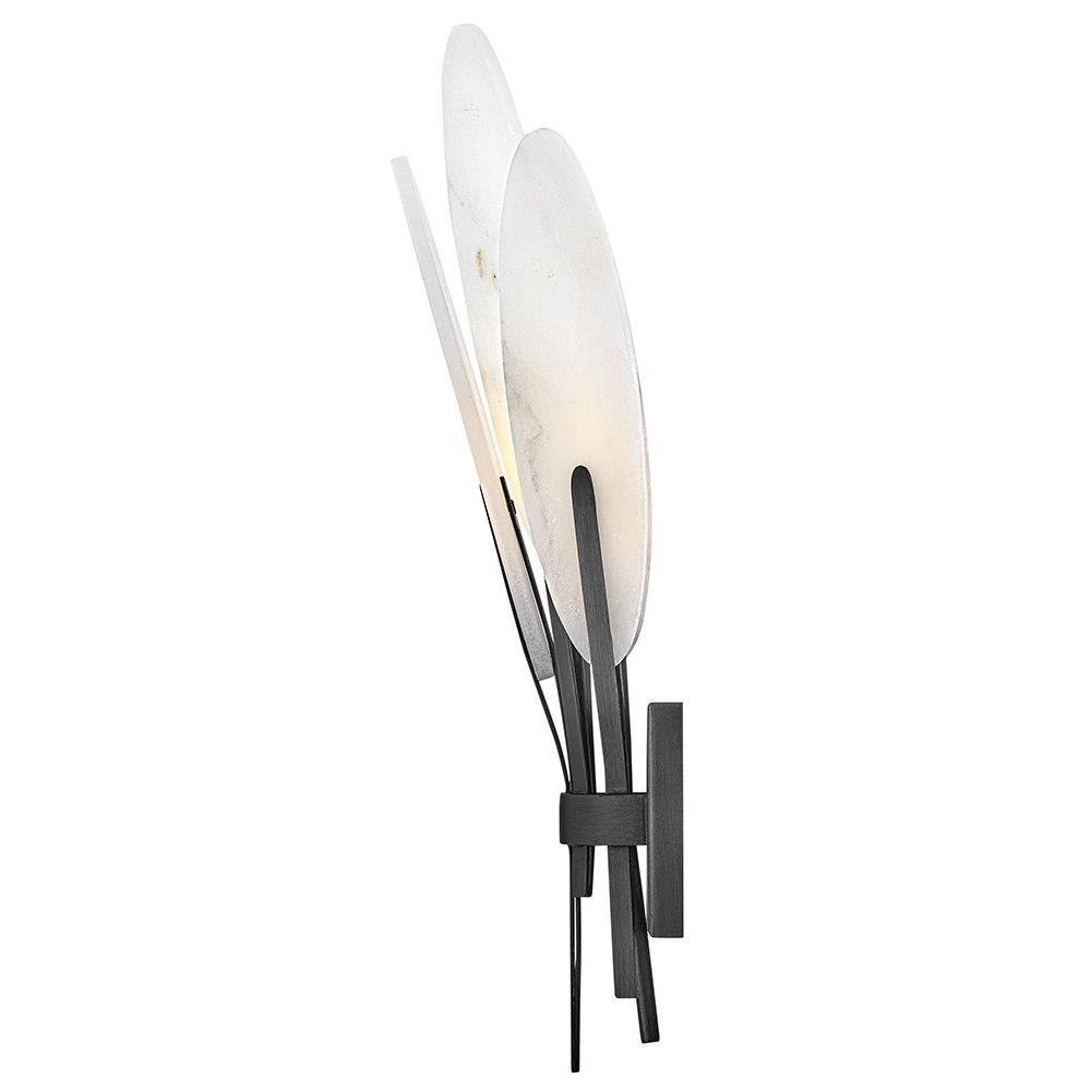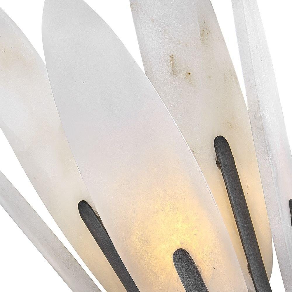 Inspired by the natural elegance of lush greenery, Nerine’s carved alabaster leaves flare outward, creating a stunning display of truly unique details. One-of-a-kind variations in the natural stone’s color and pattern are perfectly highlighted by a warm ambient glow, complemented by a Burnished Graphite or Gold finish.