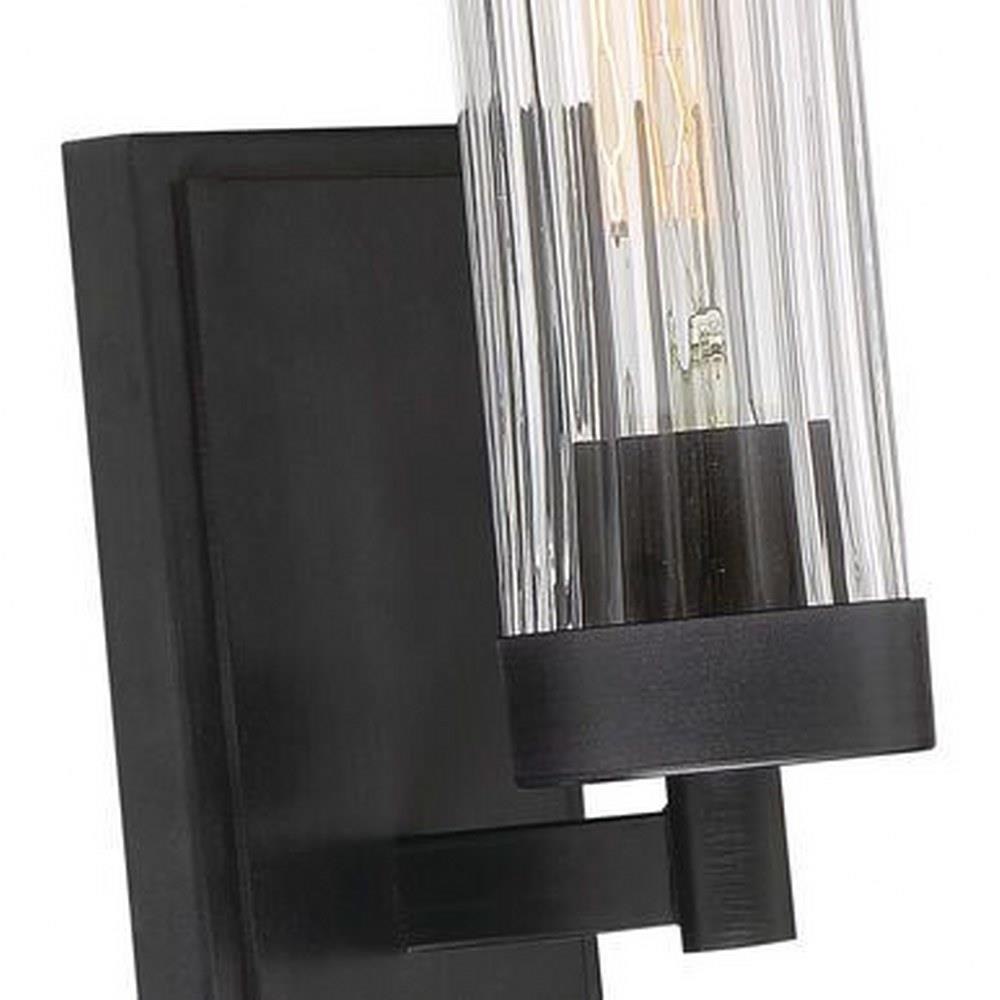 • Iron Graphic Wall Sconce with Clear Ribbed Glass shade ideal for today's interiors