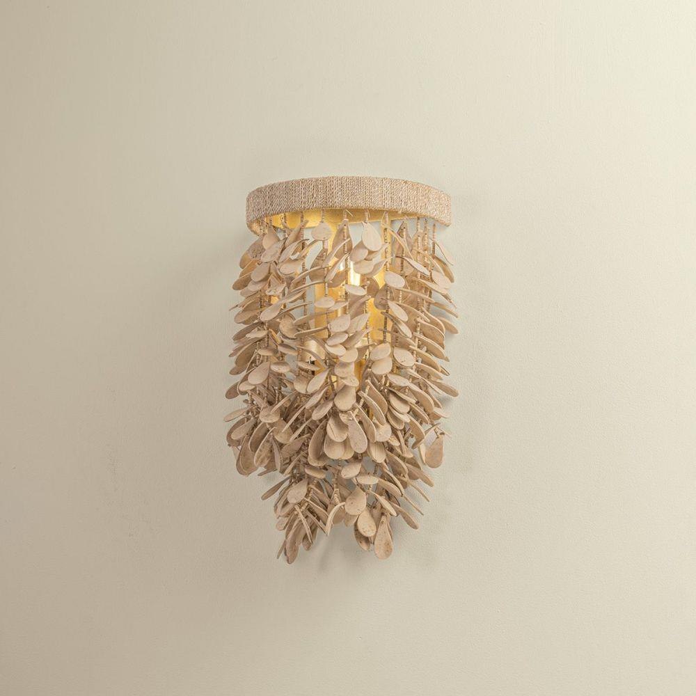 An ode to craftsmanship, the Naxos family is adorned with loosely draped strands of hand-carved coco shell pieces. The layering of smaller shell elements on each strand adds depth and volume, giving this family a sense of movement and a handcrafted beauty. Shaped like petals, the tonal pieces bring life to each design, including a 2-light wall sconce, a chandelier in three sizes, and an island light. *Due to the one-of-a-kind nature of the medium, exact colors and patterns may vary slightly from the image shown.