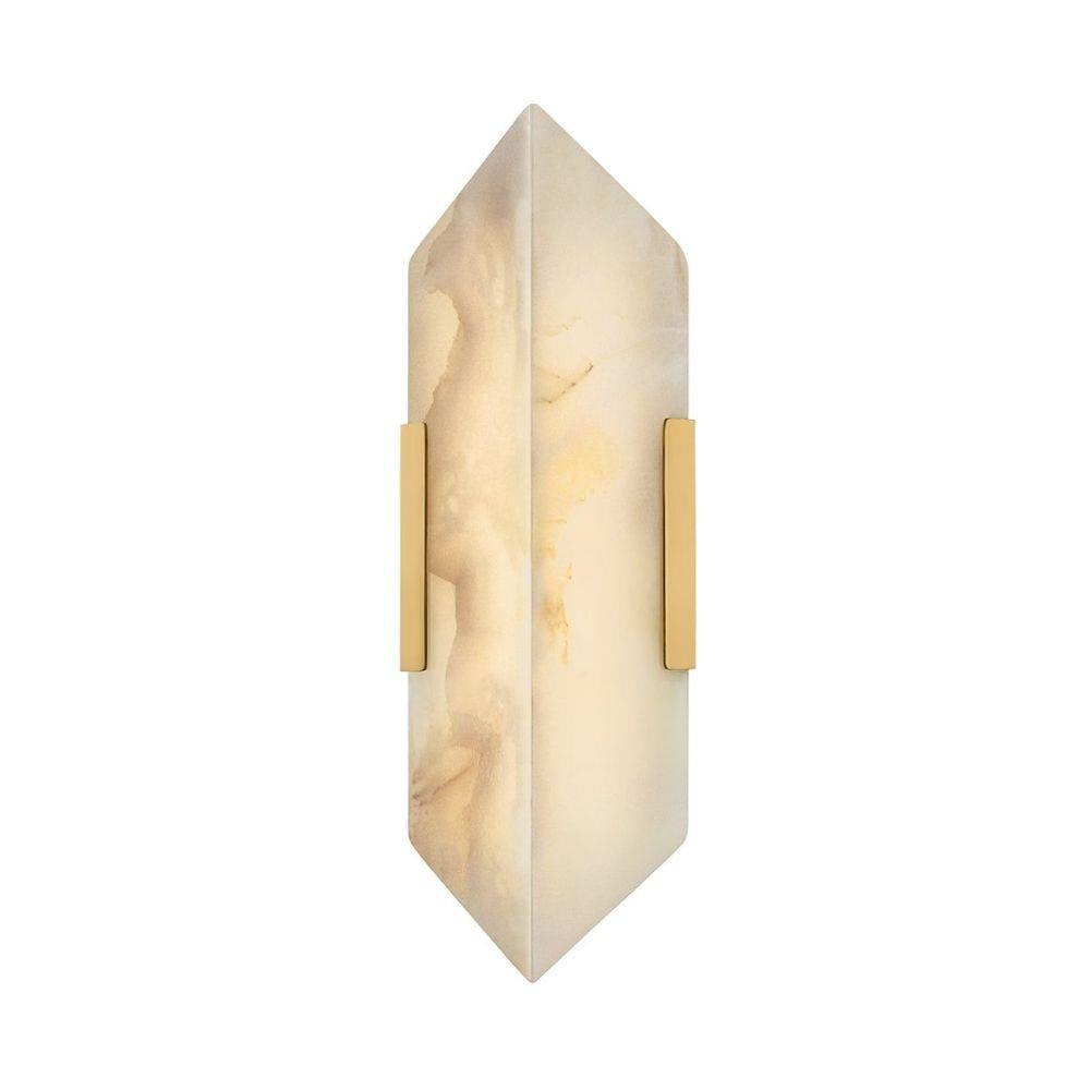 Geo is defined by its quiet strength and sculptural clarity. Glowing panels of honey onyx are book matched to reveal mirrored veining—an artisanal detail more often seen in luxury surfaces than lighting. The symmetry of the stone takes center stage, framed by clean, minimal metalwork in Vintage Brass that amplifies its natural elegance. Available as a 1-light wall sconce in two shapes and sizes, as well as a 1-light flush mount, Geo offers a soft, grounded glow that feels both bold and restrained. Its graphic silhouette and elemental beauty lend structure and visual rhythm to interiors. *Due to the one-of-a-kind nature of the medium, exact colors and patterns may vary slightly from the image shown.
