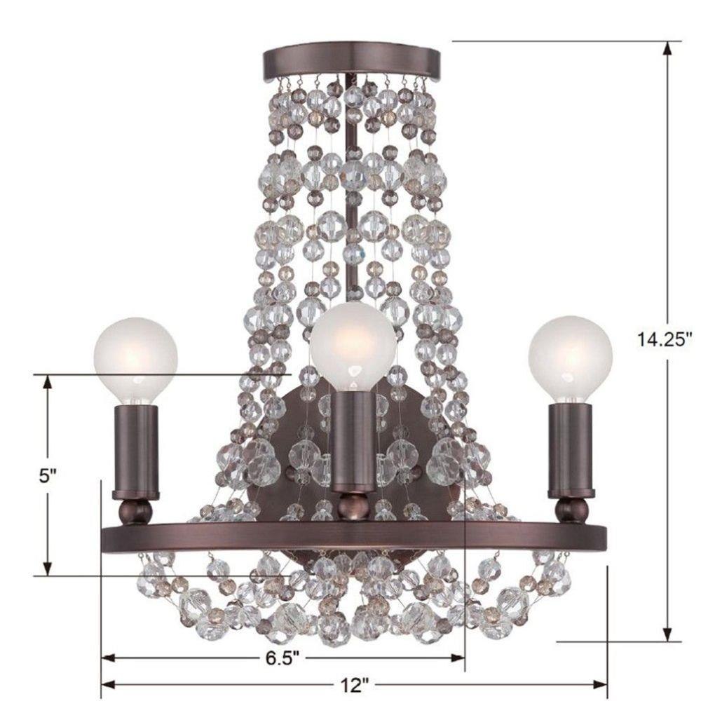 Inspired by jeweled necklaces, the Channing collection is a chic accent for your elegant home. With draped crystals of varying sizes and colors beaded between golden teak, golden shadow and clear beads, and finished in a chocolate bronze the collection offers a unique design. This fixture is perfect for a grand hall way or even a quant living room. Either way this stunner will add a transitional accent to any space.