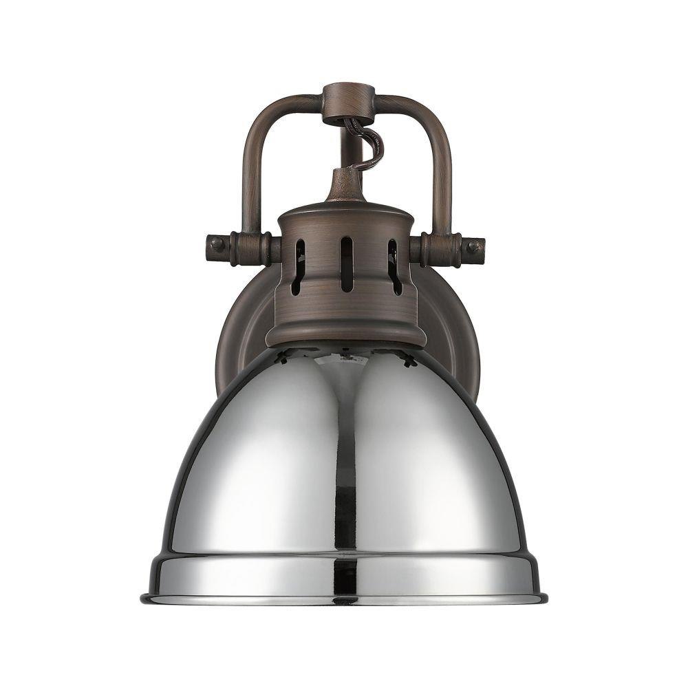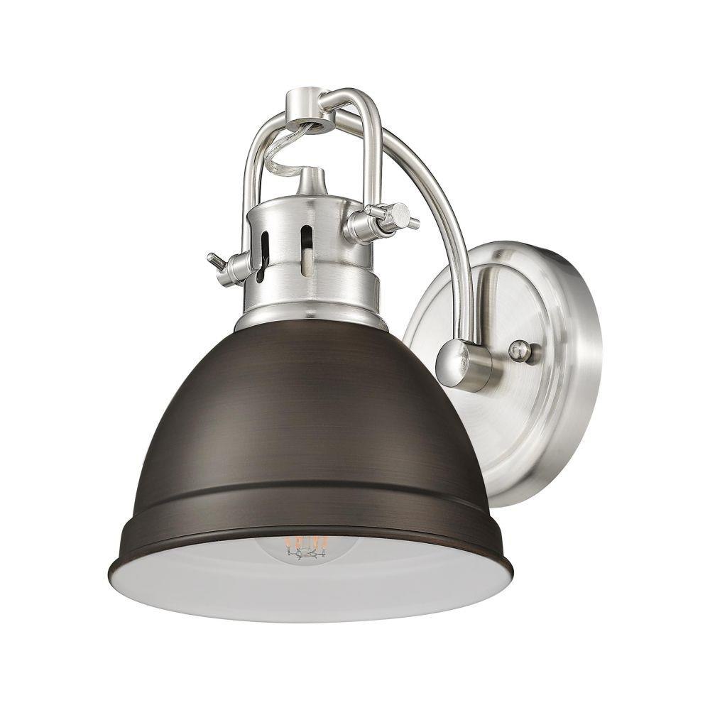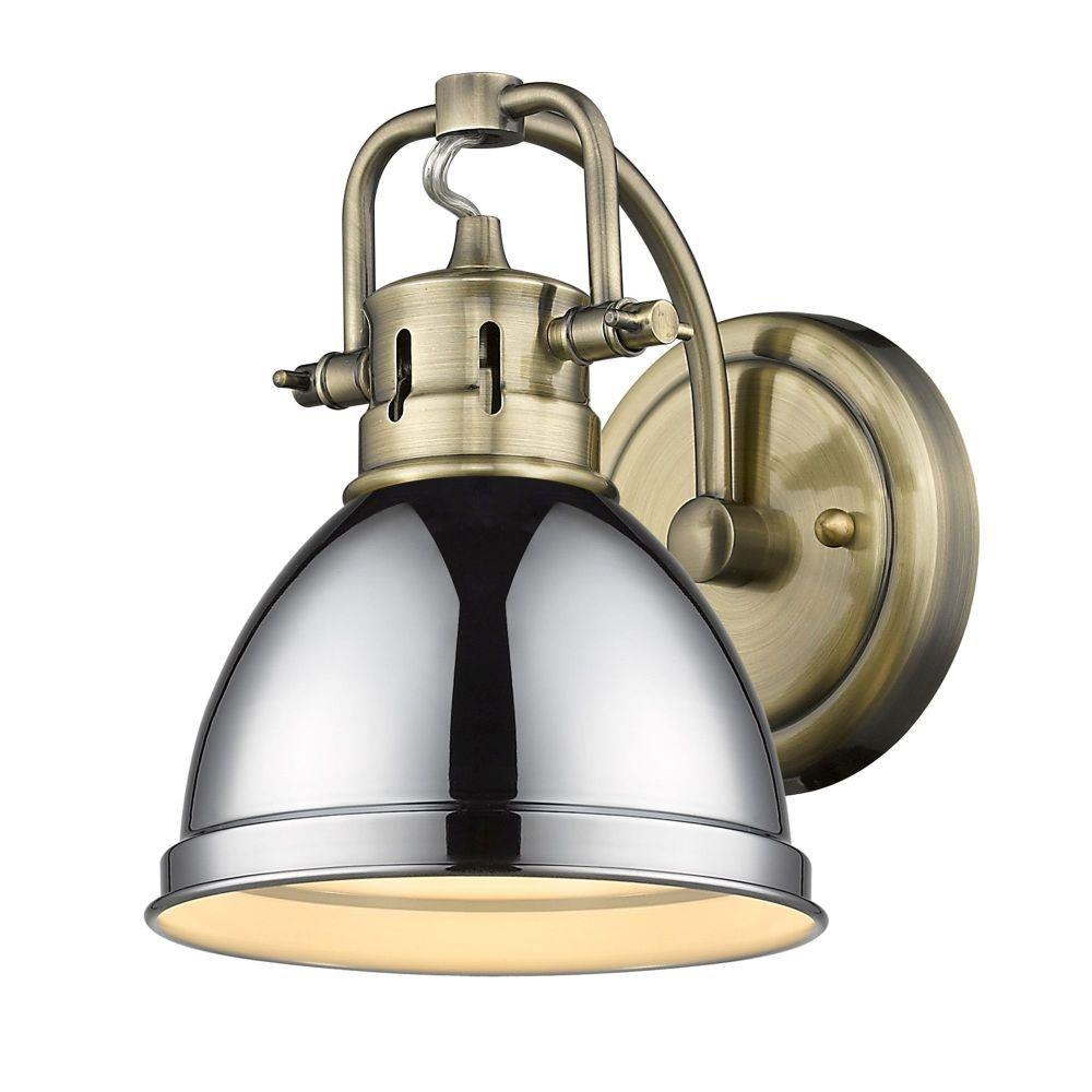 The Duncan collection is contemporary style with an industrial feel. The collection features a variety of simple, traditional silhouettes that are a nod to a bygone era. Transform the look of your room with these classic, vintage-inspired fixtures. A variety of plated and painted metal shade finishes are offered in choice combinations. This 1-light bath vanity is perfect for modern or contemporary style home decors. It is UL approved for damp locations and works well in a bathroom, living room or hallway.