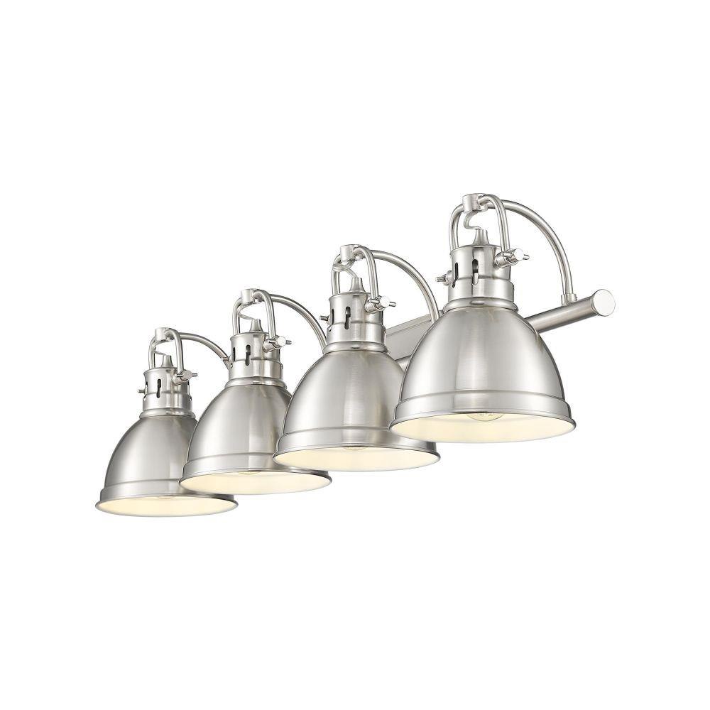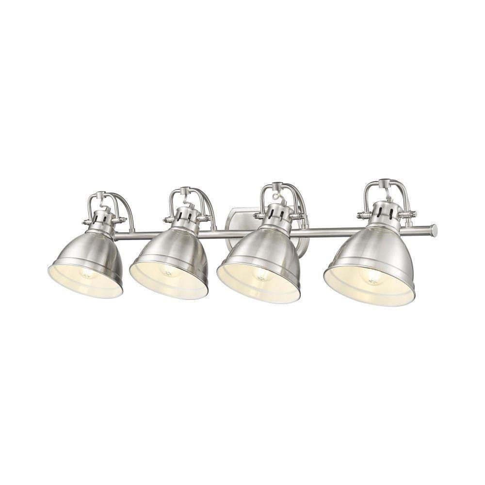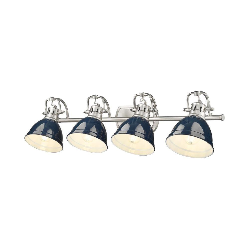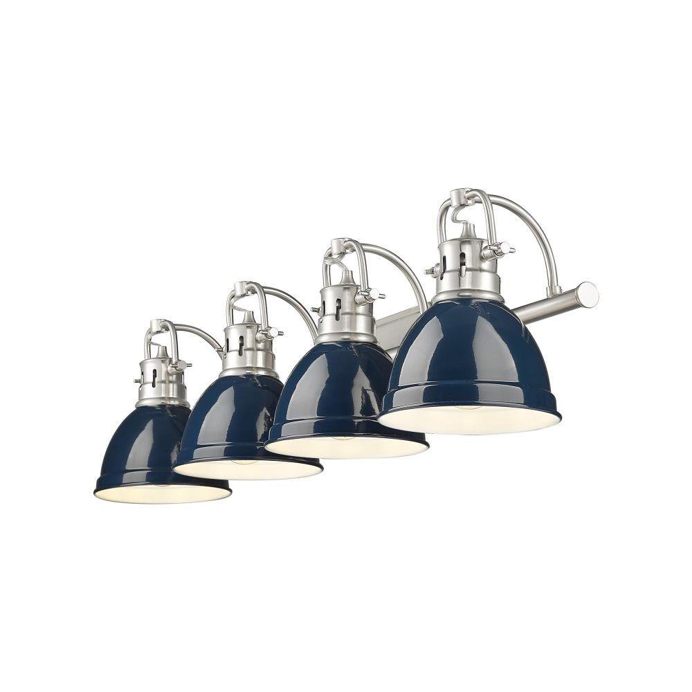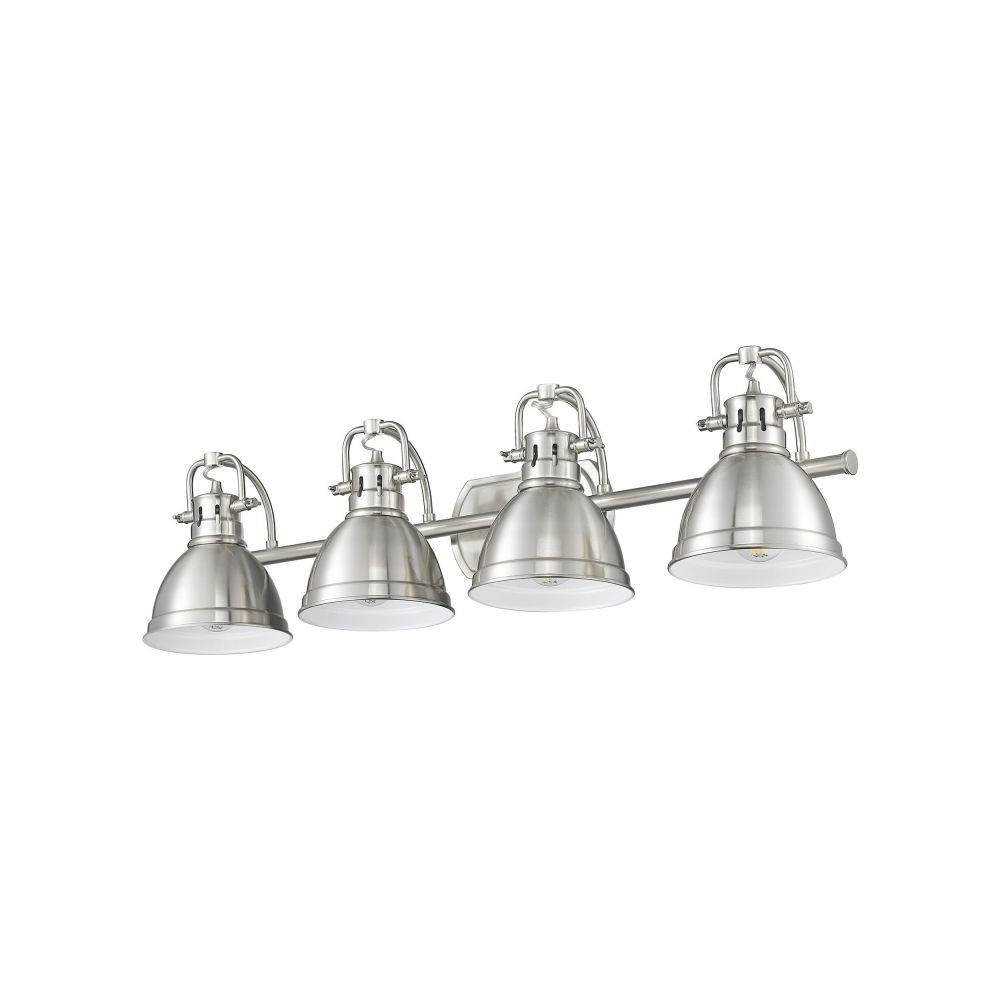 The Duncan collection is a contemporary style with an industrial feel. The collection features a variety of simple, traditional silhouettes that are a nod to a bygone era. Transform the look of your room with these classic, vintage-inspired fixtures. Various plated and painted metal shade finishes are offered in select combinations. This bath vanity is perfect for modern or contemporary style home decor. It is UL approved for damp locations like bathrooms.