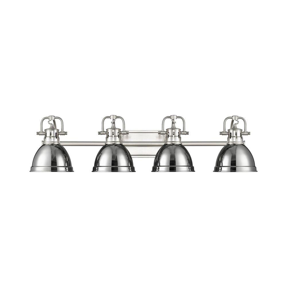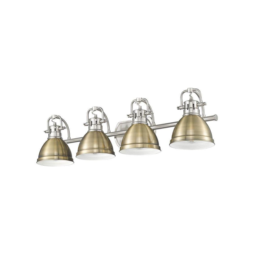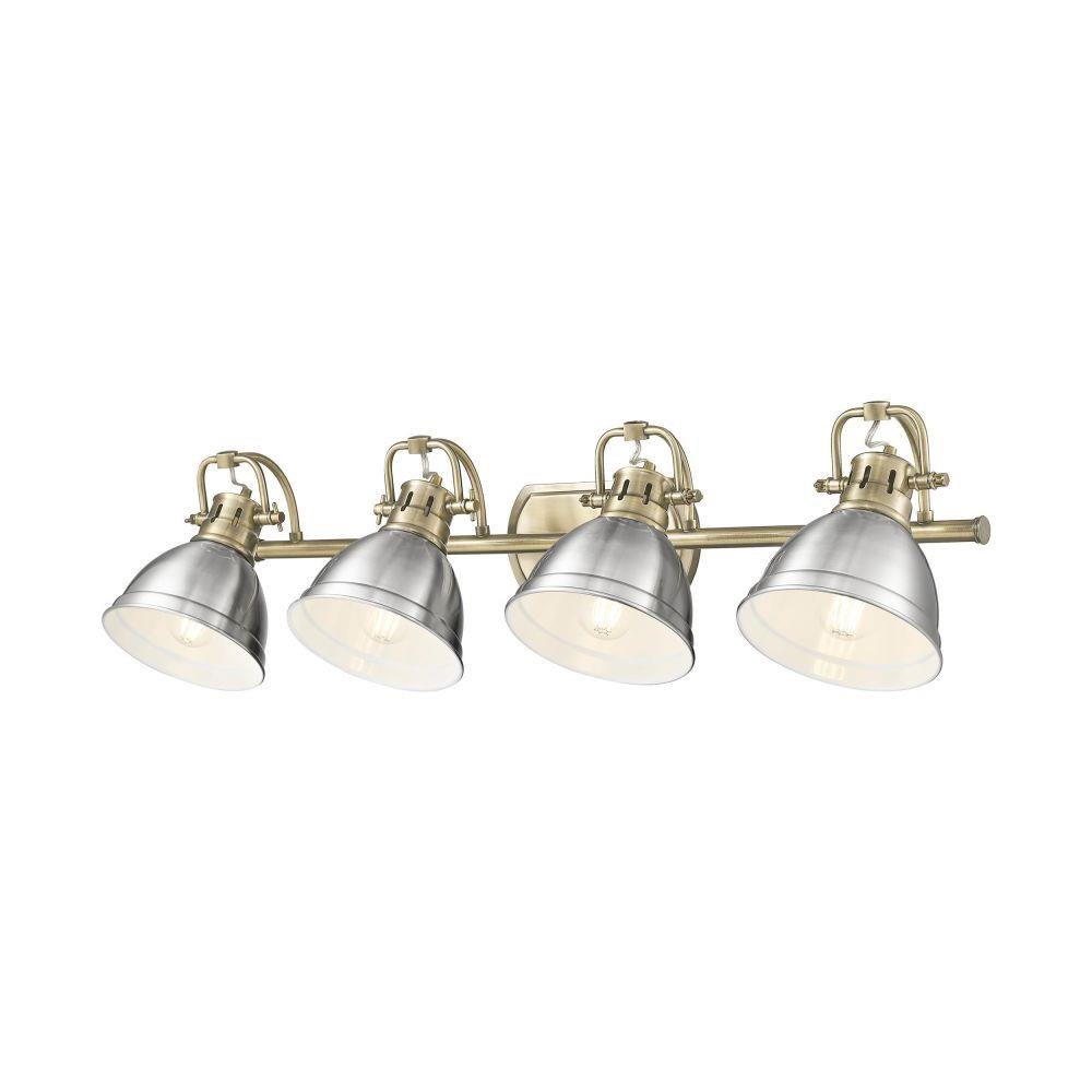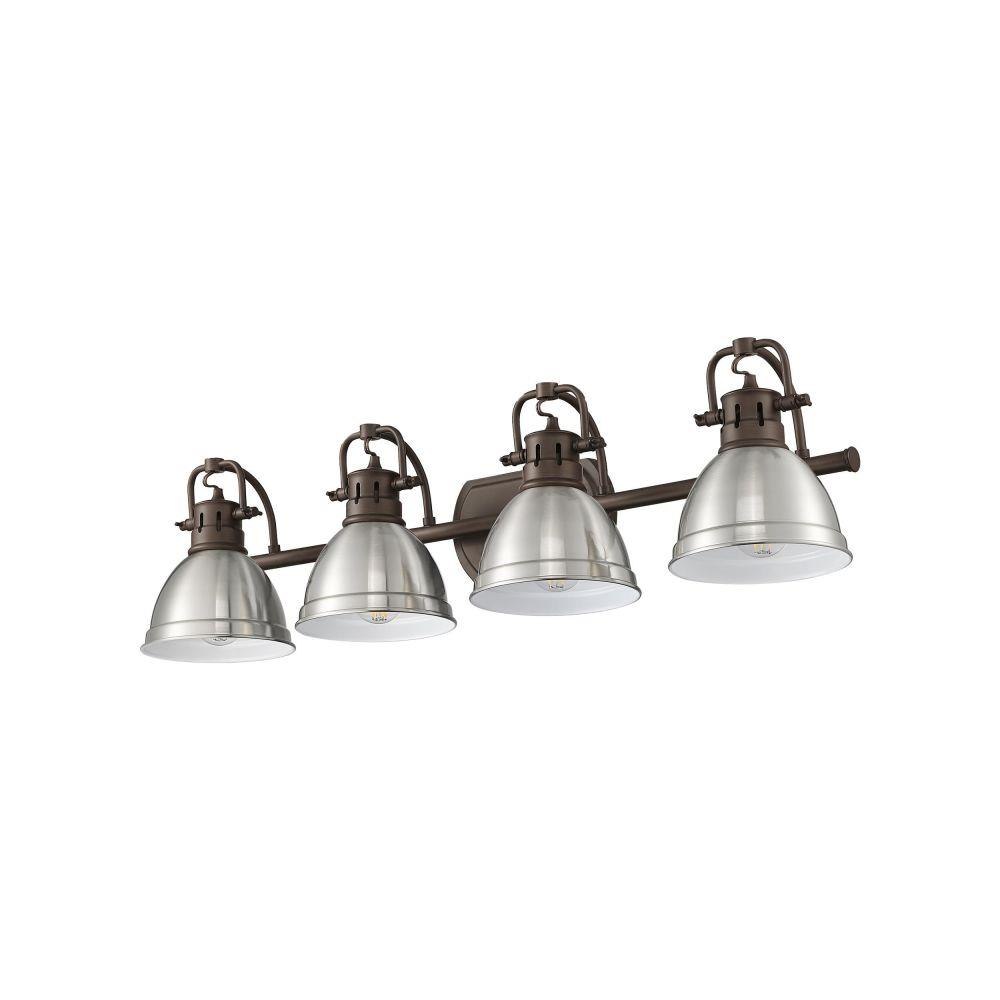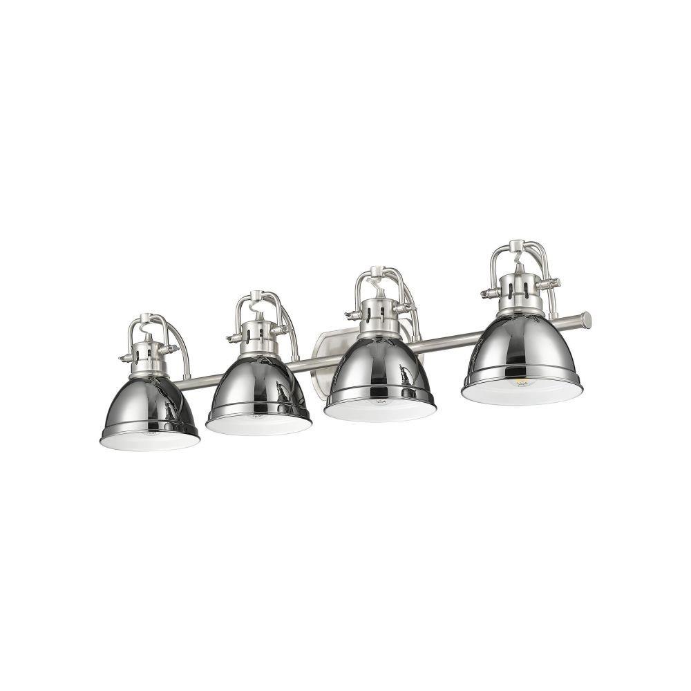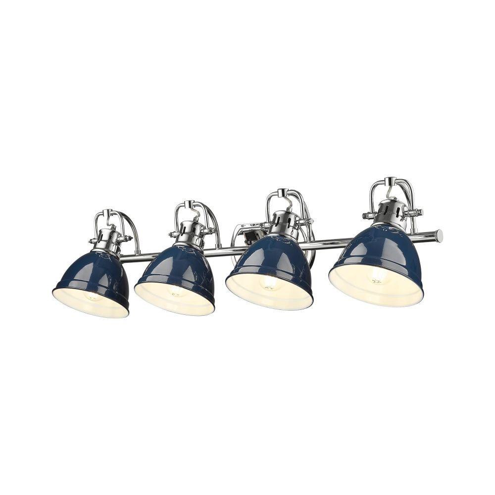 The Duncan collection is a contemporary style with an industrial feel. The collection features a variety of simple, traditional silhouettes that are a nod to a bygone era. Transform the look of your room with these classic, vintage-inspired fixtures. Various plated and painted metal shade finishes are offered in select combinations. This bath vanity is perfect for modern or contemporary style home decor. It is UL approved for damp locations like bathrooms.