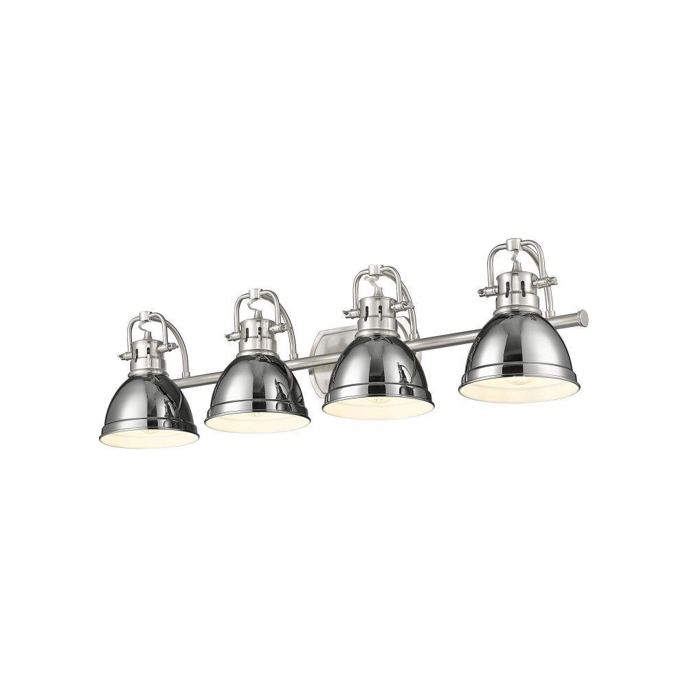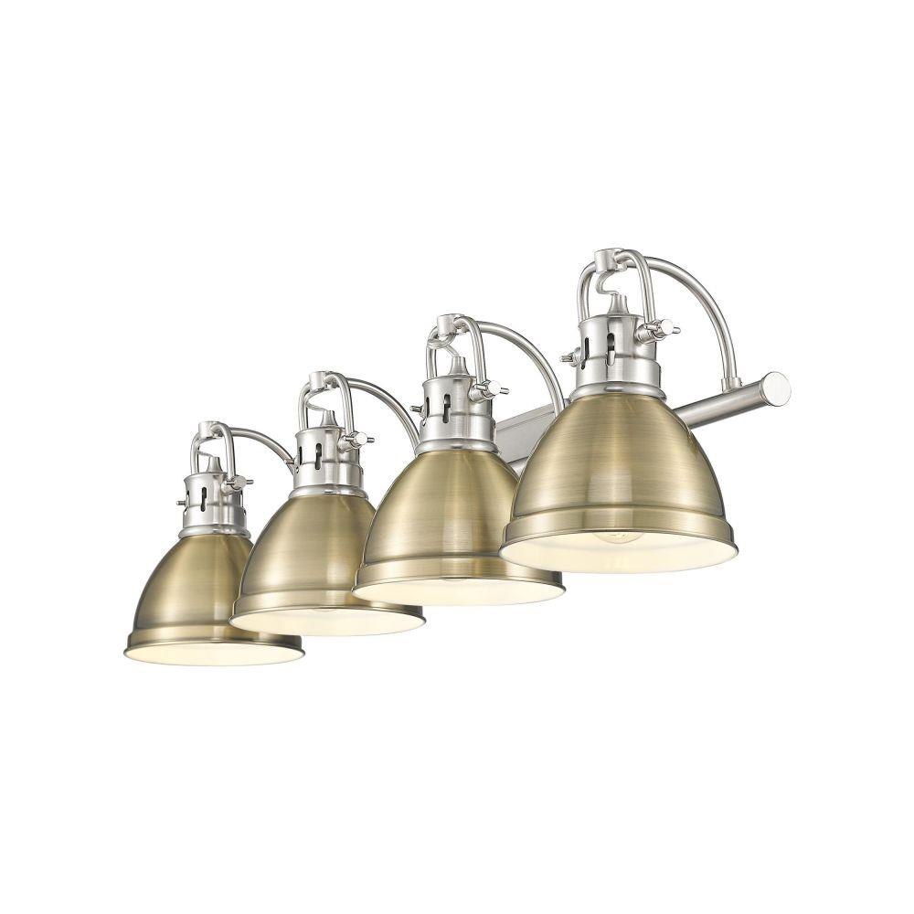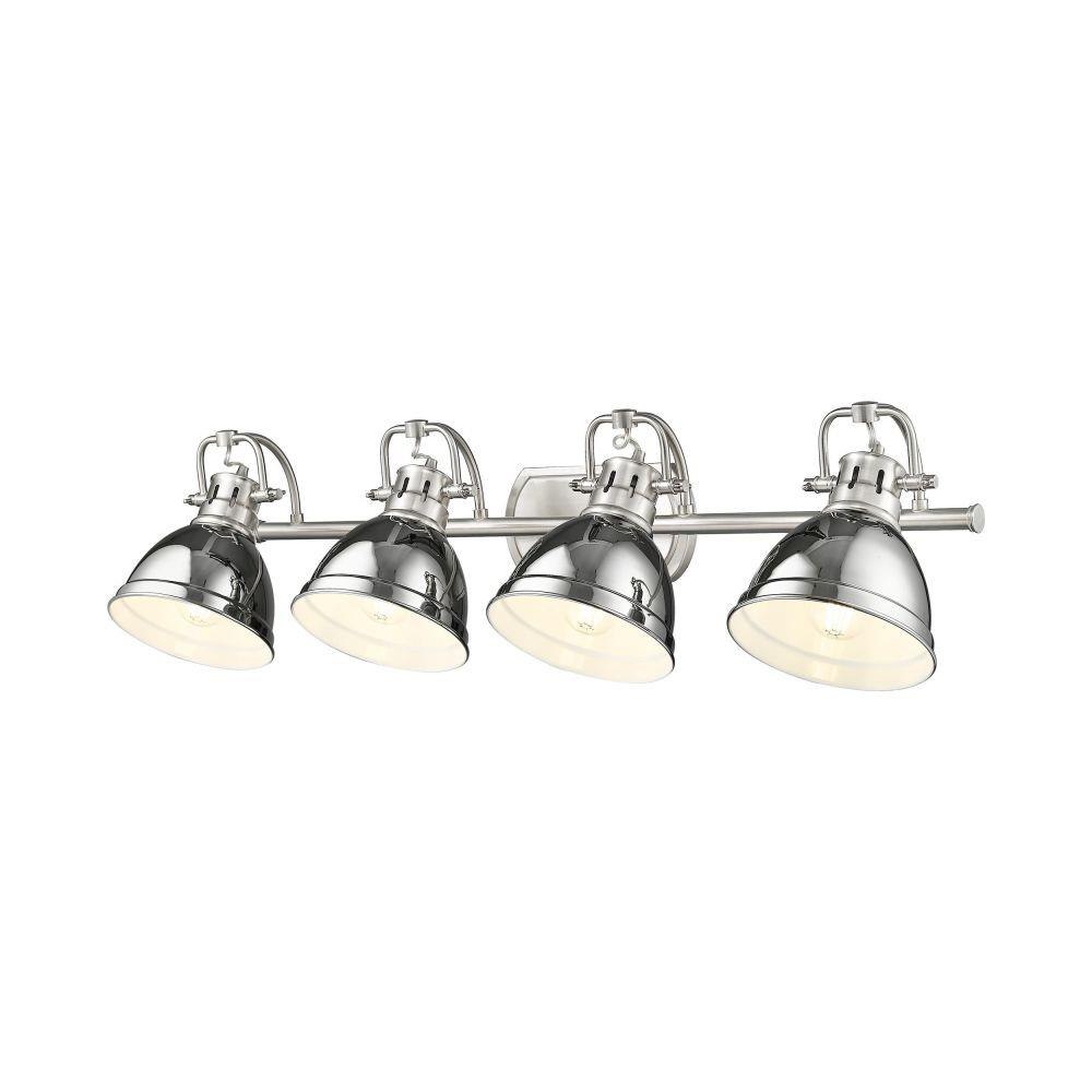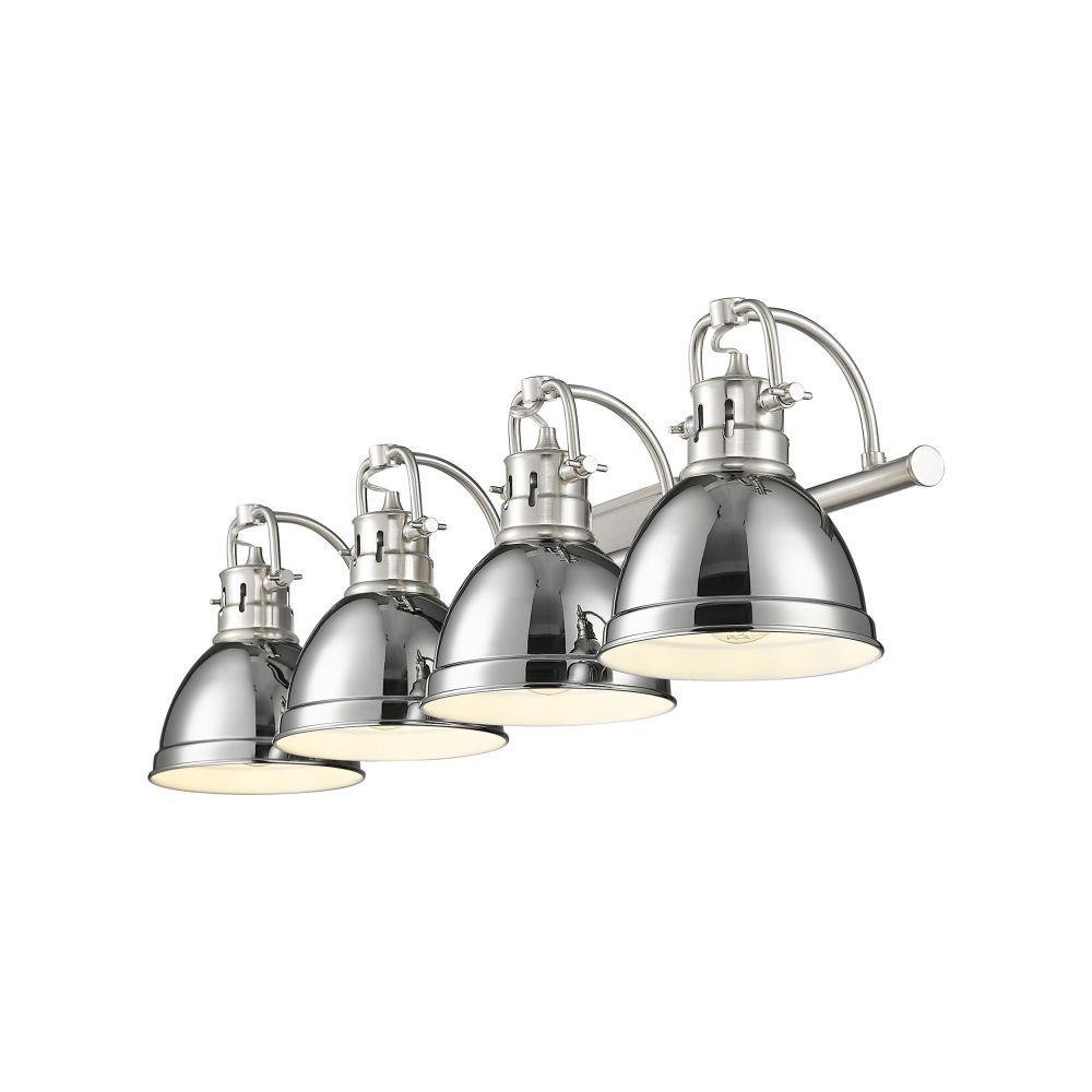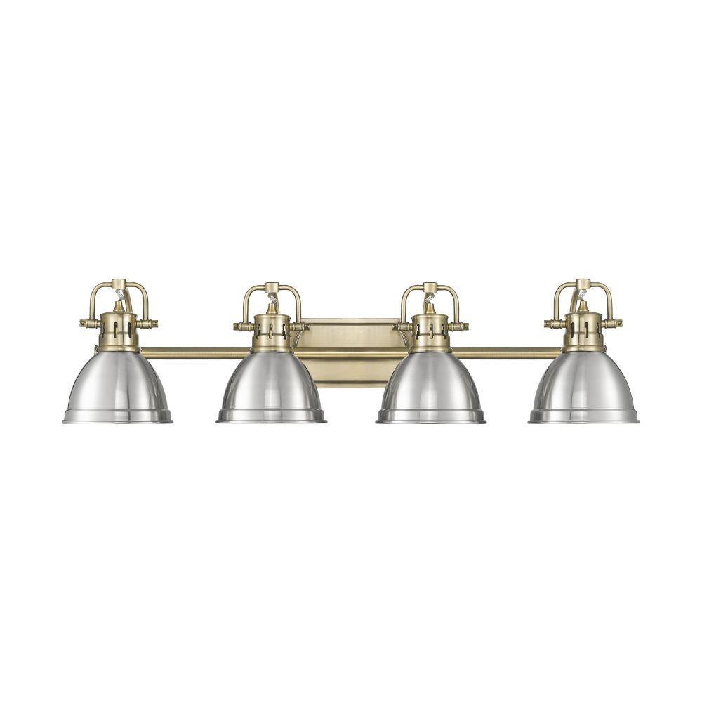 The Duncan collection is a contemporary style with an industrial feel. The collection features a variety of simple, traditional silhouettes that are a nod to a bygone era. Transform the look of your room with these classic, vintage-inspired fixtures. Various plated and painted metal shade finishes are offered in select combinations. This bath vanity is perfect for modern or contemporary style home decor. It is UL approved for damp locations like bathrooms.
