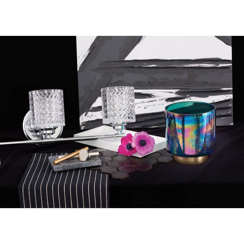 Traditional elegance with a modern edge defines Elle’s graceful design. Rich chevron cut glass provides interesting light refraction and is a dramatic focal point whether the light is on or off. The gleaming metal finish adds to the glam design that gives a touch of radiance to any space.Classic gleaming light brass finish / Fixture can be mounted either up or down / Suitable for use in damp locations as defined by NEC and CEC. Meets United States UL Underwriters Laboratories & CSA Canadian Standards Association Product Safety Standards / Mounting hardware is hidden on the backplate to ensure a clean silhouette / Classic, elegant lines and timeless details enhance a traditional space