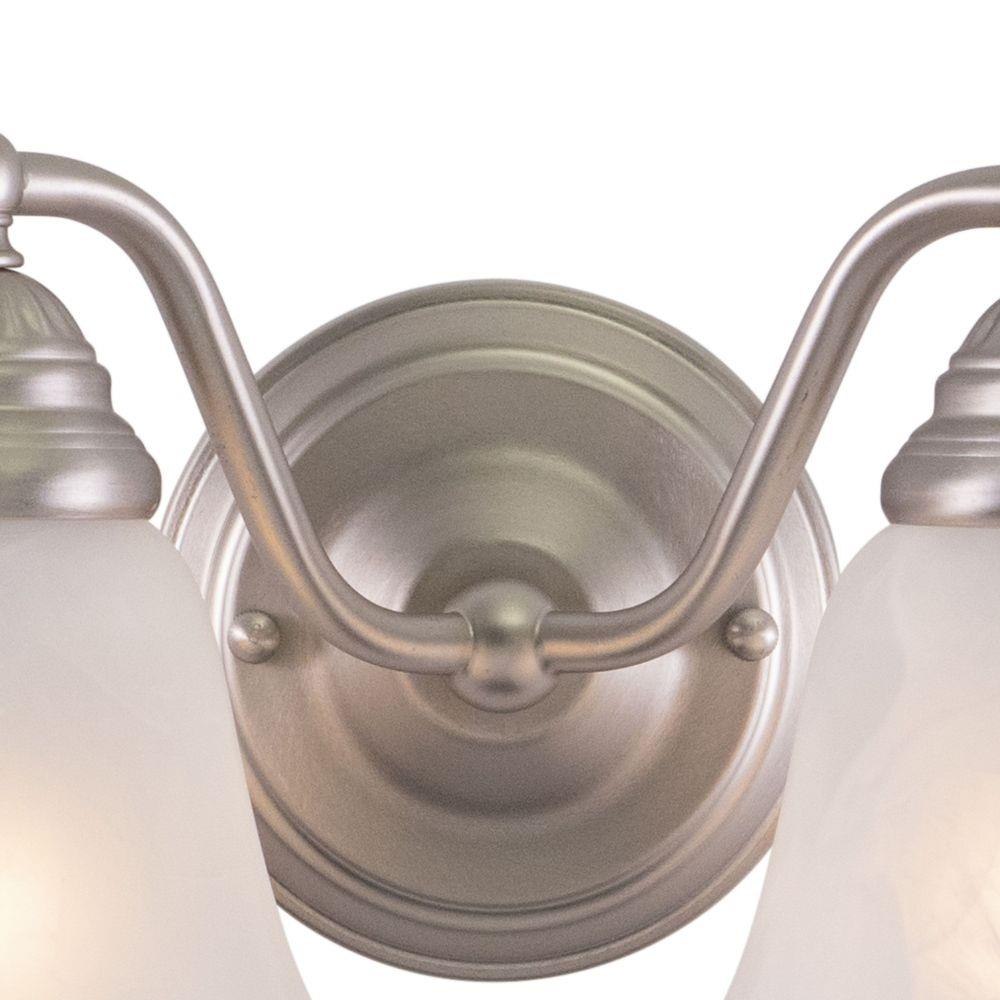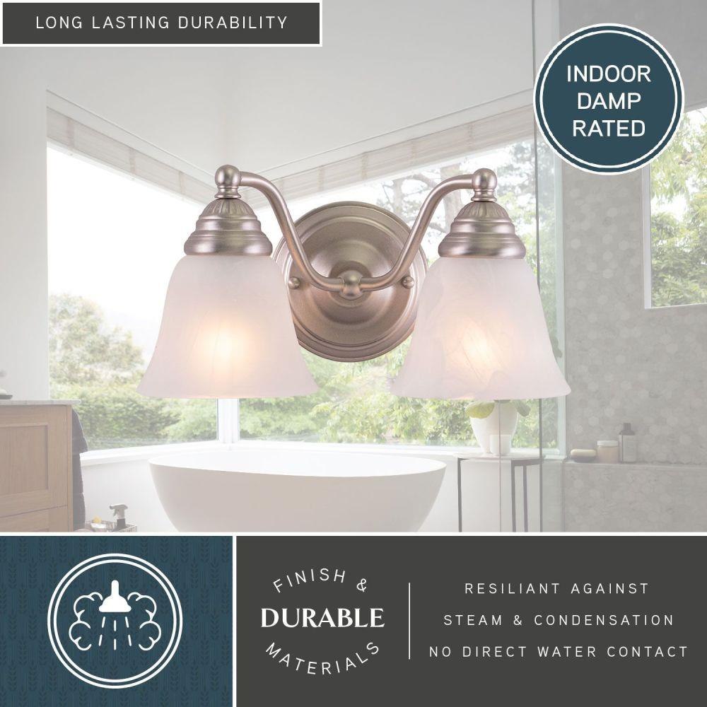 A simple yet sophisticated design is fitting in the traditionally styled Standford collection. It features an antique brass finish with white alabaster glass shades. Create a distinguished yet classic look by combining pieces from this extensive series of fixtures. Versatile reversible mounting option lets you install this fixture up or down. This bathroom light is perfect over small vanities or as a pair over double sinks.