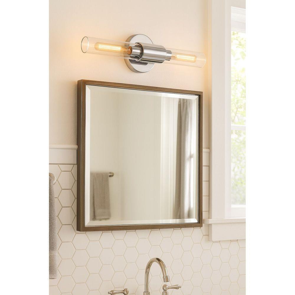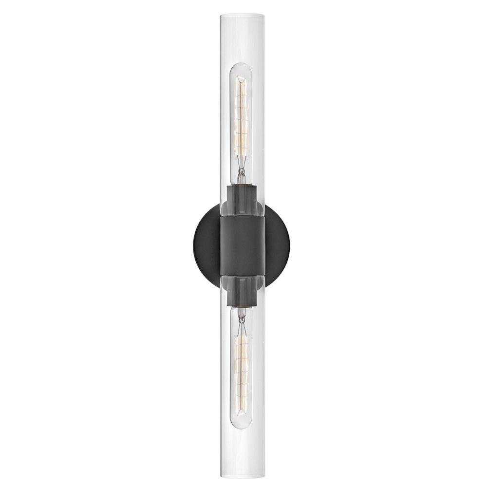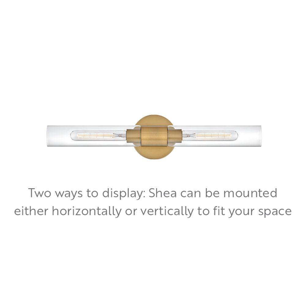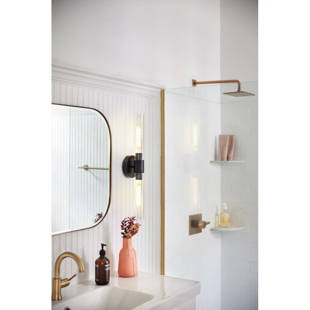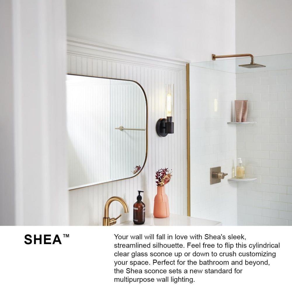 Your wall will fall in love with Shea’s sleek, streamlined silhouette. Stretch style boundaries with this 2-light double cylinder clear glass sconce in matte Black. Perfect for the bathroom and beyond, Shea sets a new standard for multipurpose wall lighting and can be mounted horizontal or vertical. Pro tip: T10 bulbs are required but go with the wattage that wins you over.