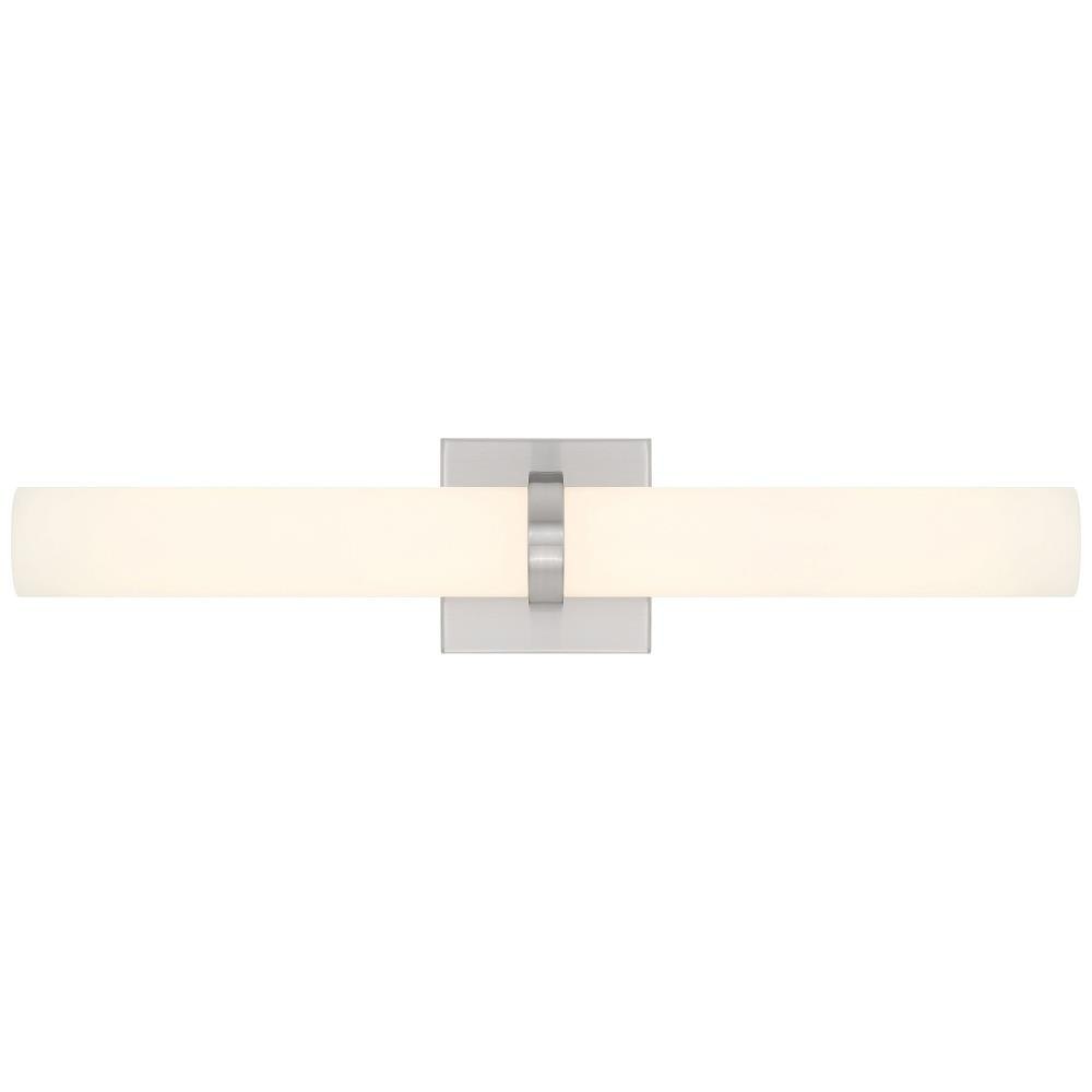 Merging form and function brings you this LED vanity light. Opal cylindrical tubing houses bright lights, paired with a brushed steel band that clasps the tube in the middle and caps each end. The premium brilliance emitted from this fixture will liven up your bathroom or powder room.