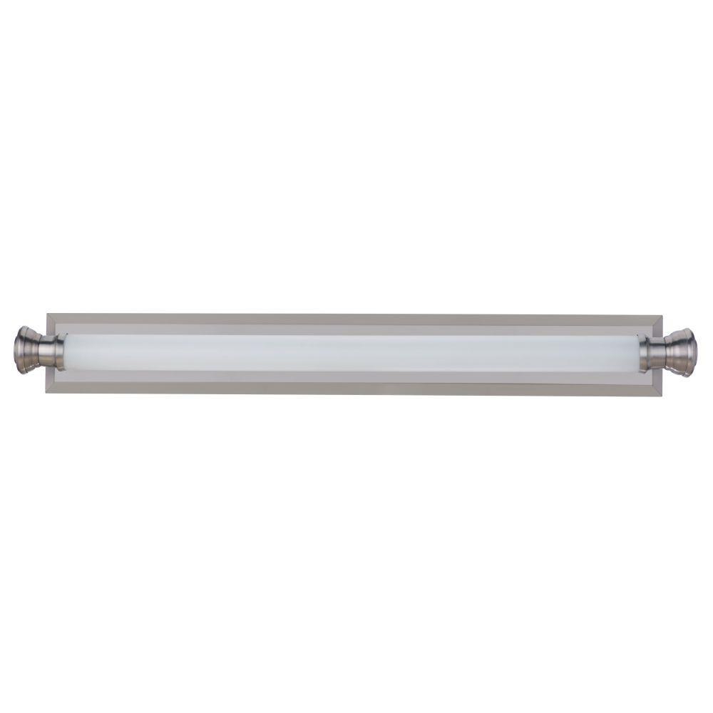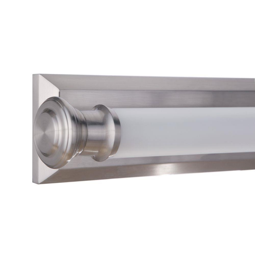 The versatile damp rated Langston Collection featuring white frosted glass captured LED lighting that illuminates the long, narrow brushed nickel backplate, is equally at home in a bathroom, bedroom, bunkbed, library, kitchen or any space that requires an energy efficient light and can be installed vertically or horizontally.