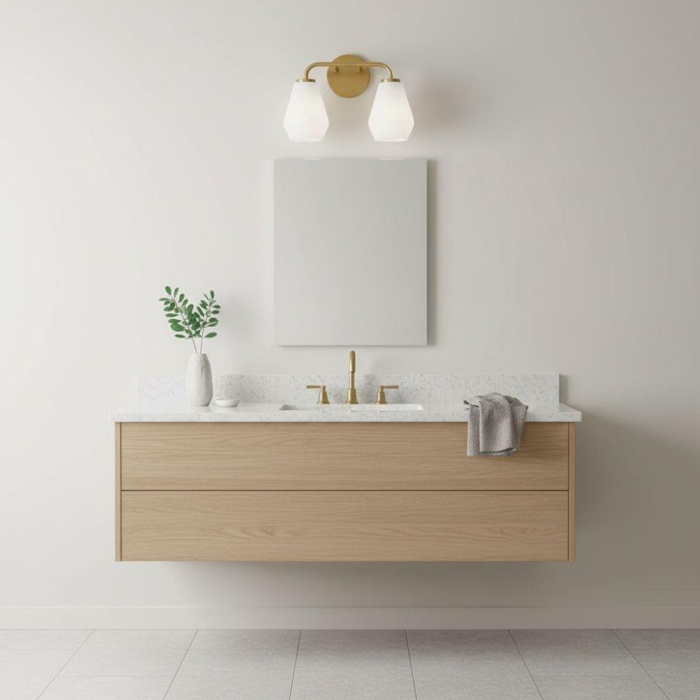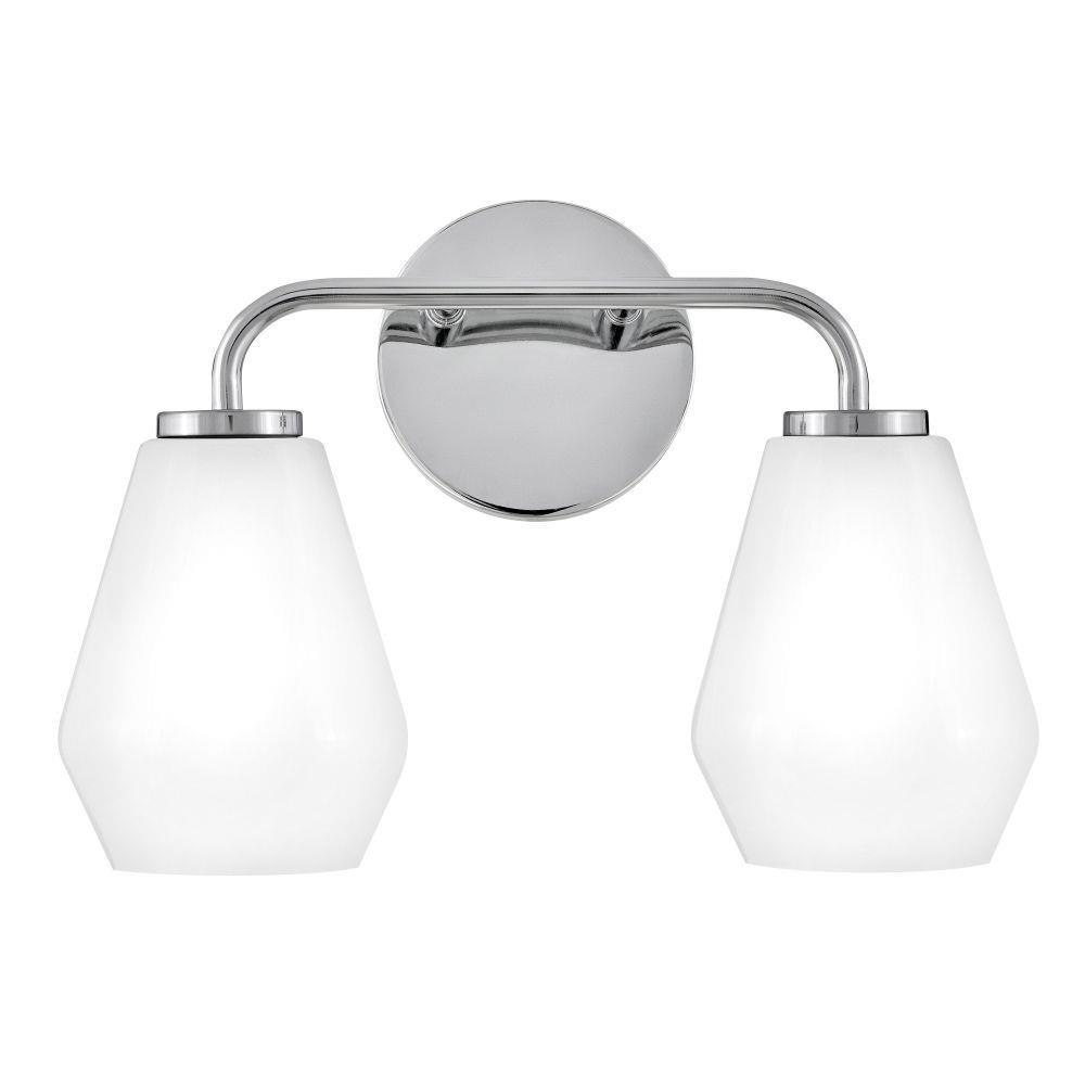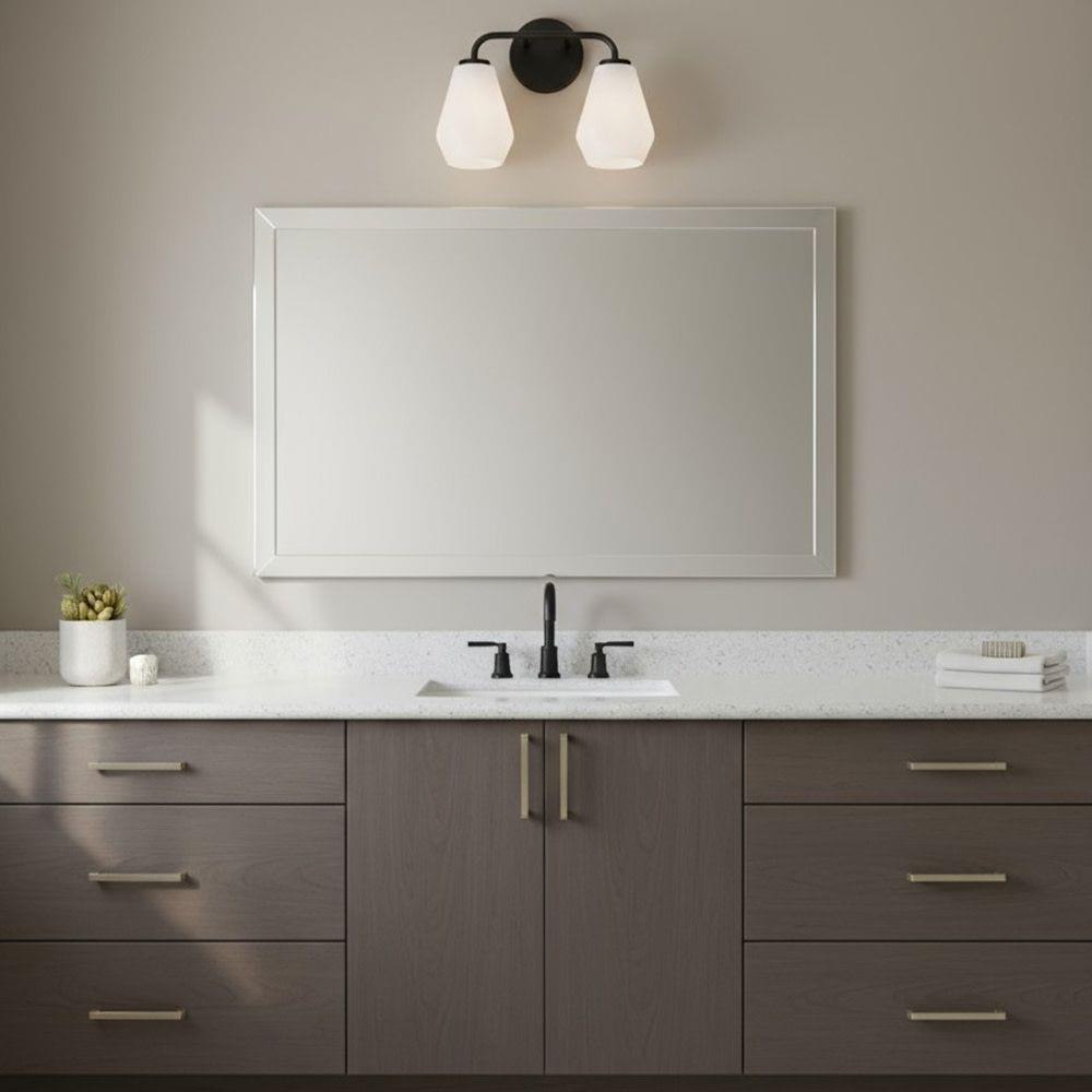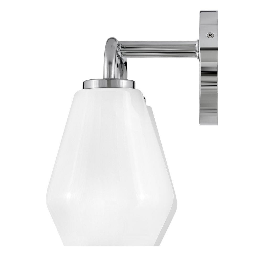Subtle geometric elements find harmony within the sleek, curved lines of Gio. The cased opal glass covers the space in functional, diffused light while providing a nice contrast to the bold variety of finish colors. Gio’s transitional glam design and clean profile add to any bath décor.