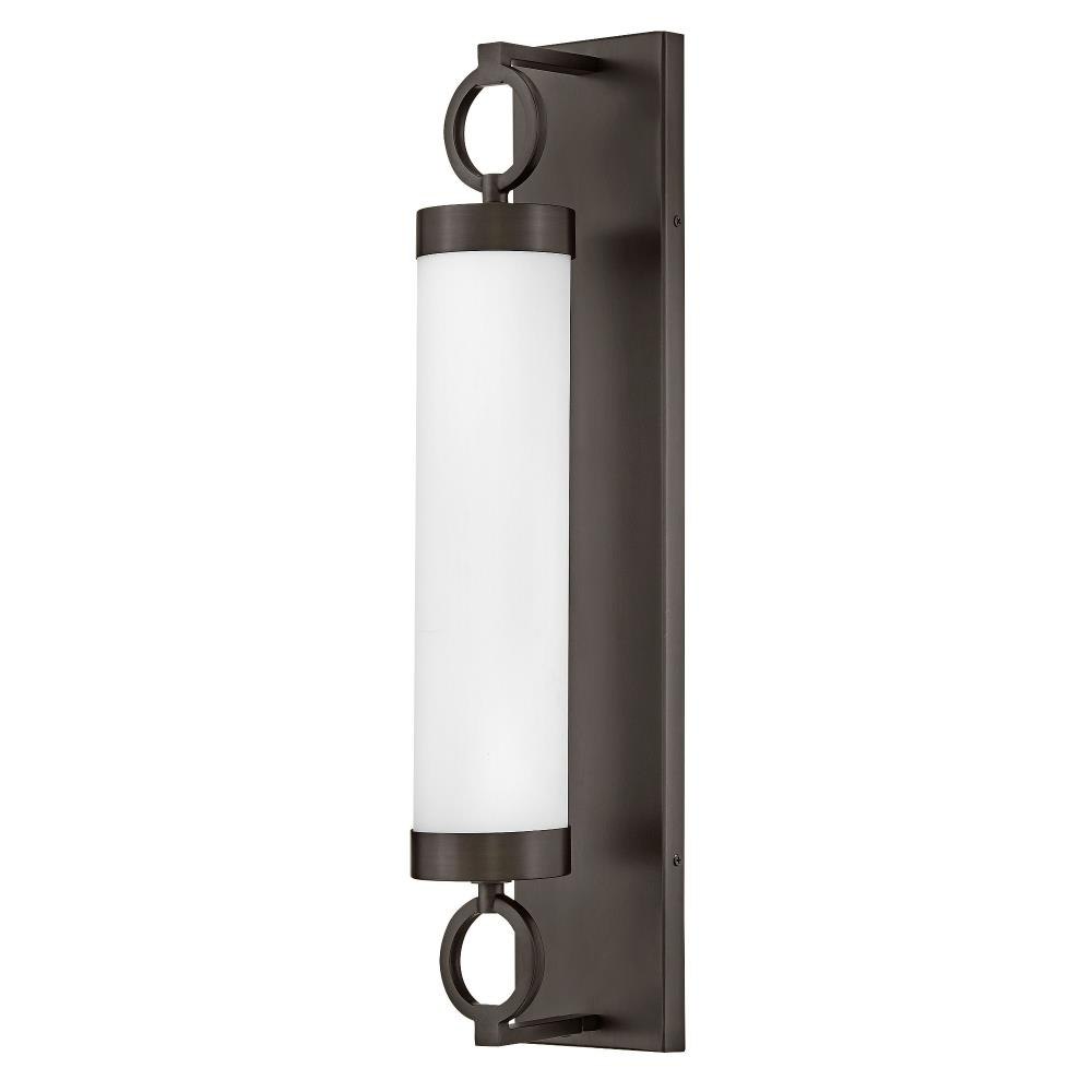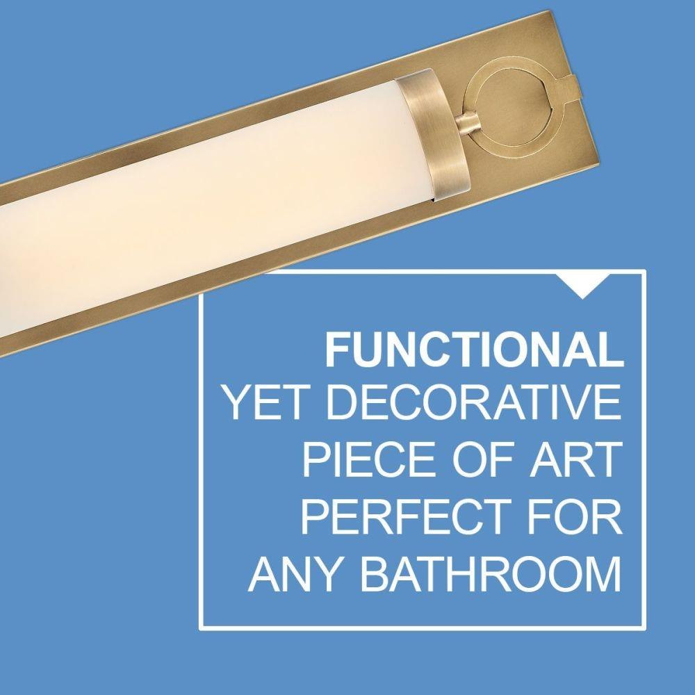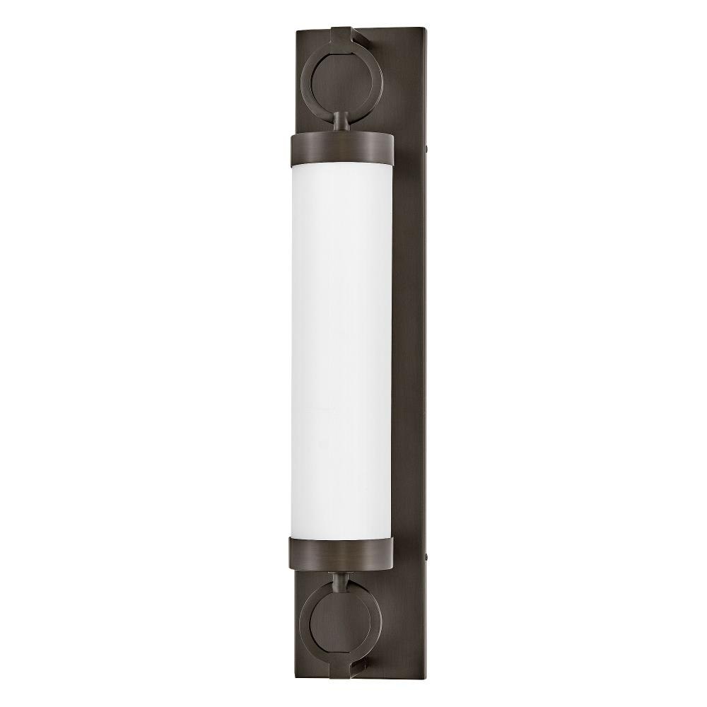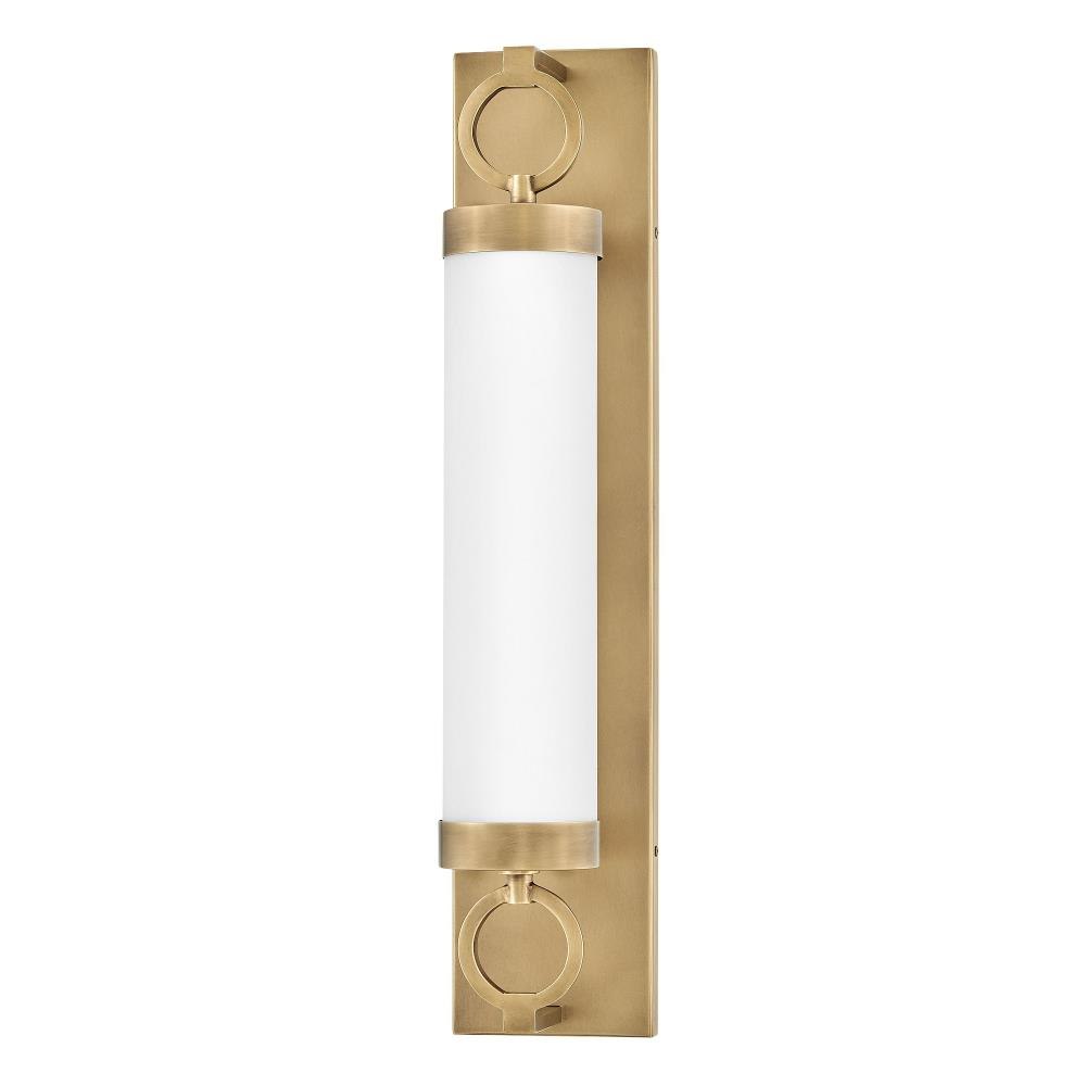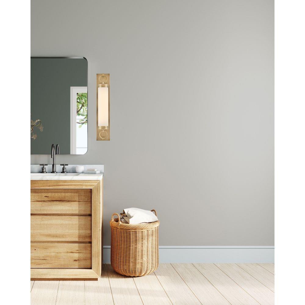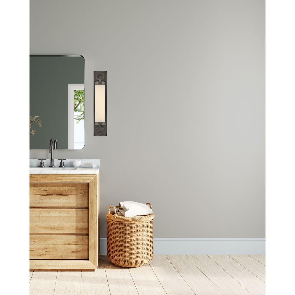 For a fixture that is an industrial piece of art, look to Baylor. The sturdy back plate and decorative rings add a nice balance to the etched opal glass to finish off the strong, substantial look. Ideal for providing plenty of functional light, Baylor mounts cleanly to the wall vertically or horizontally to bring style to primary bath, powder rooms, and more. Baylor is part of the Lisa McDennon Collection.