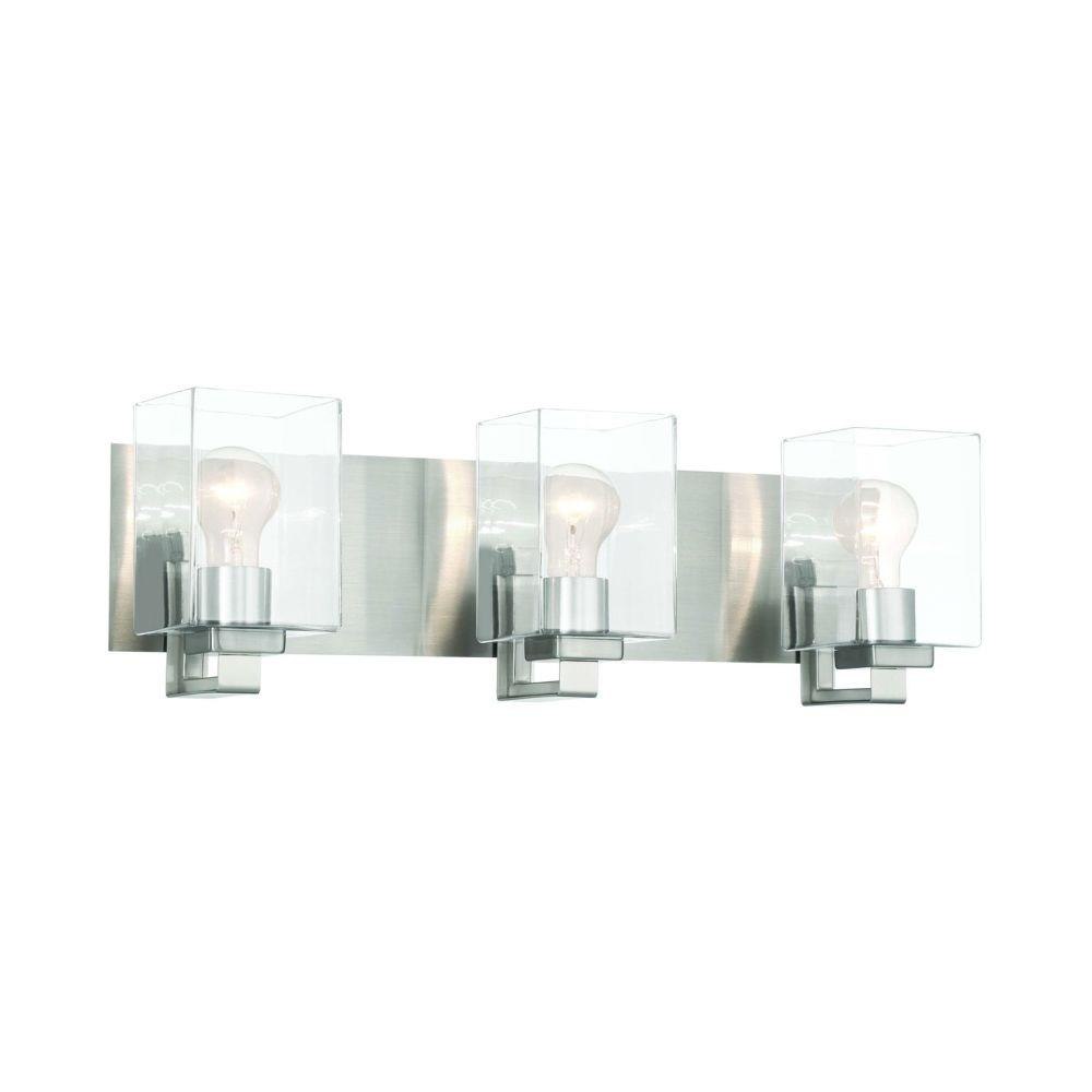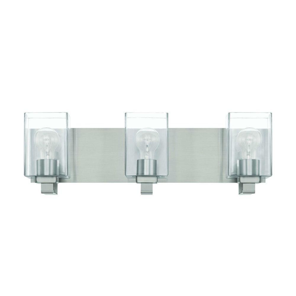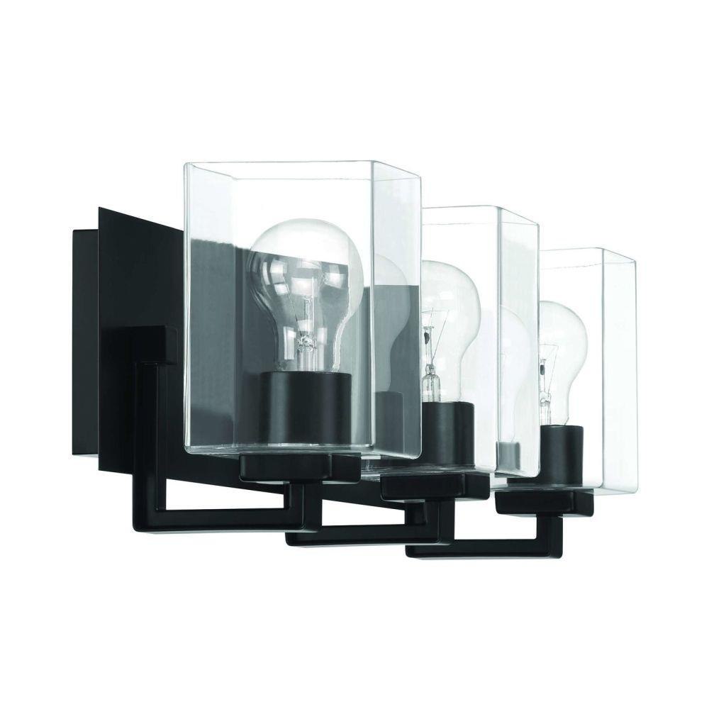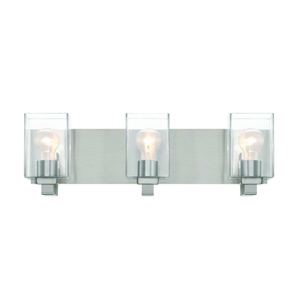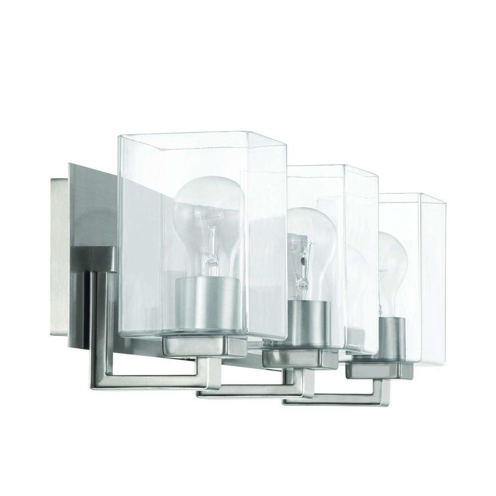 From the wide rectangular backplate to the custom square clear glass shades, the sharp design of the McClane collection was designed with your style in mind. Offered in two finishes, the McClane is available in a 1 light wall sconce up to a four light vanity. Tubular bulb(s) recommended. Bulbs not included.
