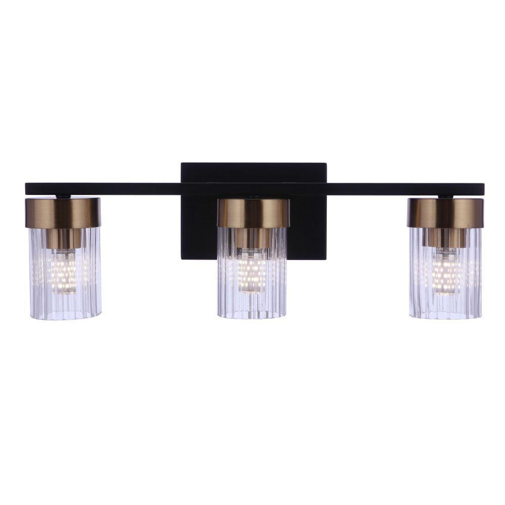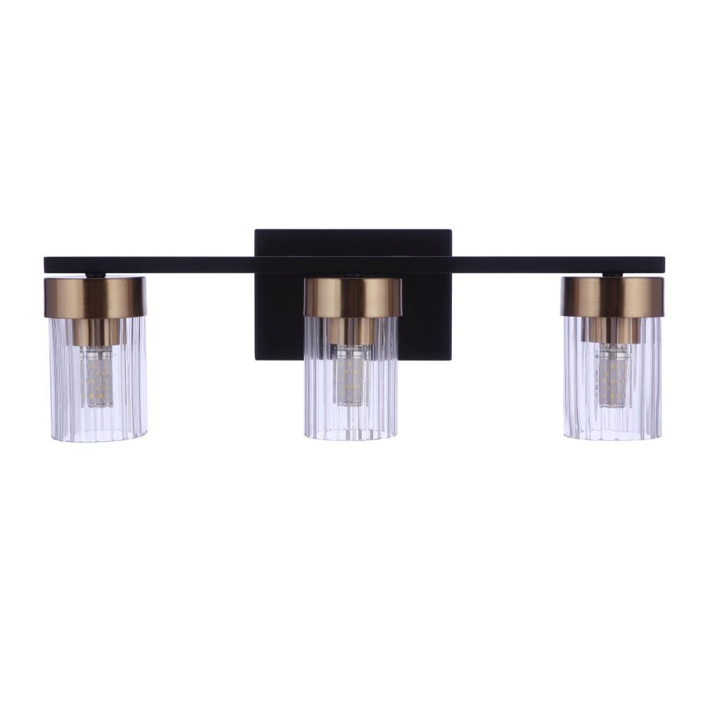 Experience the quiet luxury of the Bond Street Collection by Craftmade featuring slender clear fluted glass captured in satin brass supported by a rich flat black frame. The Bond Street vanity collection is available in five sizes from a single sconce to five light vanity.