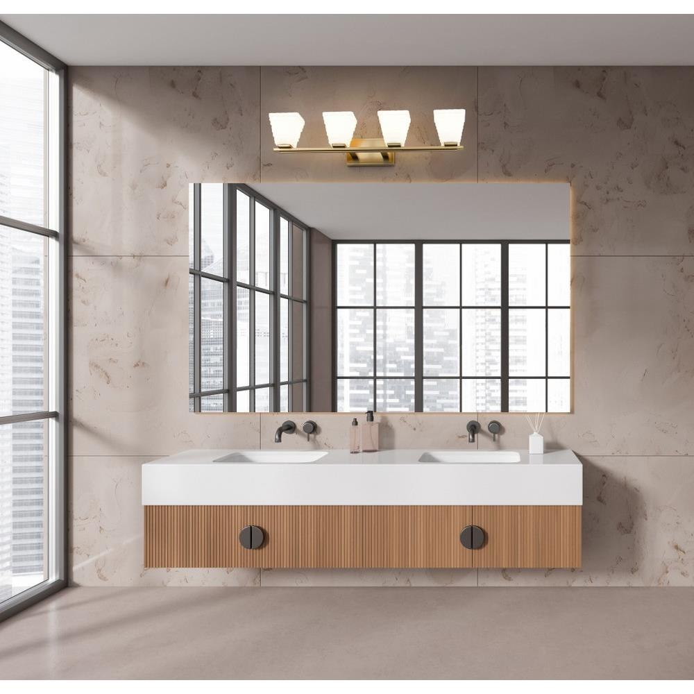 With its geometric presentation of stacked opal glass rectangles, the Annalise collection provides a powerful style statement that easily complements transitional, contemporary, and modern bath settings. The classic backplate anchors the look with a choice of timeless finishes in Brushed Nickel, Chrome, Matte Black, or Modern Gold.