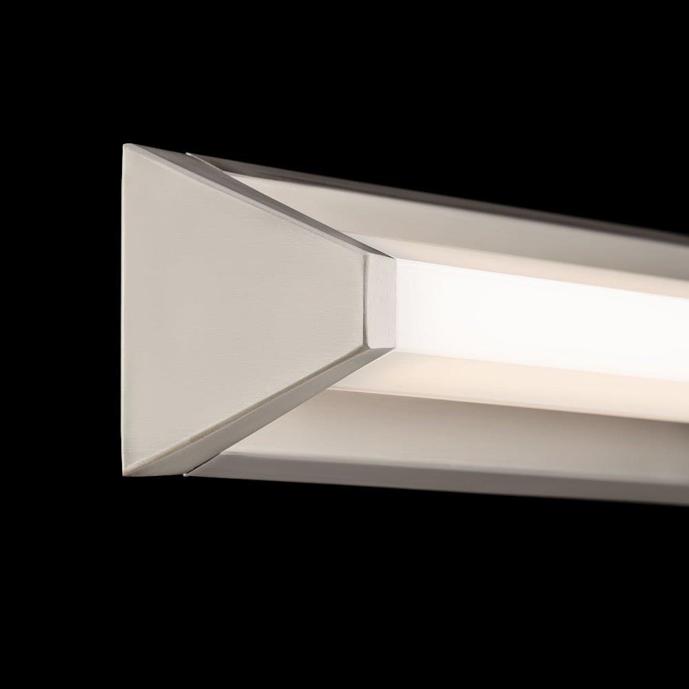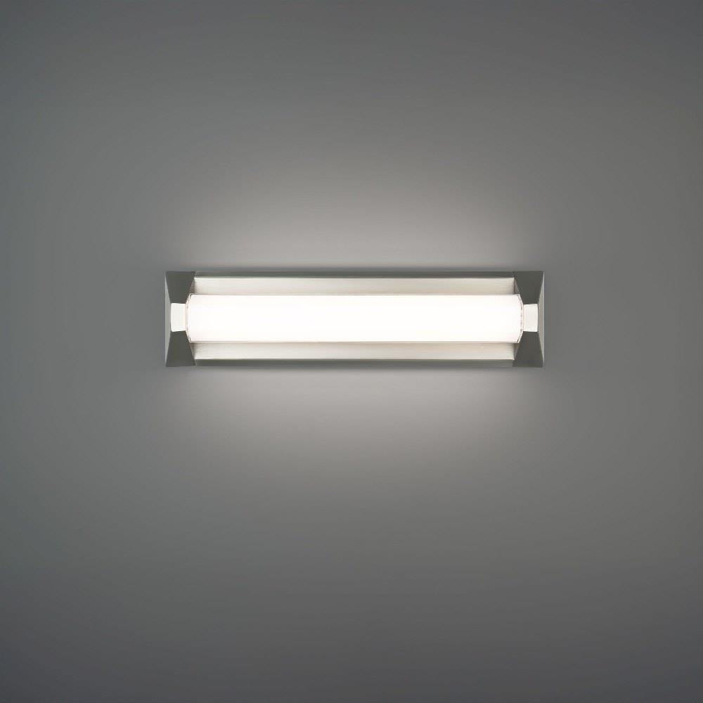 Luxe Industrial. The Swale wall sconce has a distinctive silhouette from a bold trapezoidal channel featuring modern, clean lines. An etched acrylic rod complements its sleek silhouette, diffusing color temperature selectable LED light into a radiant, even glow. Swale is offered in 20 and 27-inch sizes and a choice of aged brass or brushed nickel finishes. Mount the light horizontally or vertically as desired.