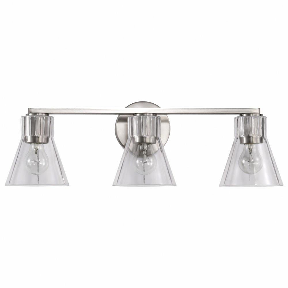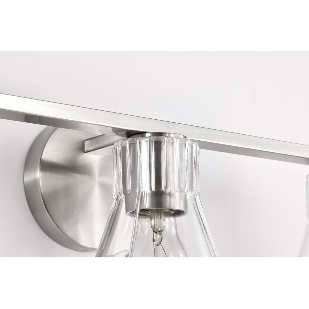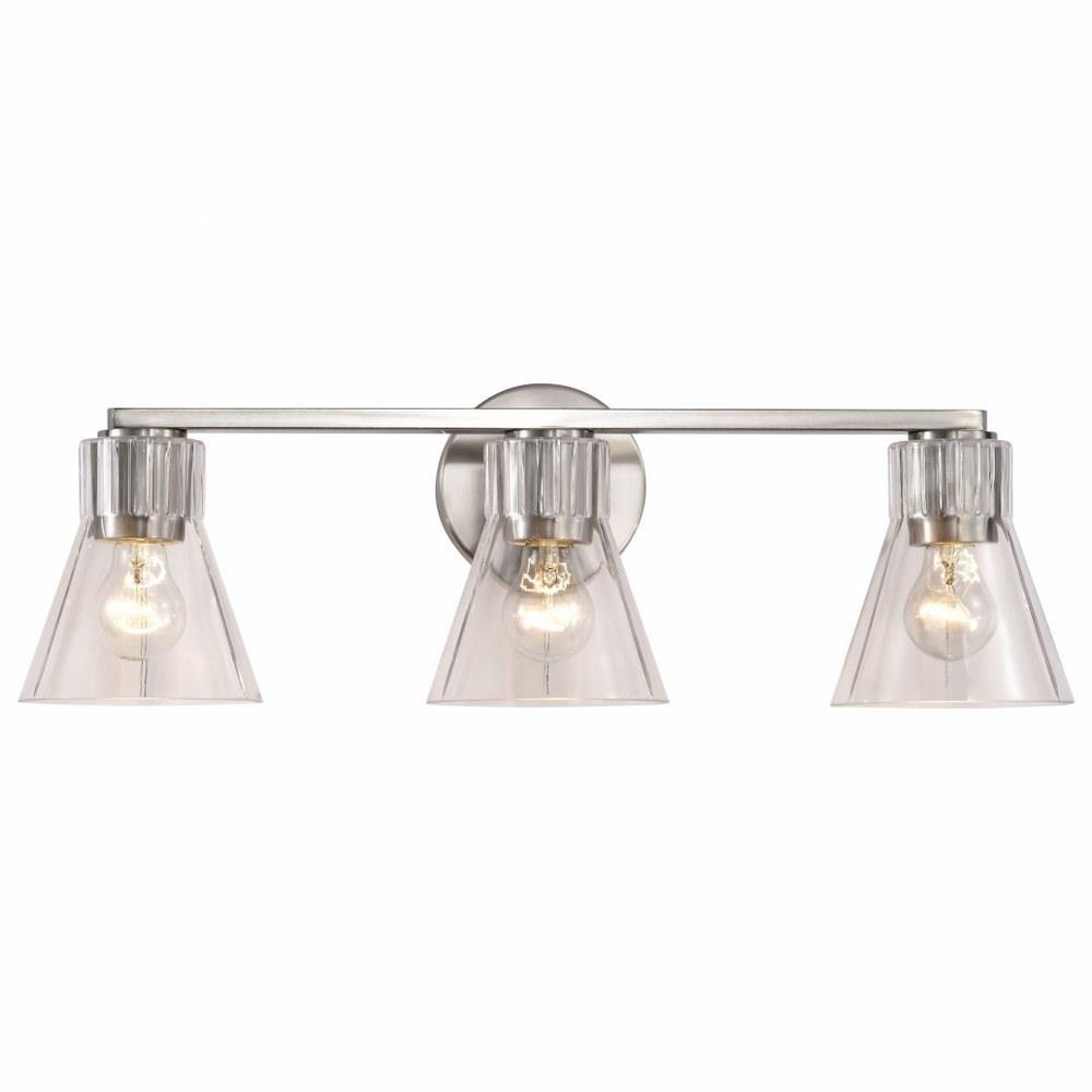 Step back in style and revel in the charm of retro sophistication with the Gianna 60-8333 three light vanity fixture, a tribute to the bold aesthetics of the seventies. Effortlessly blending style with vintage allure, it redefines transitional design. Featuring clear glass shades adorned with intricate ribbed collars, Gianna is finished in brushed nickel, the perfect touch of metal and glass. Ideal for those who love a modern twist on retro design, Gianna brings an unforgettable blend of nostalgia and contemporary flair to any space.