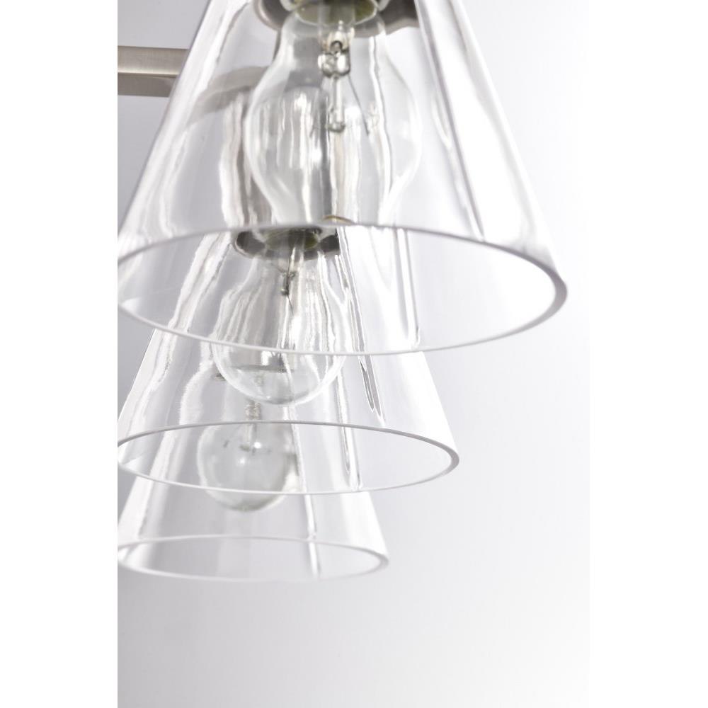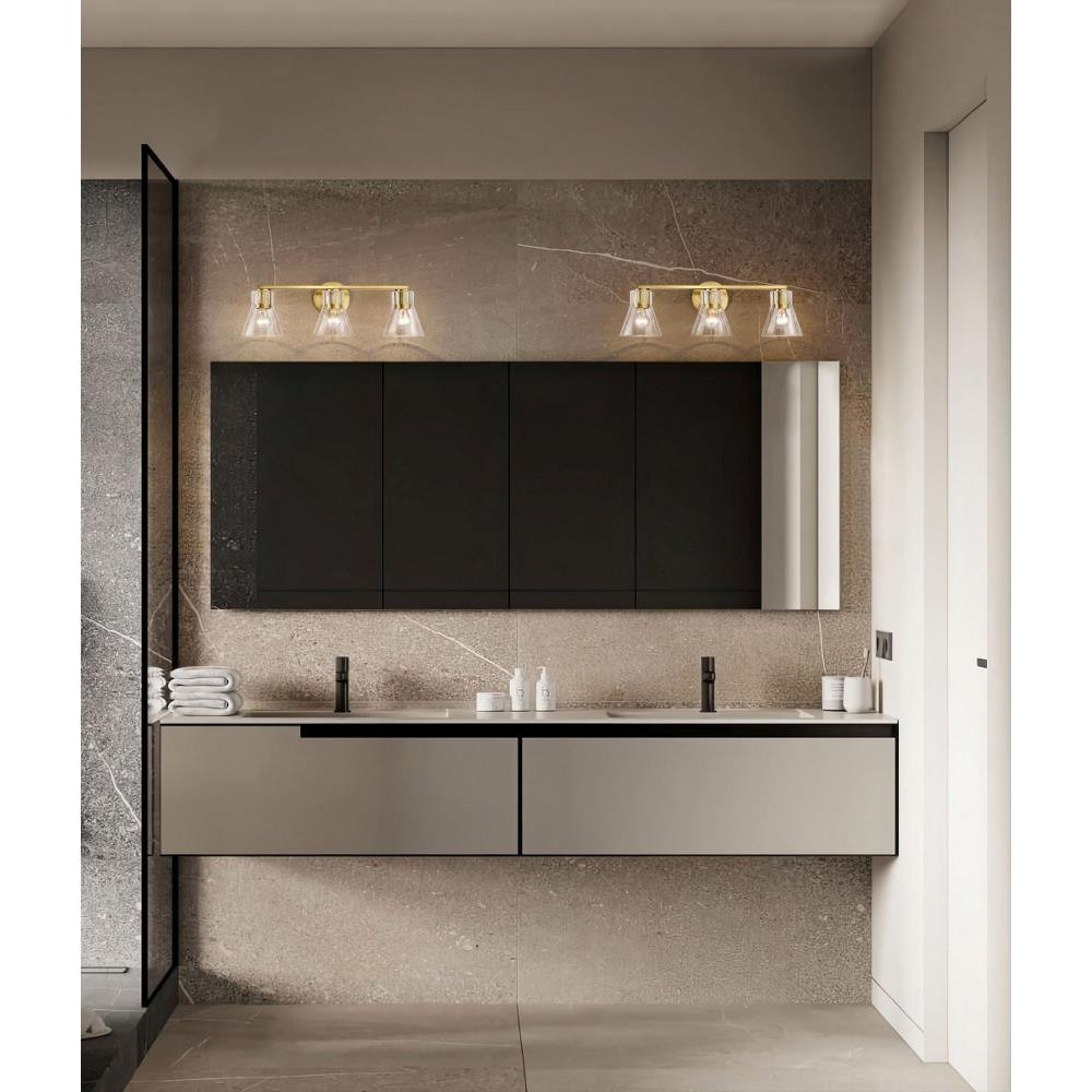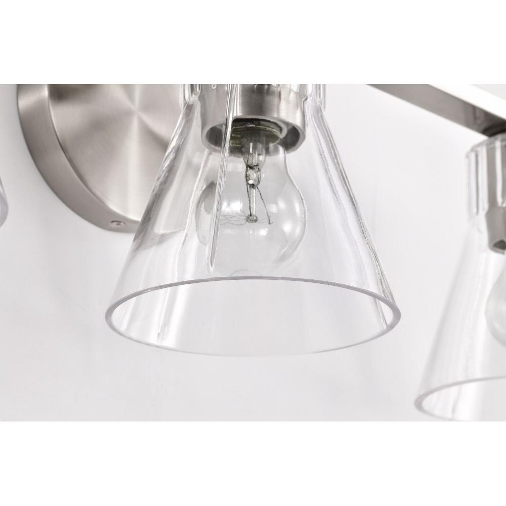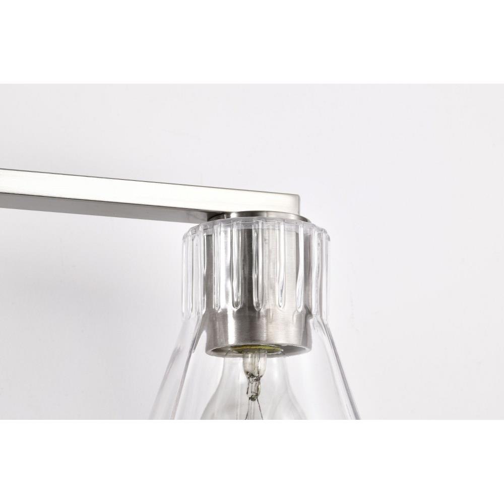 Step back in style and revel in the charm of retro sophistication with the Gianna 60-8333 three light vanity fixture, a tribute to the bold aesthetics of the seventies. Effortlessly blending style with vintage allure, it redefines transitional design. Featuring clear glass shades adorned with intricate ribbed collars, Gianna is finished in brushed nickel, the perfect touch of metal and glass. Ideal for those who love a modern twist on retro design, Gianna brings an unforgettable blend of nostalgia and contemporary flair to any space.