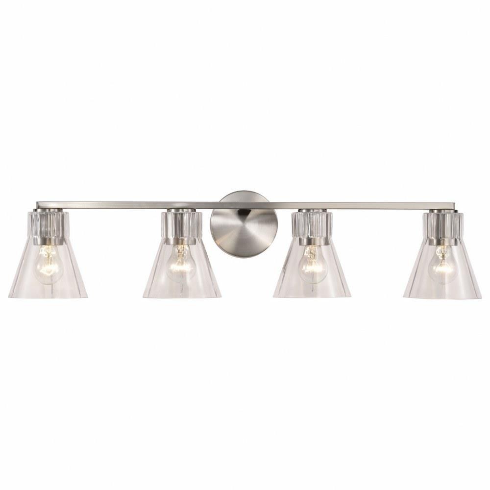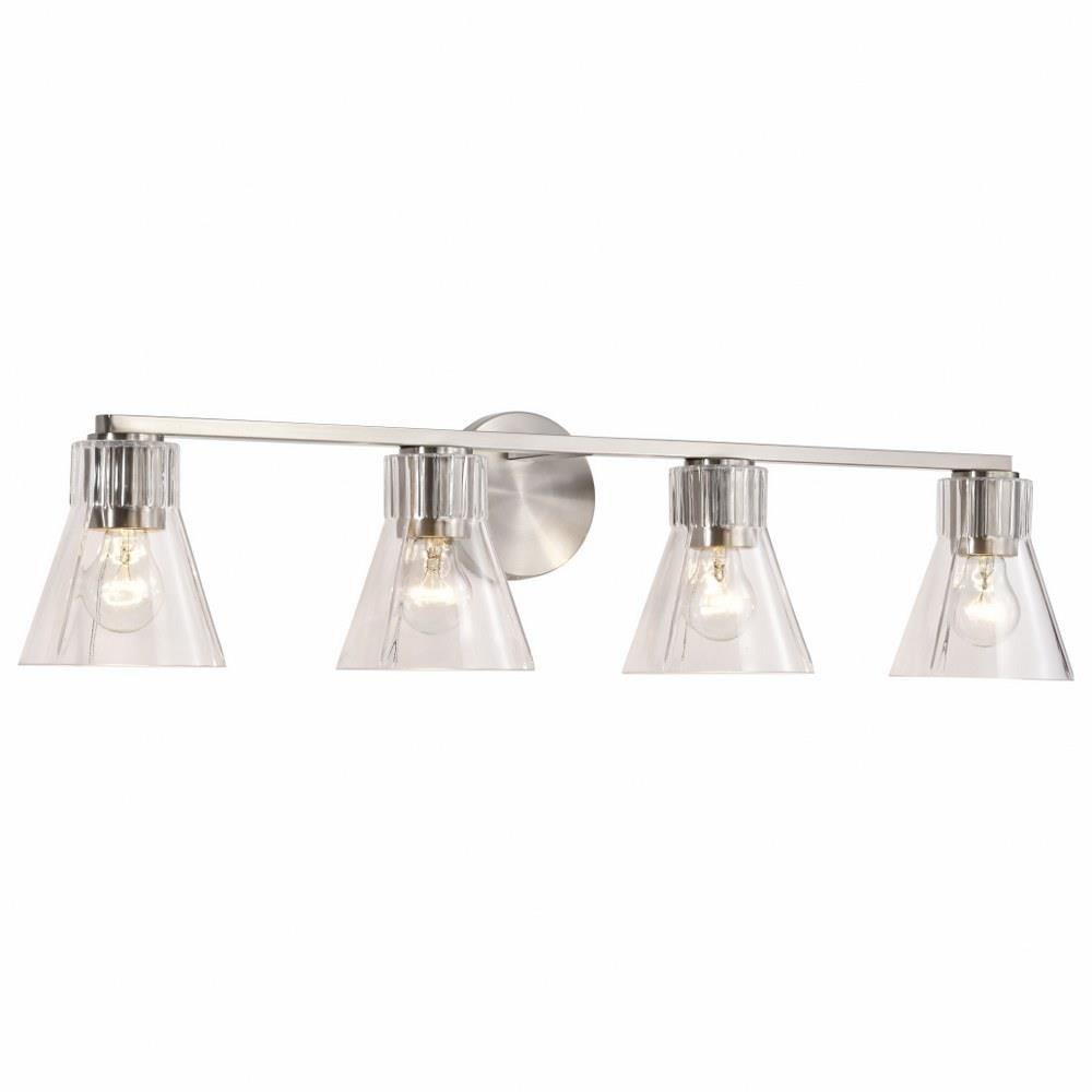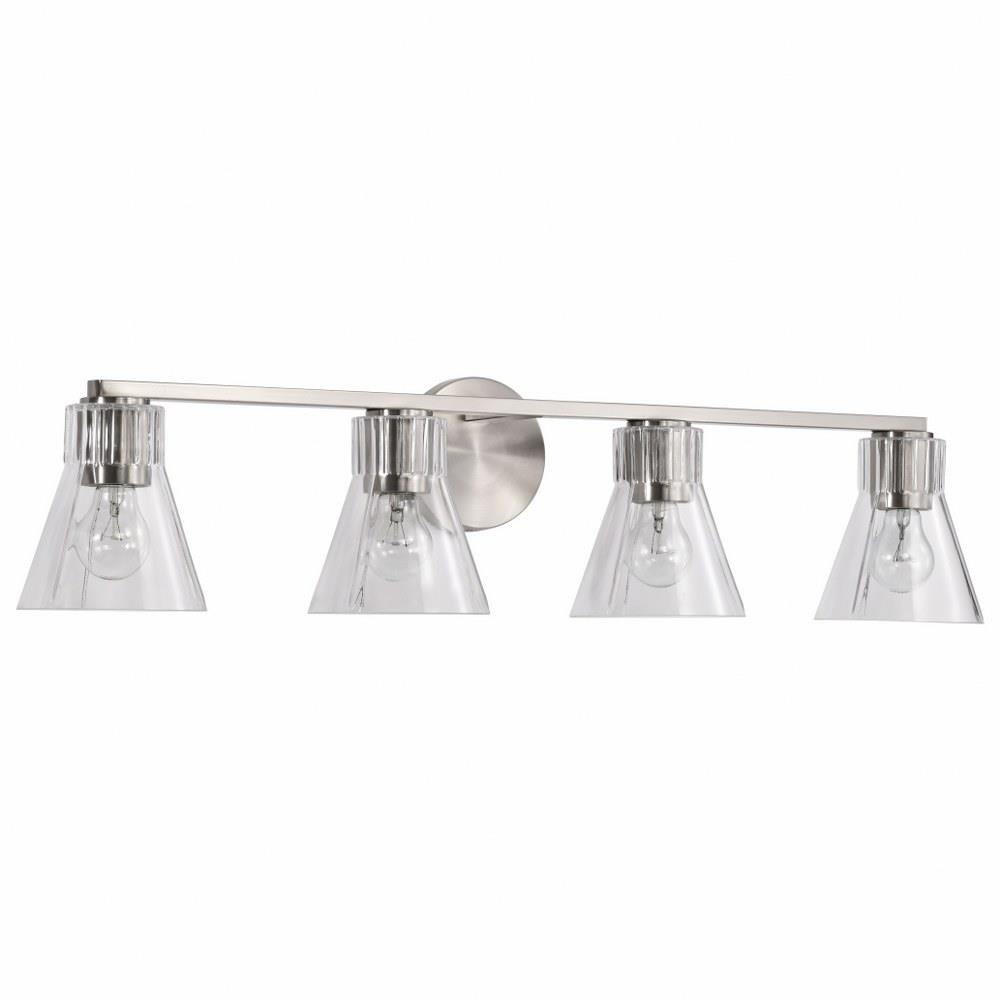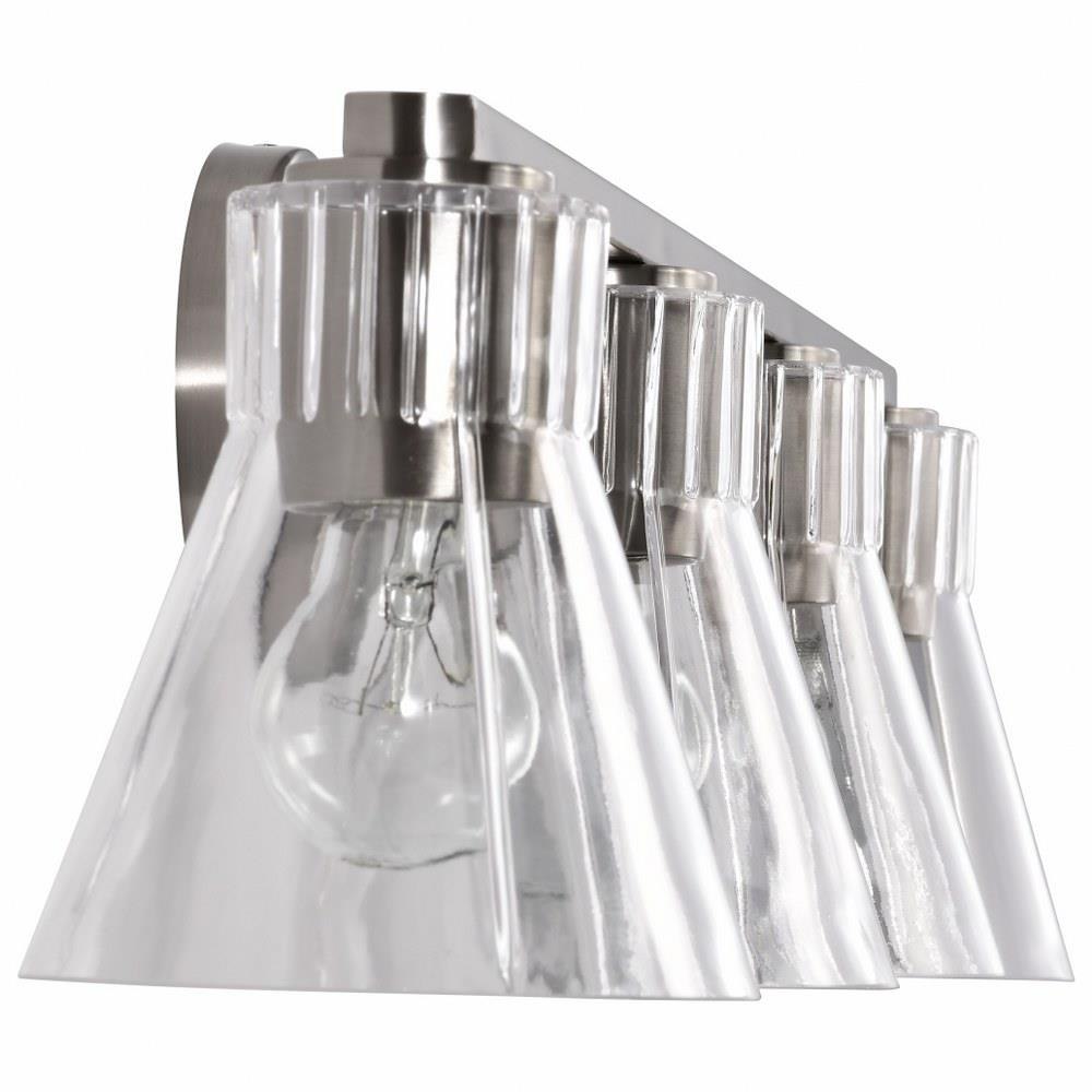 Step back in style and revel in the charm of retro sophistication with the Gianna 60-8334 four light vanity fixture, a tribute to the bold aesthetics of the seventies. Effortlessly blending style with vintage allure, it redefines transitional design. Featuring clear glass shades adorned with intricate ribbed collars, Gianna is finished in brushed nickel, the perfect touch of metal and glass. Ideal for those who love a modern twist on retro design, Gianna brings an unforgettable blend of nostalgia and contemporary flair to any space.
