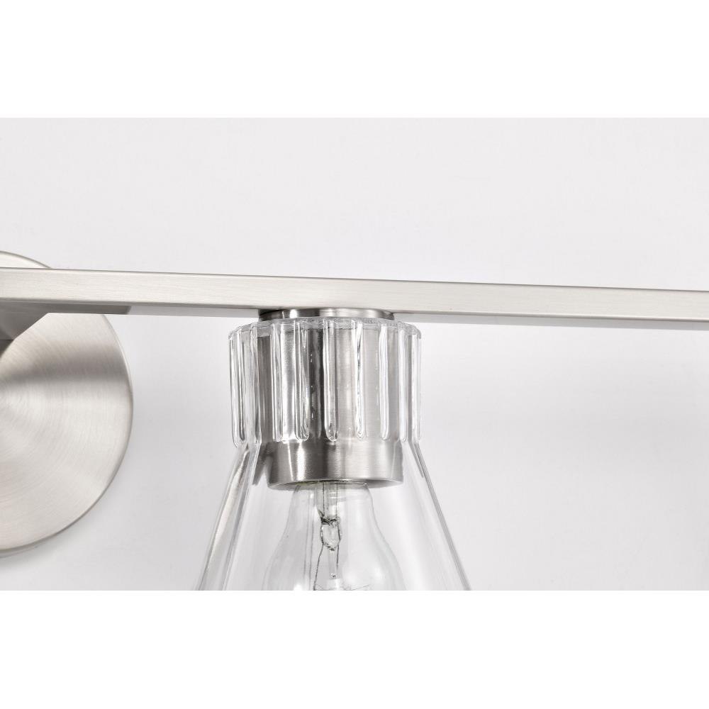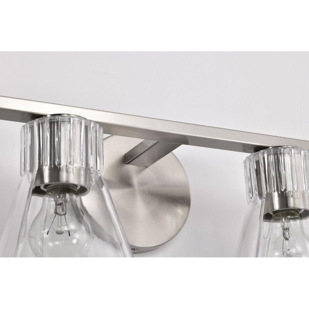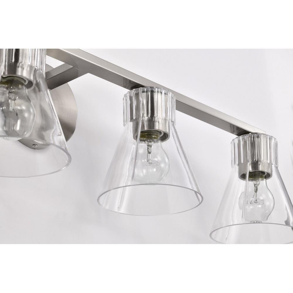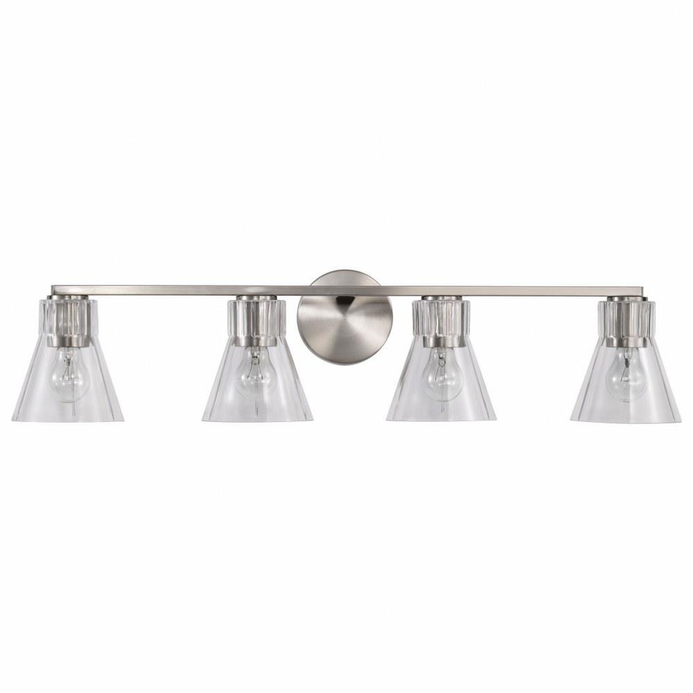 Step back in style and revel in the charm of retro sophistication with the Gianna 60-8334 four light vanity fixture, a tribute to the bold aesthetics of the seventies. Effortlessly blending style with vintage allure, it redefines transitional design. Featuring clear glass shades adorned with intricate ribbed collars, Gianna is finished in brushed nickel, the perfect touch of metal and glass. Ideal for those who love a modern twist on retro design, Gianna brings an unforgettable blend of nostalgia and contemporary flair to any space.