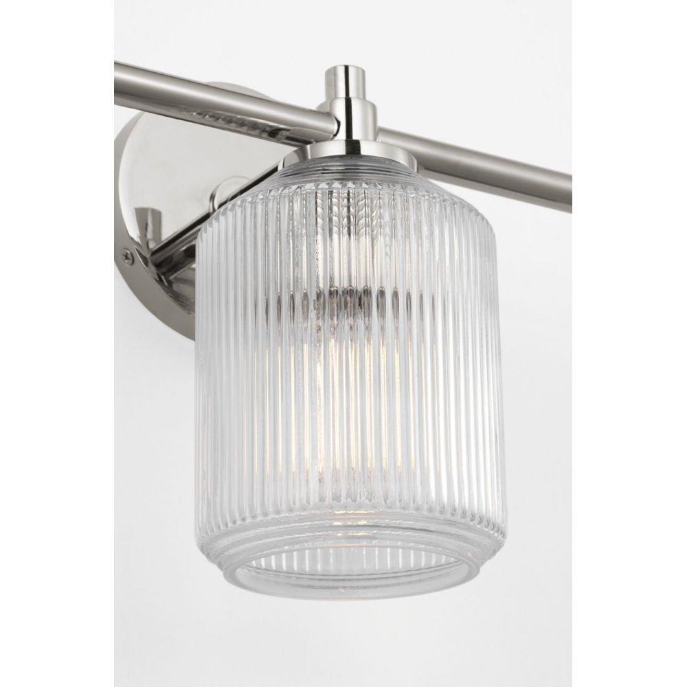 The Barstow 26" Vanity by Chapman & Myers brings the full expression of the collection’s prismatic inspiration to larger bath environments. Its ribbed clear glass shade—cut vertically around the body and horizontally at the top and base—delivers a refined, finished appearance that feels both classic and contemporary. Framed by a minimal metal structure, the 26" fixture is ideal for double-sink vanities or expansive layouts, where its sculptural glass and clean lines create a focal point of quiet elegance and enduring style.