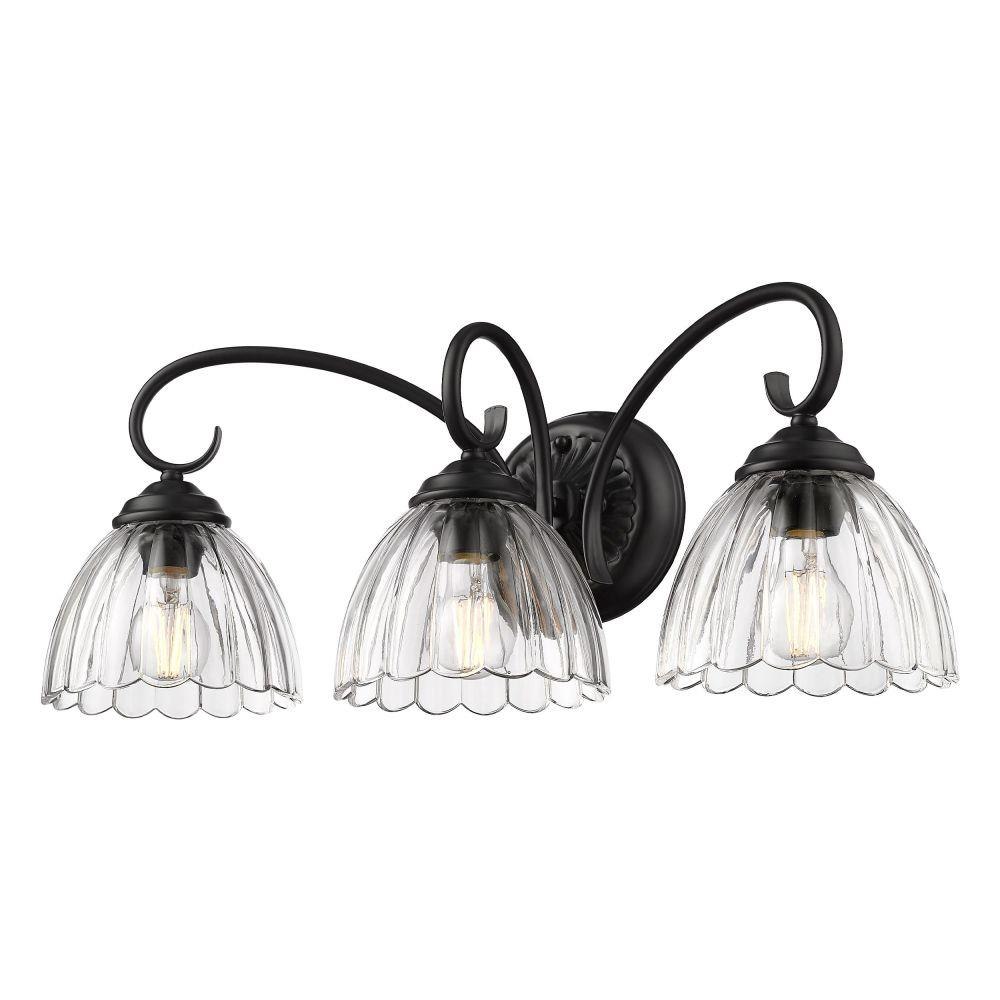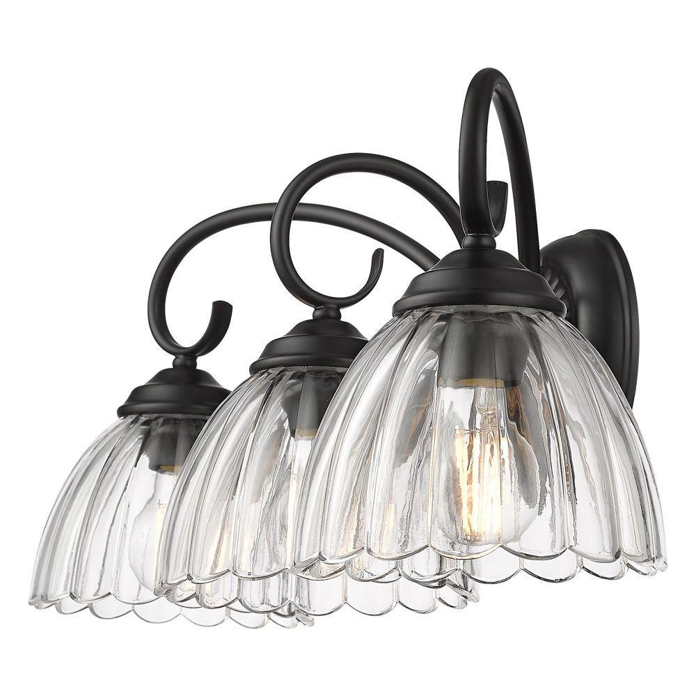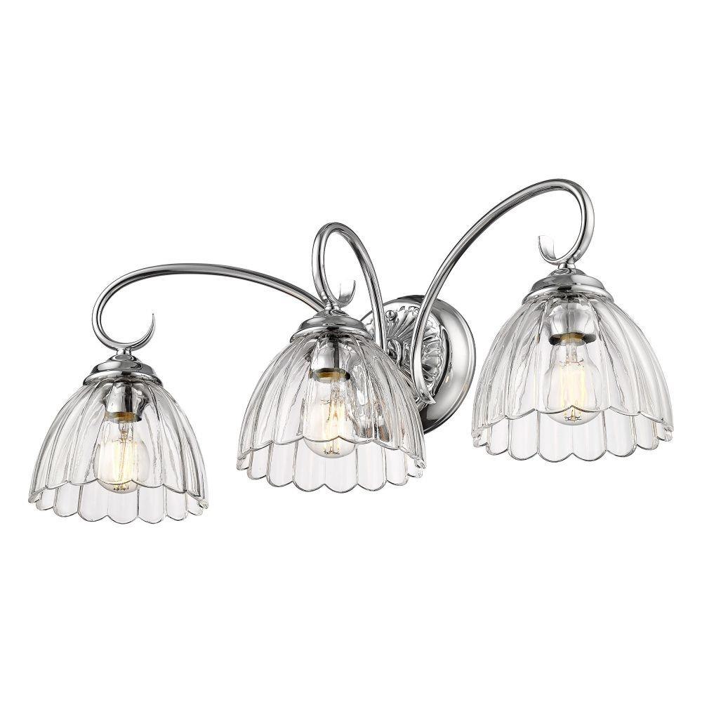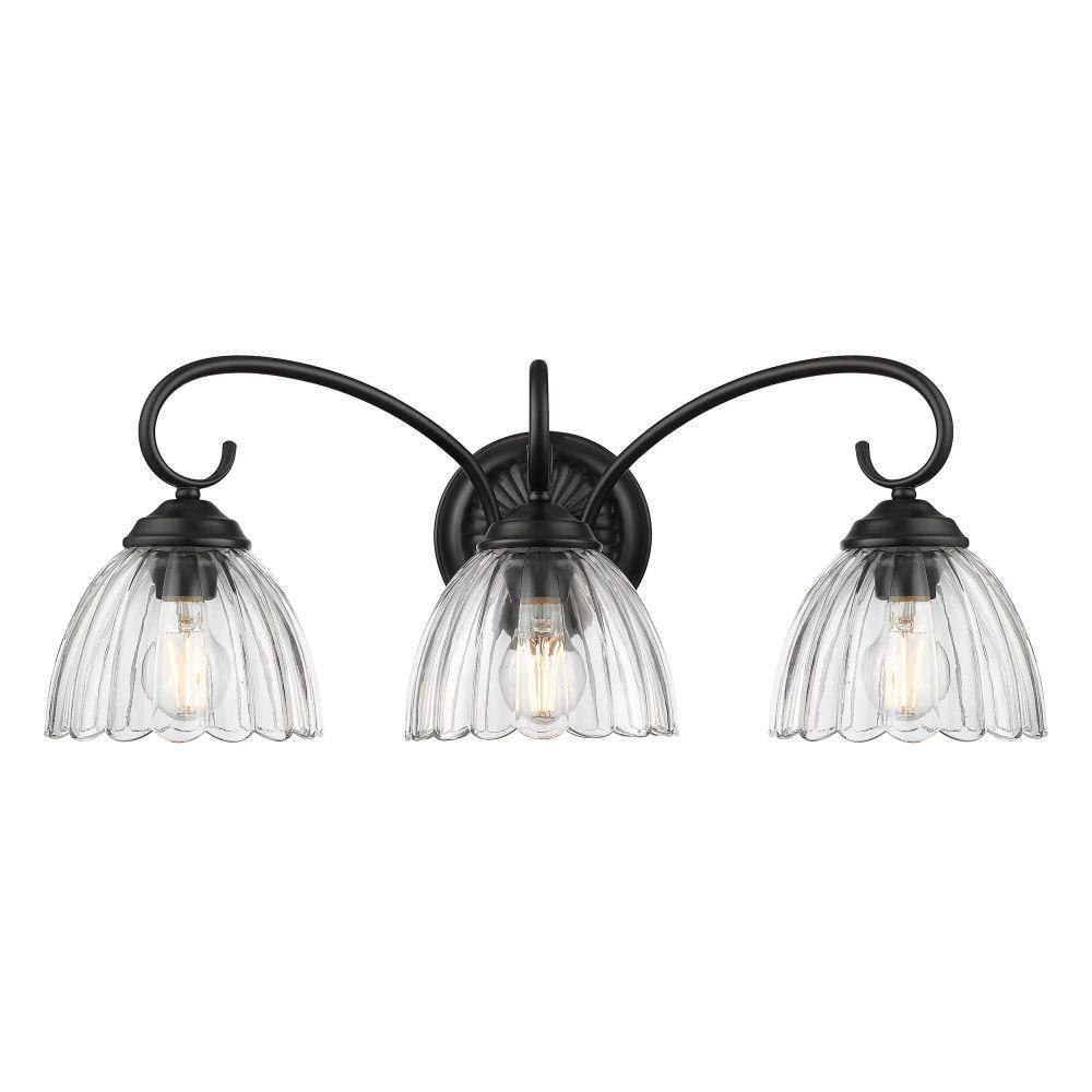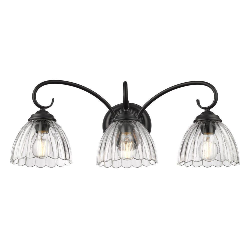 Bring glamorous elegance into your home with the Golden Lighting Audra 3-light Vanity. Featuring a glass shade and a Brushed Champagne Brass frame, it creates a welcoming atmosphere. The clear glass shade provides unobstructed light that beautifully enhances the sophisticated look. The Brushed Champagne Brass finish combines warmth and softness for a chic appearance, perfect for modern interiors. This fixture is damp location rated, suitable for bathrooms and semi-enclosed spaces. Requires 3 E26 Medium base bulbs (not included), with a maximum wattage of 60 per bulb. Overall dimensions are 25.5"W x 9.63"H x 9.5"D. Elevate your bathroom with this luxurious fixture that merges functionality with stunning beauty.