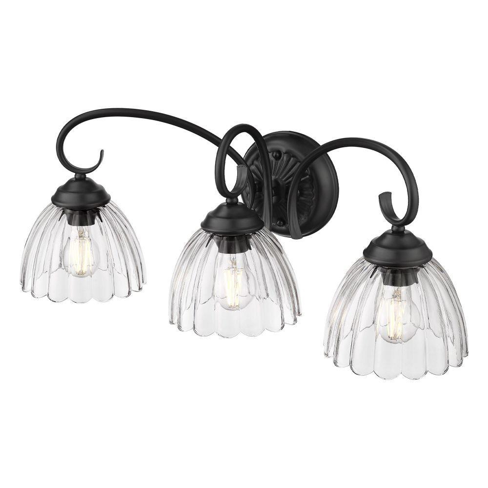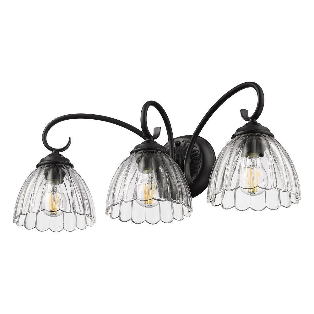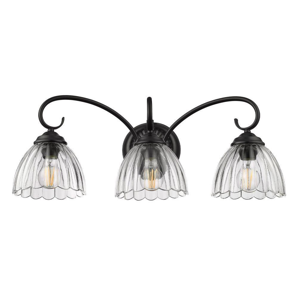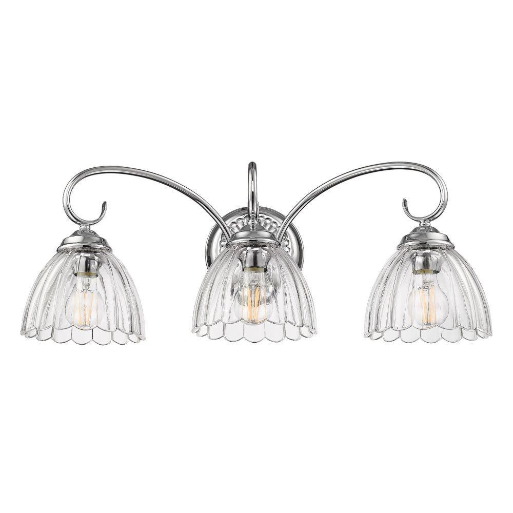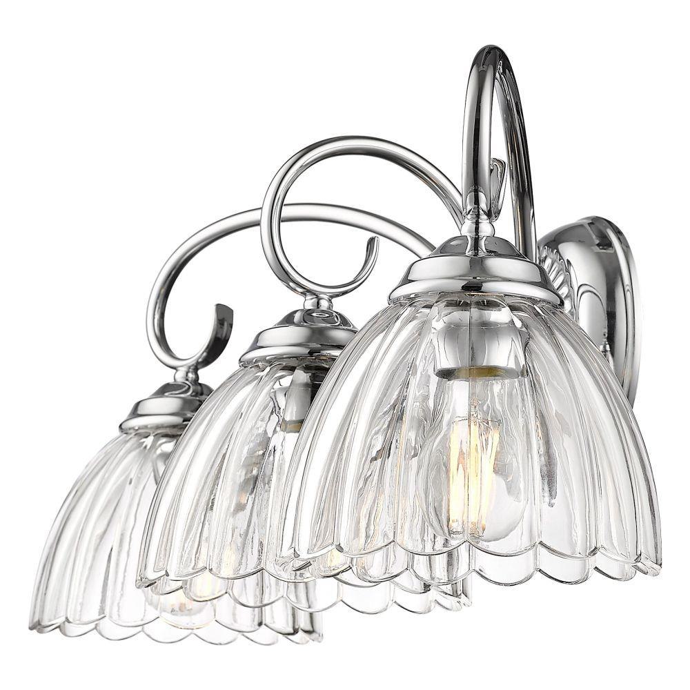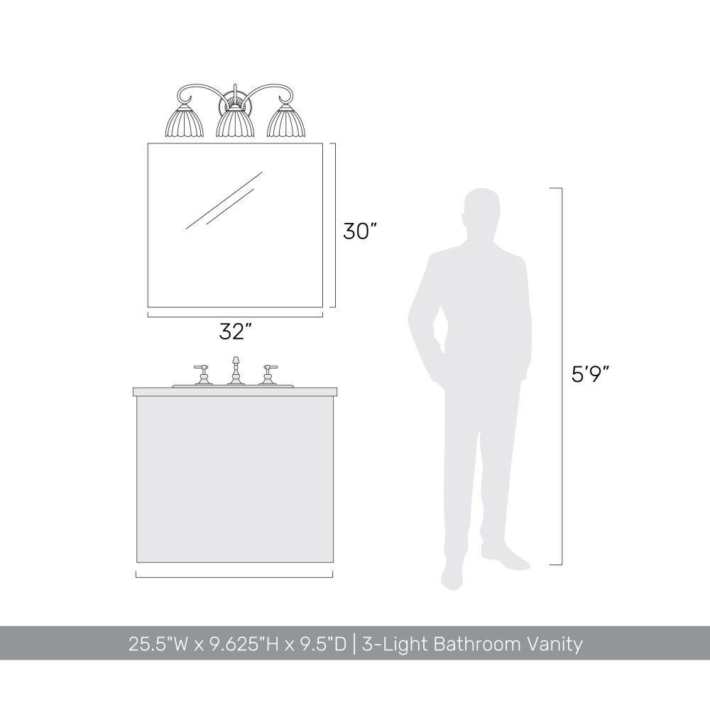 Bring glamorous elegance into your home with the Golden Lighting Audra 3-light Vanity. Featuring a glass shade and a Brushed Champagne Brass frame, it creates a welcoming atmosphere. The clear glass shade provides unobstructed light that beautifully enhances the sophisticated look. The Brushed Champagne Brass finish combines warmth and softness for a chic appearance, perfect for modern interiors. This fixture is damp location rated, suitable for bathrooms and semi-enclosed spaces. Requires 3 E26 Medium base bulbs (not included), with a maximum wattage of 60 per bulb. Overall dimensions are 25.5"W x 9.63"H x 9.5"D. Elevate your bathroom with this luxurious fixture that merges functionality with stunning beauty.
