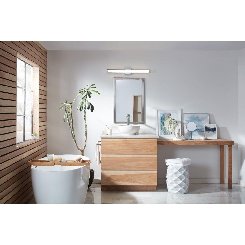 Suitable for use in damp locations as defined by NEC and CEC. Meets United States UL Underwriters Laboratories & CSA Canadian Standards Association Product Safety Standards / LED components carry a 5-year limited warranty / Meets California Energy Commission 2013 & 2016 Title regulations/JA8 / Fixture can be mounted horizontally or vertically / Striking black finish enhances design / Fixture is ADA compliant and adheres to the standards and guidelines listed by the Americans with Disabilities Act / Exclusively available in High Performance LED / Mounting hardware is hidden on the backplate to ensure a clean silhouette / Bold lines and a clean, minimalist style creates a modern look