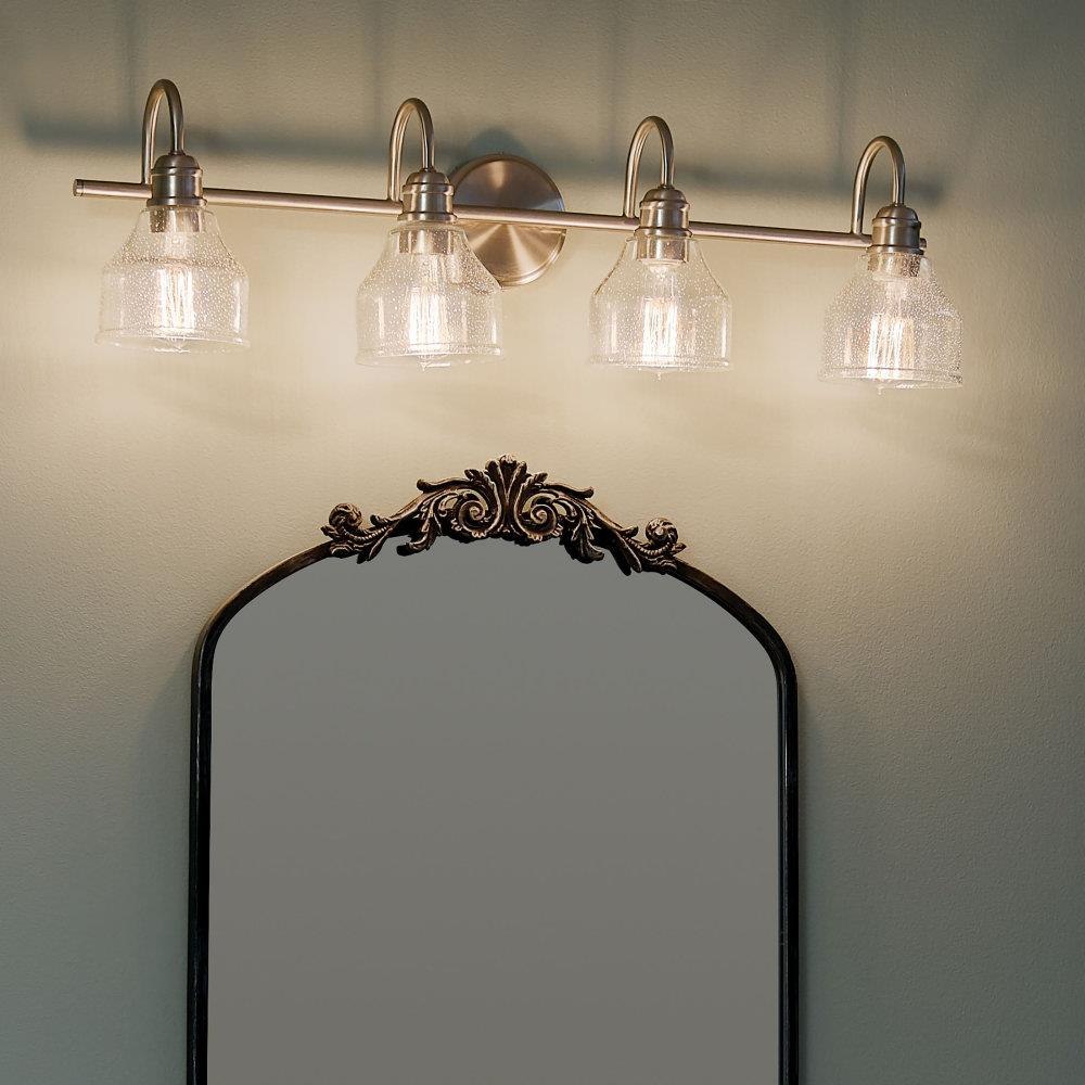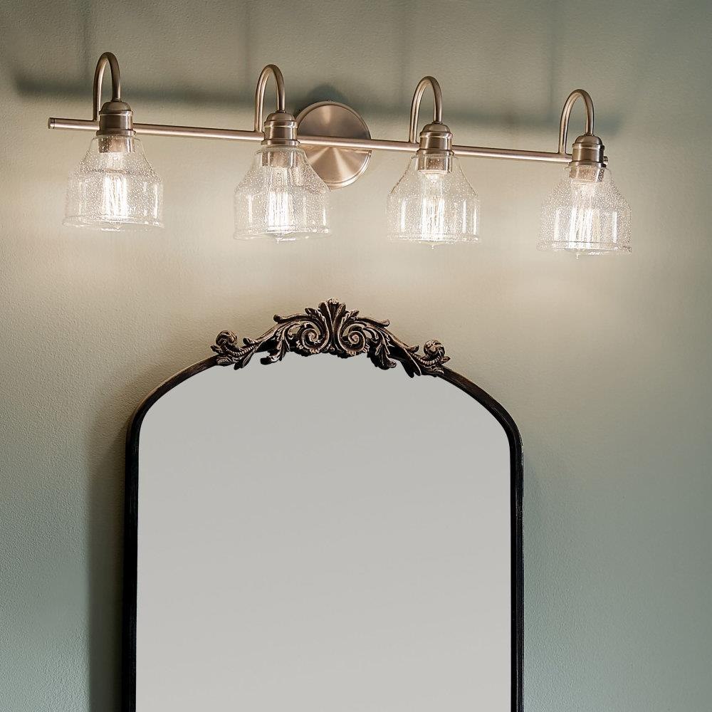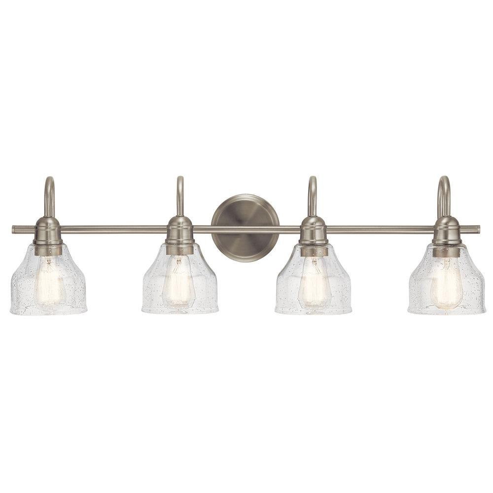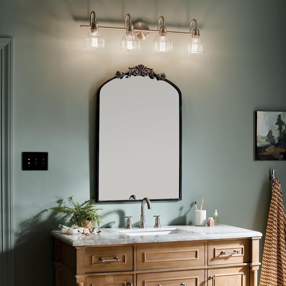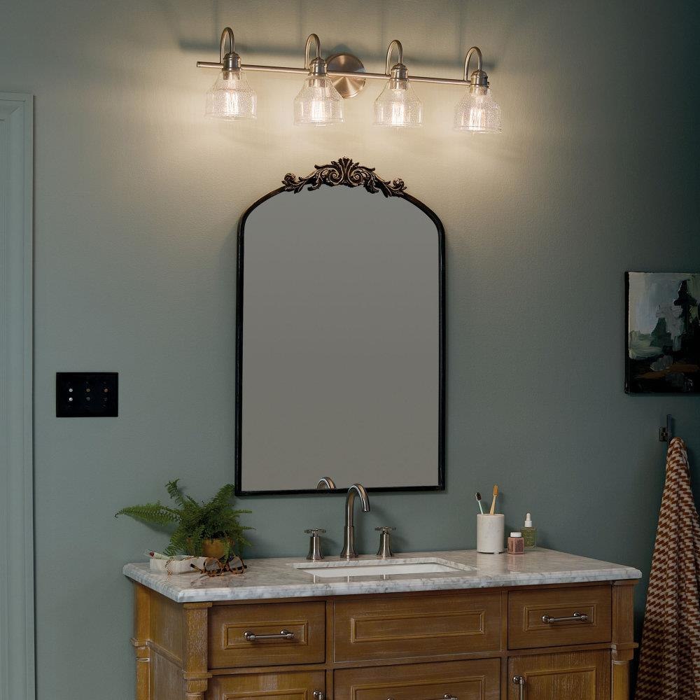 Create a masterpiece with this 4 light bath light from the Avery collection with Clear Seeded glass.