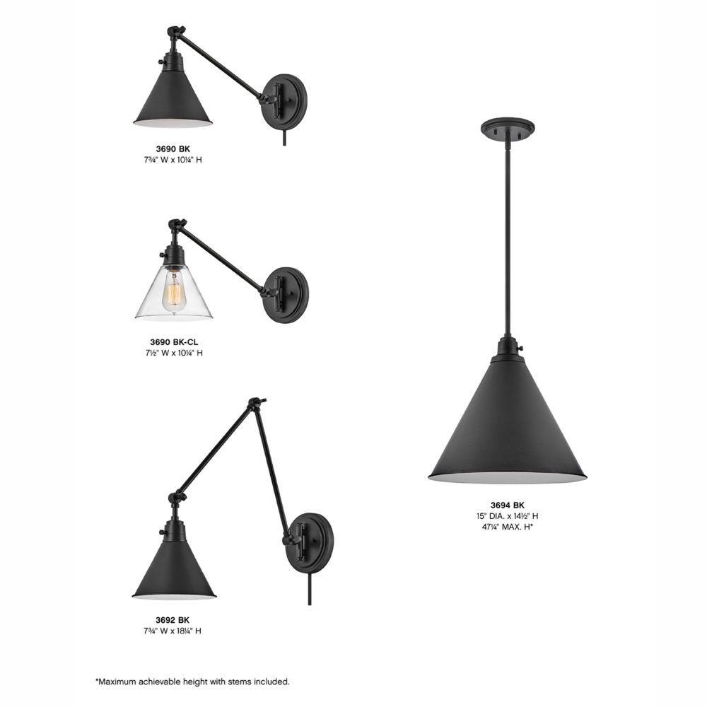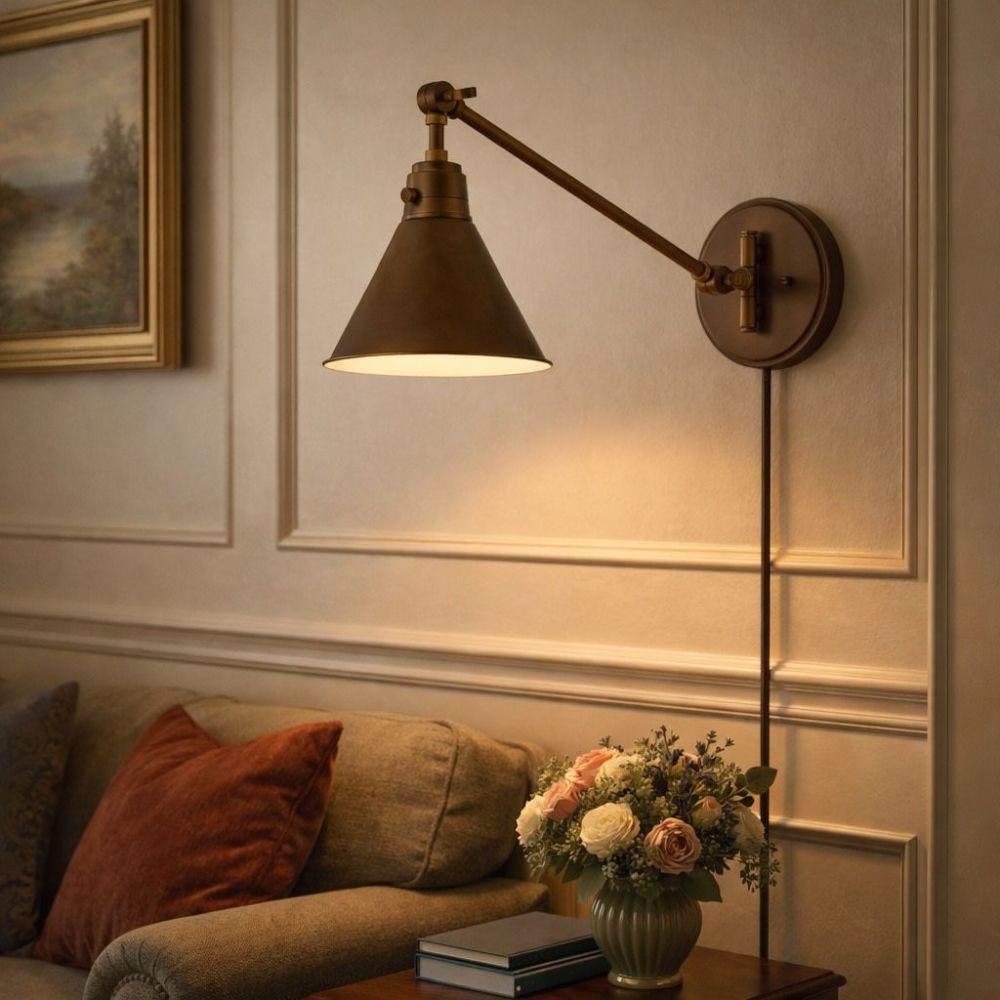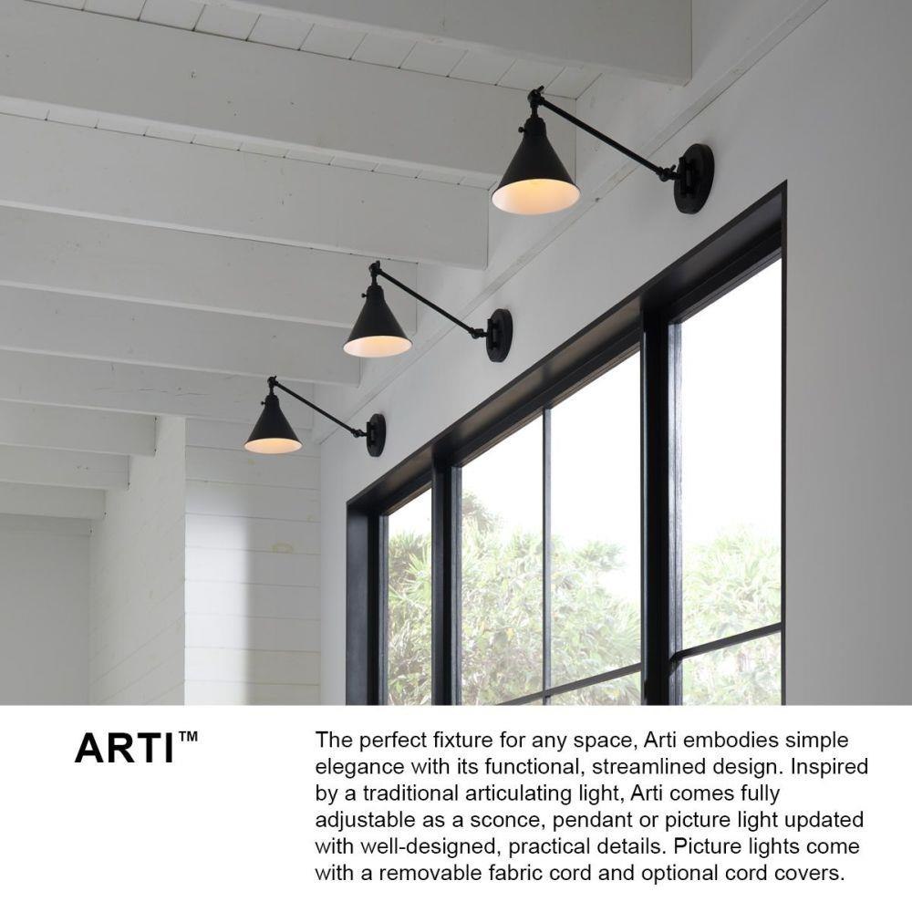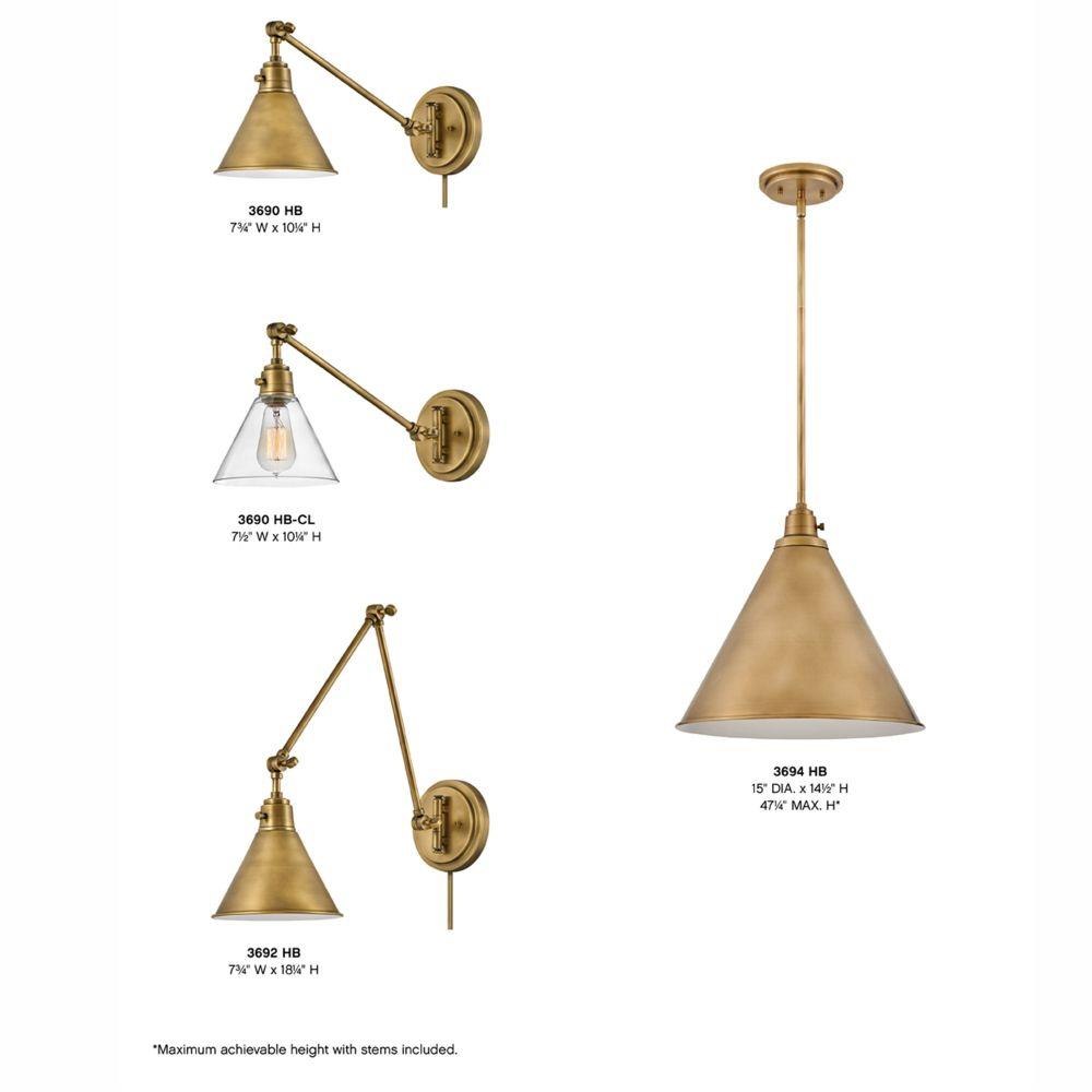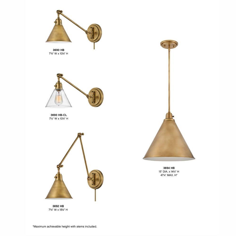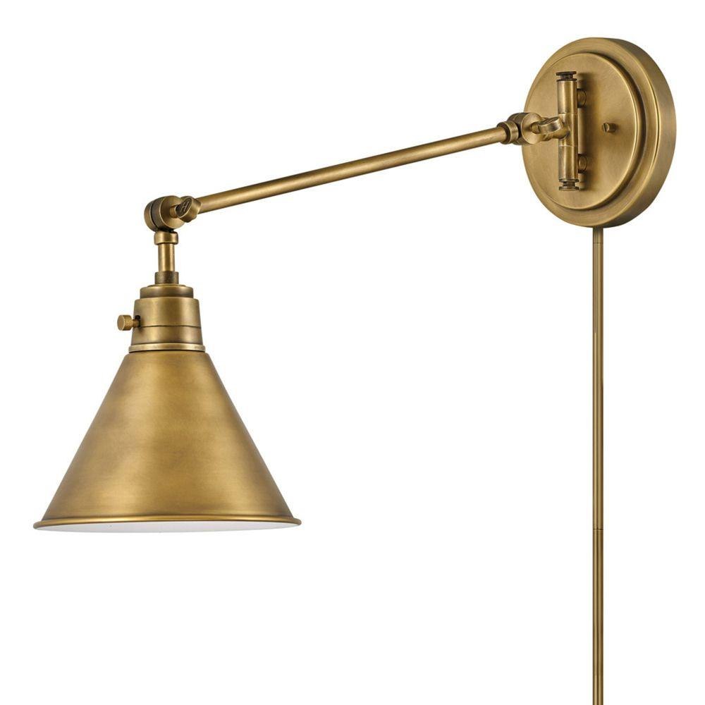The perfect fixture for any space, Arti embodies simple elegance with its functional, streamlined design. Offering a robust lineup of fixture silhouettes, every aspect of the Arti family is adorned with practical features for a seamless integration into any room.Suitable for use in dry (indoor) locations as defined by NEC and CEC. Meets United States UL Underwriters Laboratories & CSA Canadian Standards Association Product Safety Standards / 20.5" extension when fixture is fully extended / Classic gleaming light brass finish / Merging the best of traditional and modern elements, with a sophisticated and streamlined silhouette perfect for any space / Fully adjustable both left or right and up or down. / All dimensions listed are as shown. / Features On/Off switch / Optional cord cover available, 6938HB / Can be hard wired or mounted with fabric covered plug-in cord.