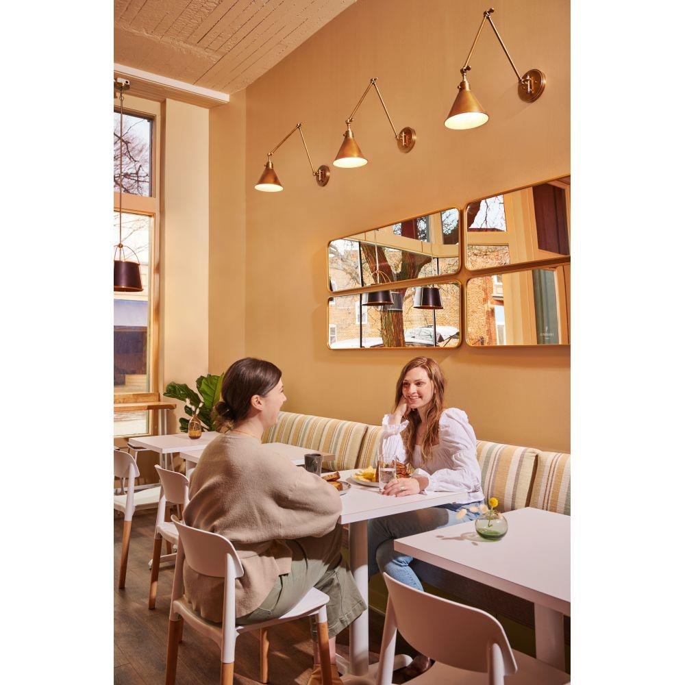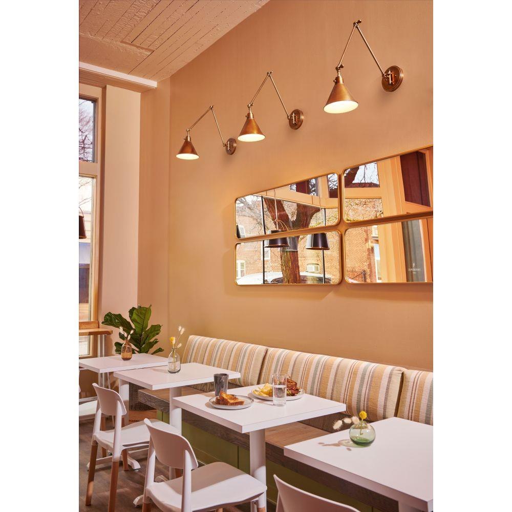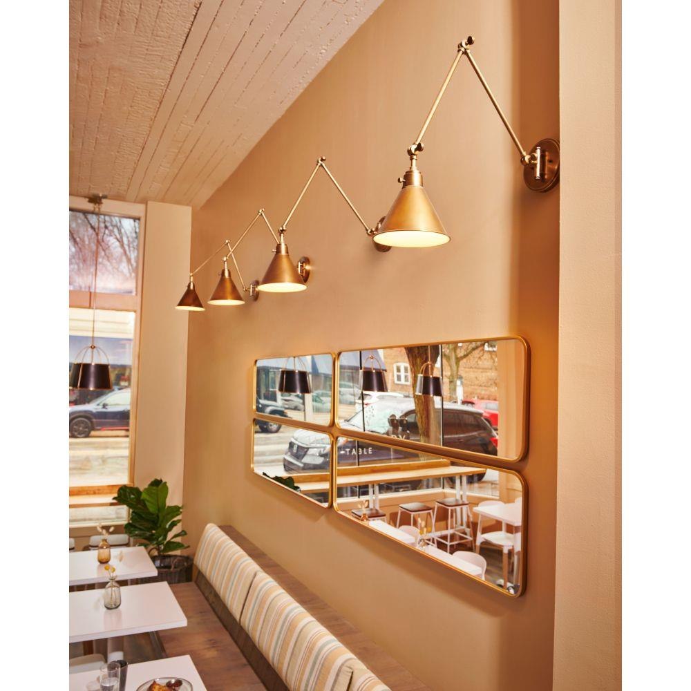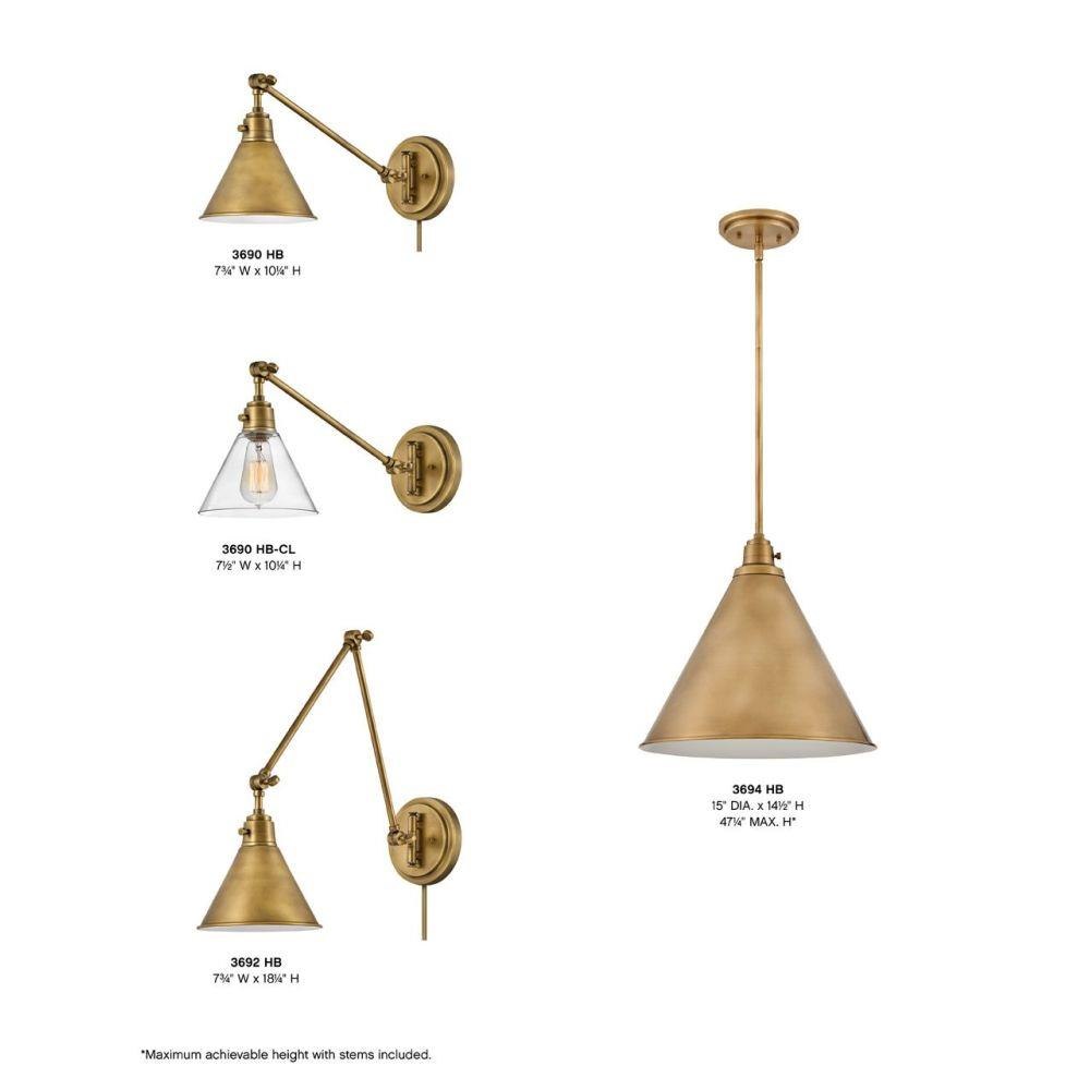 Suitable for use in dry (indoor) locations as defined by NEC and CEC. Meets United States UL Underwriters Laboratories & CSA Canadian Standards Association Product Safety Standards / Classic gleaming light brass finish / Merging the best of traditional and modern elements, with a sophisticated and streamlined silhouette perfect for any space / Fully adjustable both left or right and up or down. / All dimensions listed are as shown. / Features On/Off switch / 34" extension when fixture is fully extended / Optional cord cover available, 6938HB / Can be hard wired or mounted with fabric covered plug-in cord.